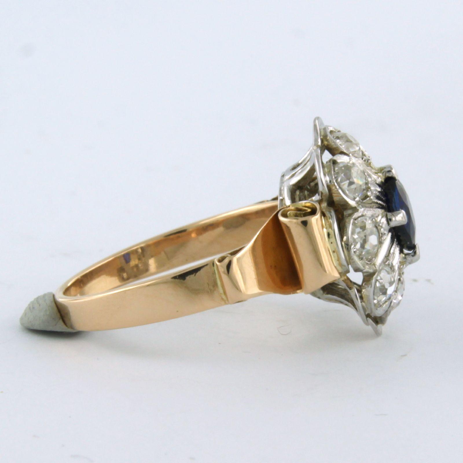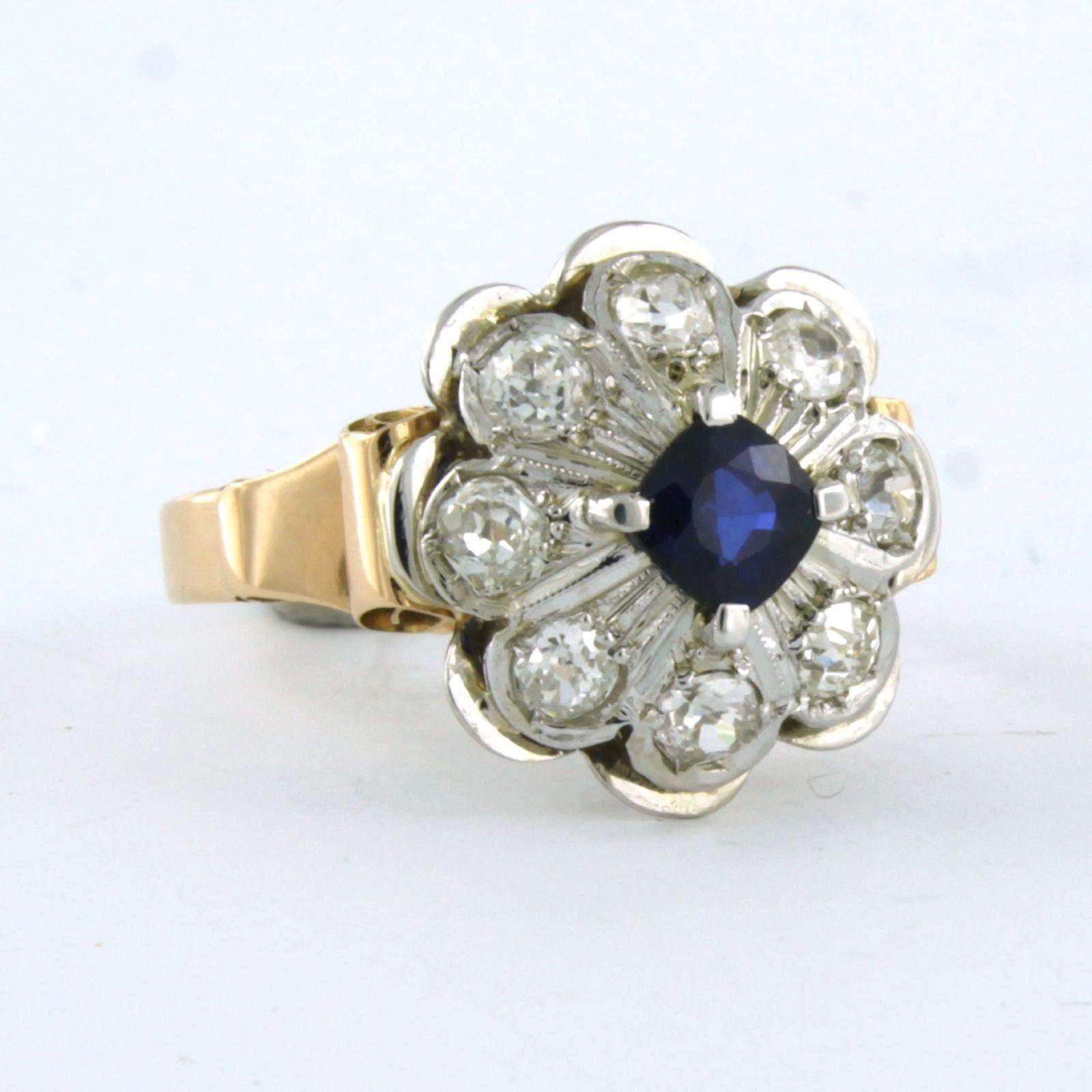 18 Kt. bicolour gouden ring bezet met saffier 0.75ct en Bolsjewiek geslepen diamant 1,45ct - ringmaat 18,5 (58)