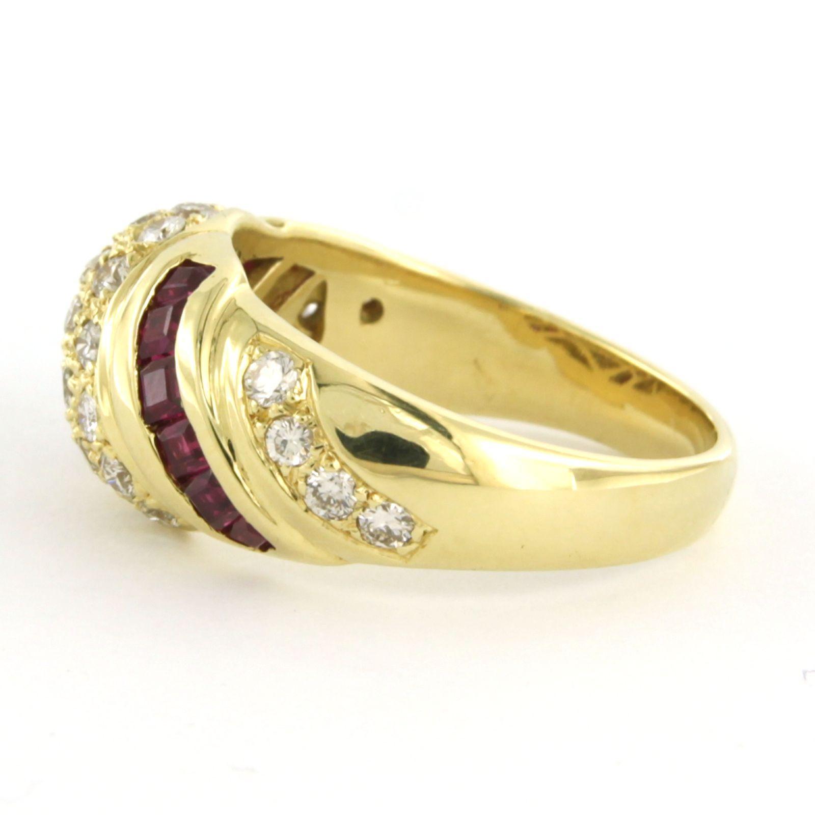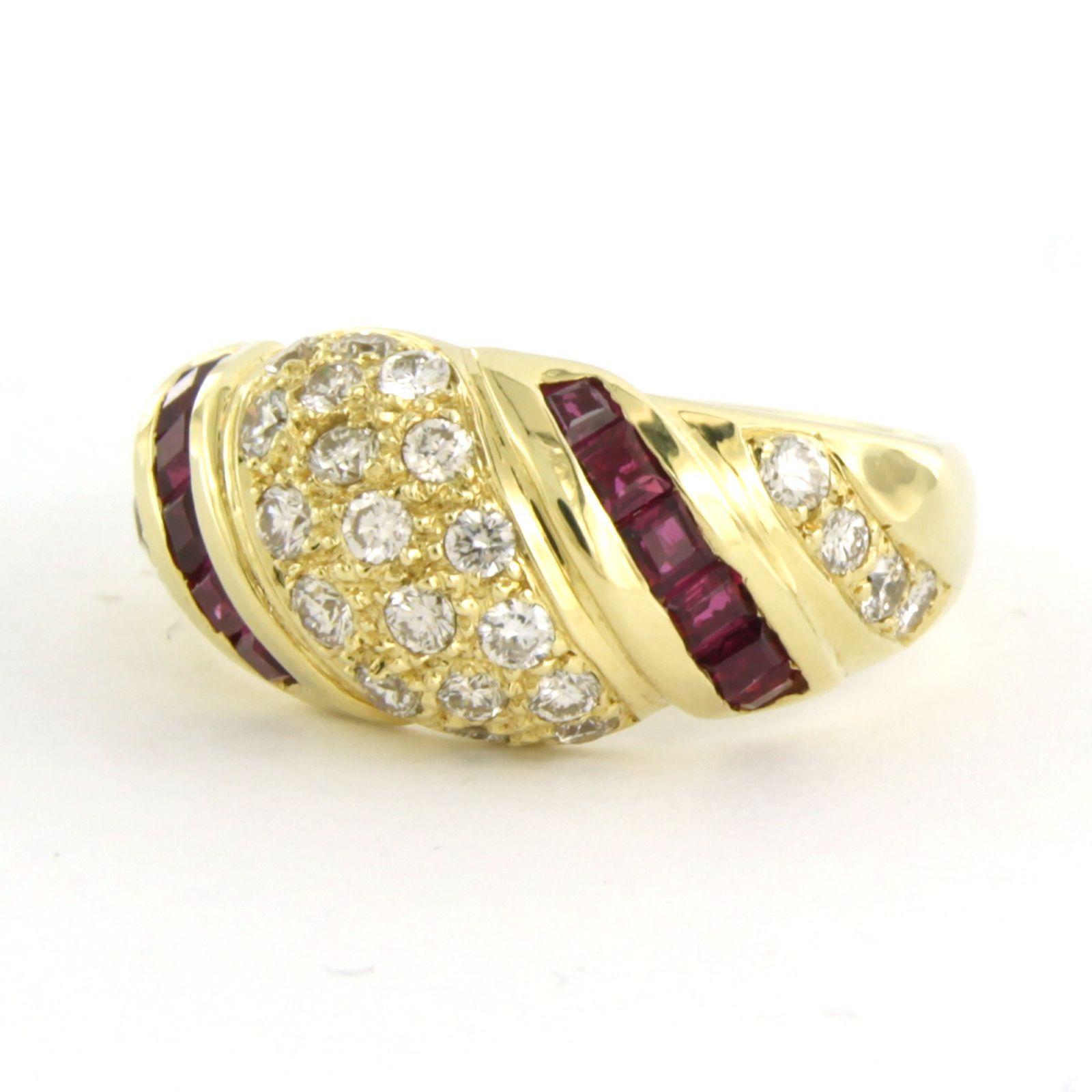 18 Kt. geelgouden ring bezet met robijn en briljant geslepen diamant tot. 0.80ct