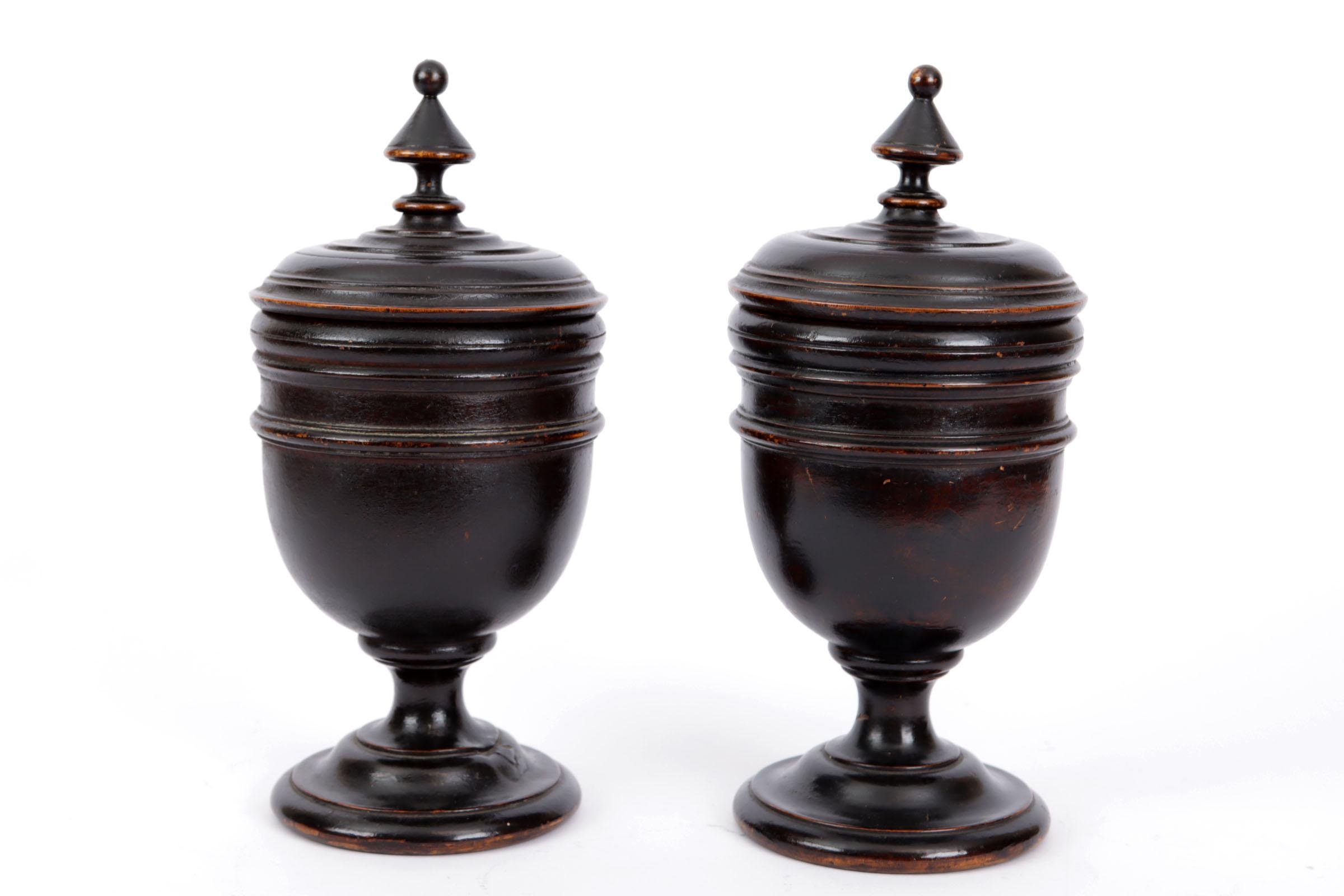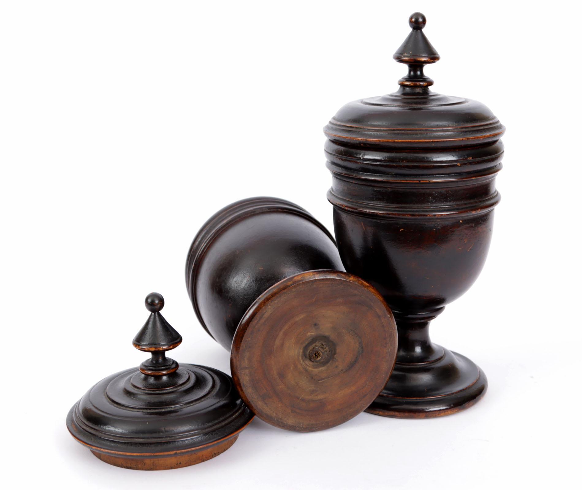 Stel antieke houten dekselcoupes, h.28 cm.