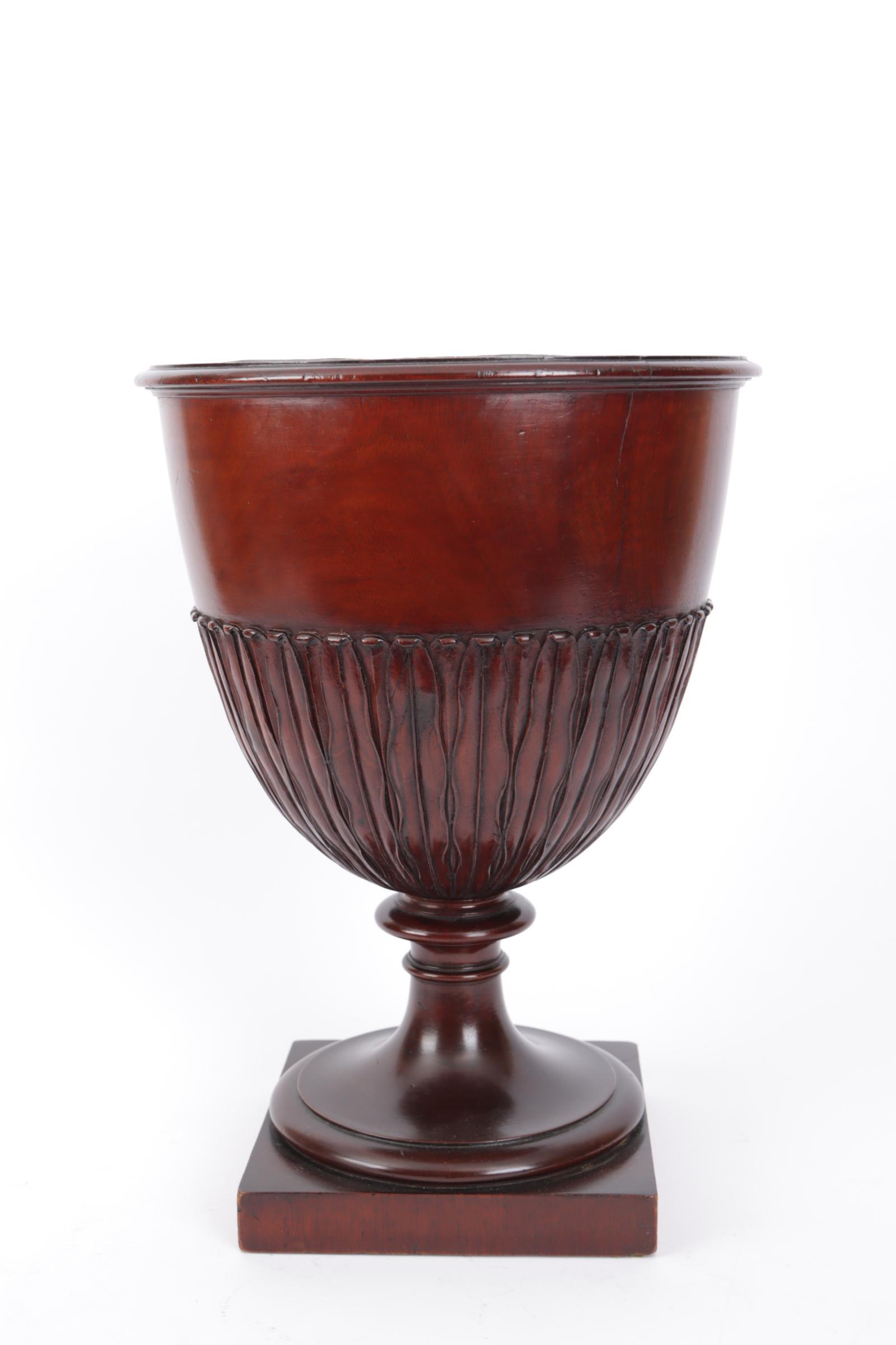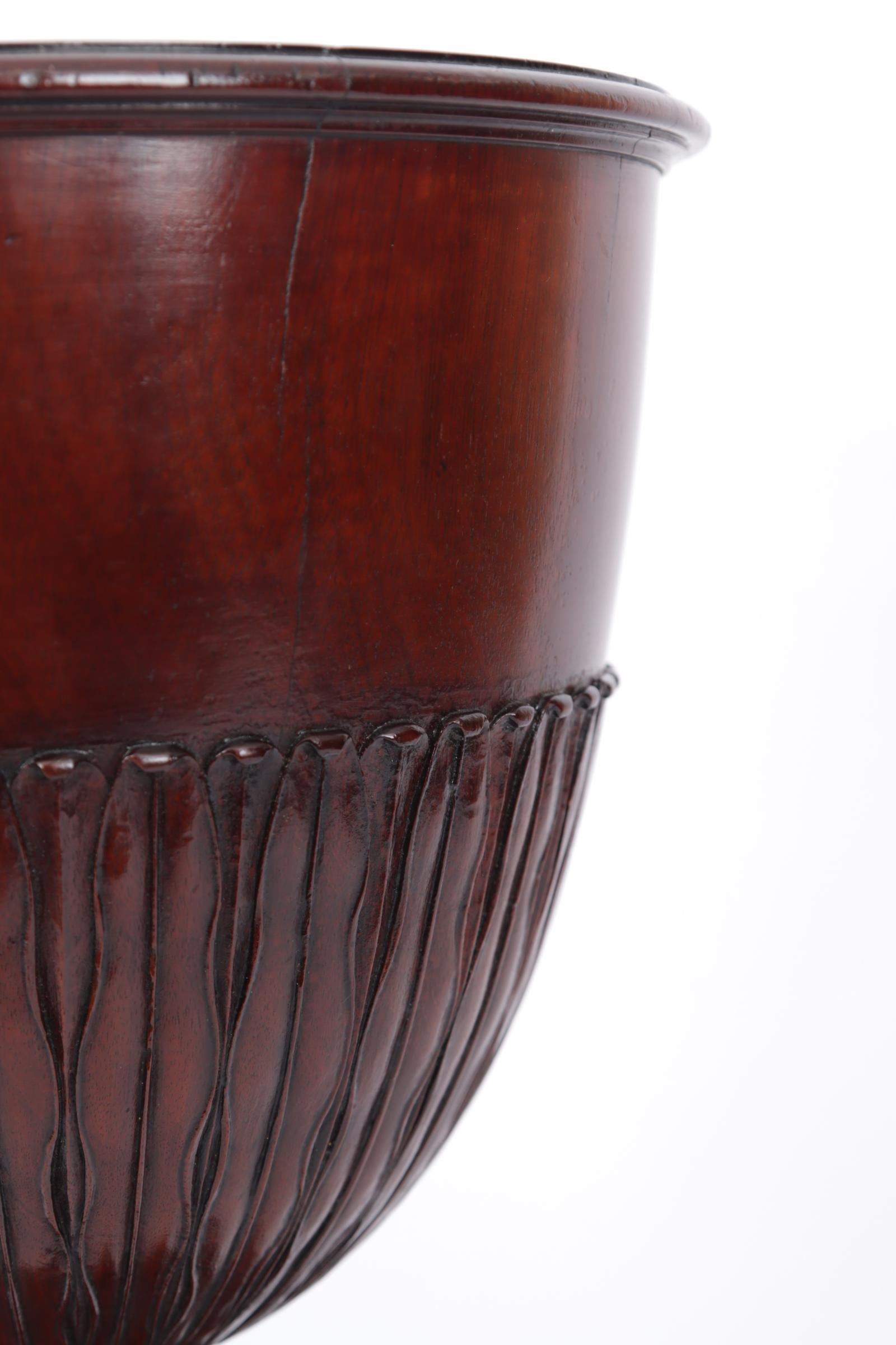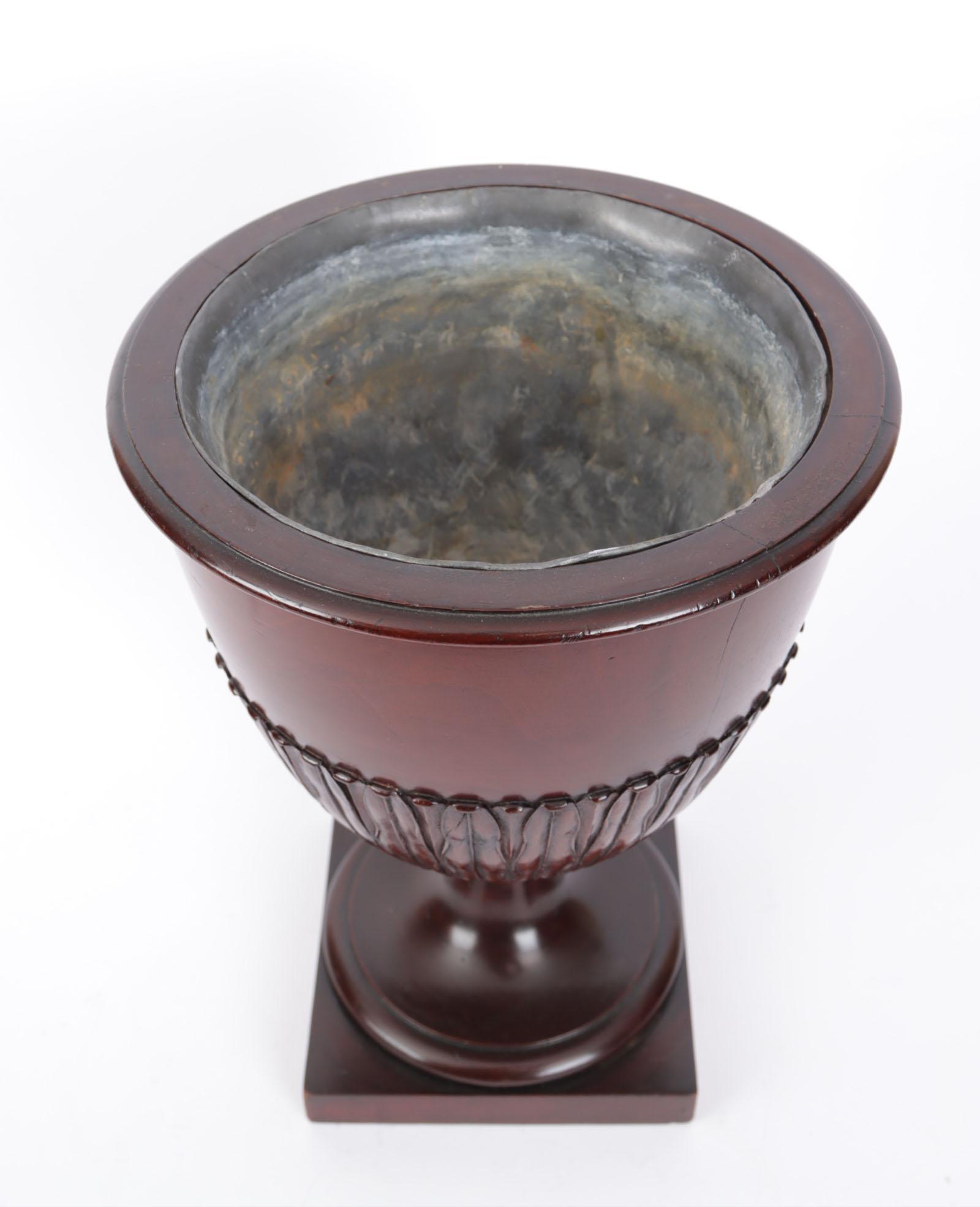 Antieke mahoniehouten jardinière met tinnen binnenbak, h.38 cm.