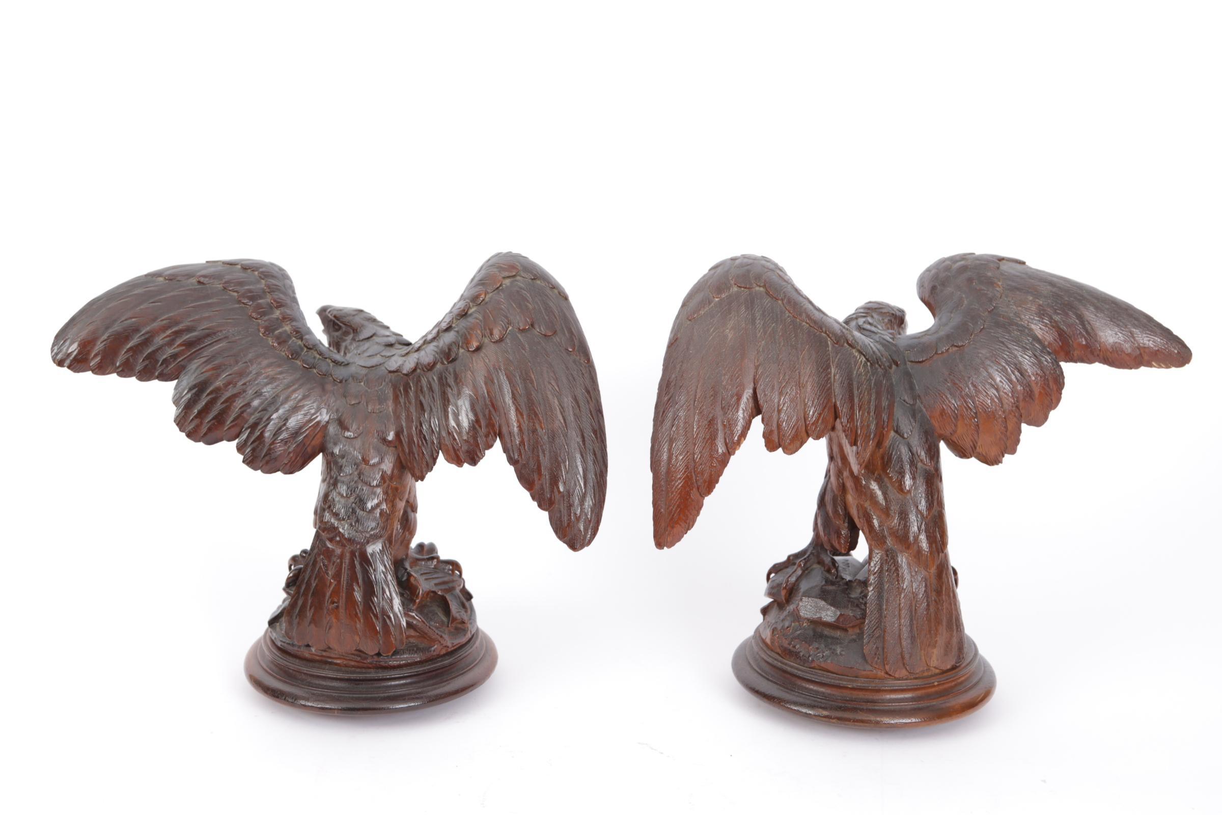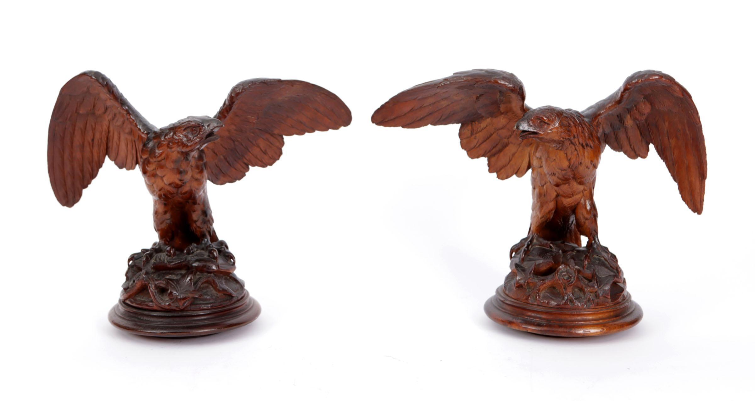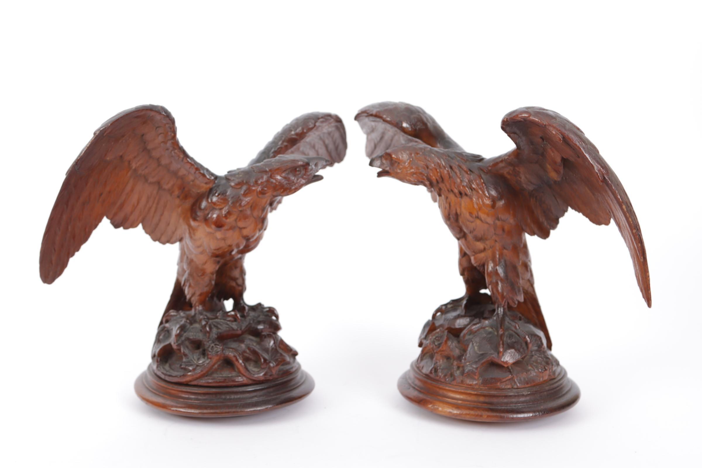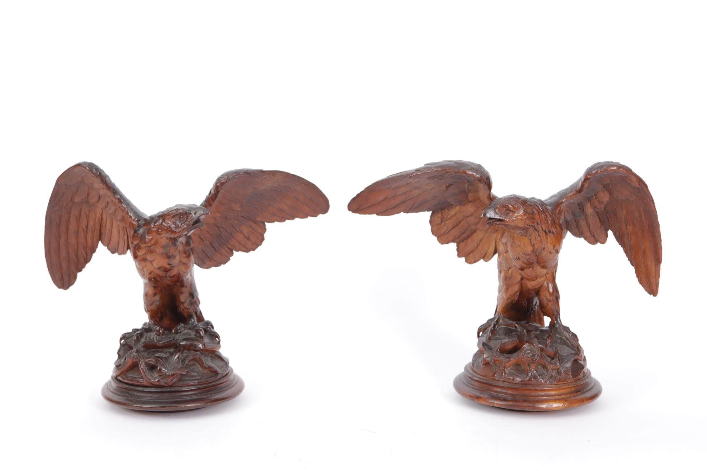 Stel antieke houten sculpturen van adelaars, h.27 cm.