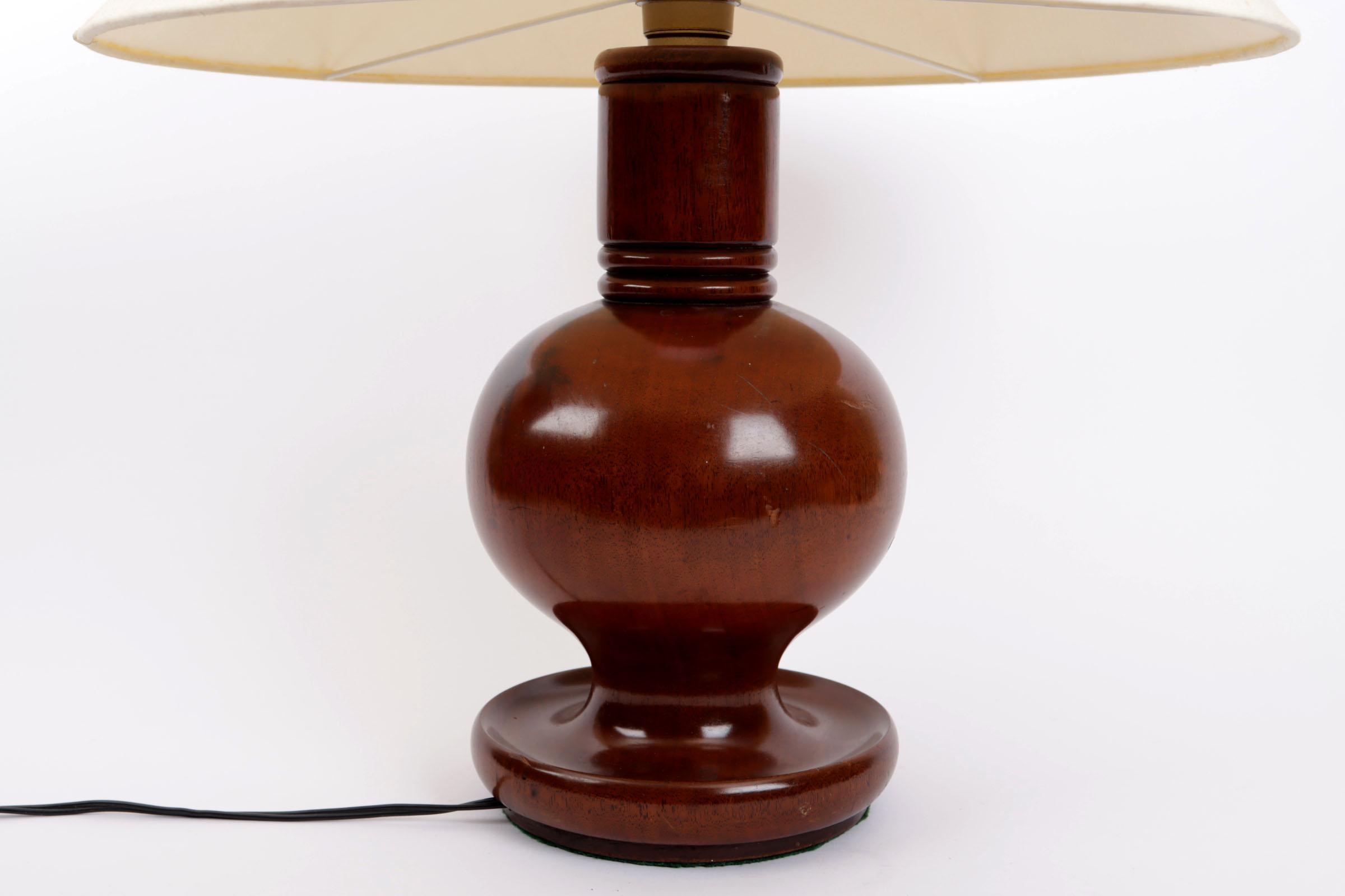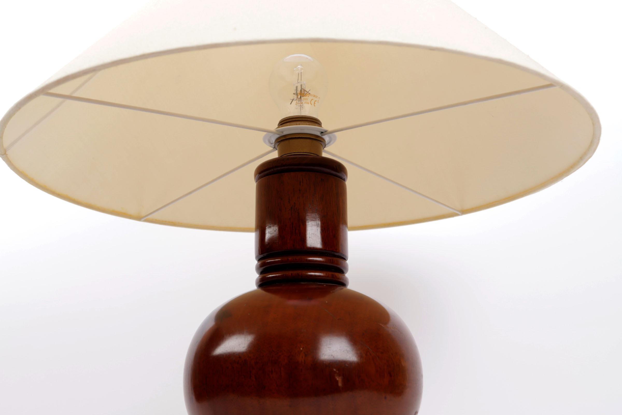 Houten schemerlamp met beige kap, h.55 cm.