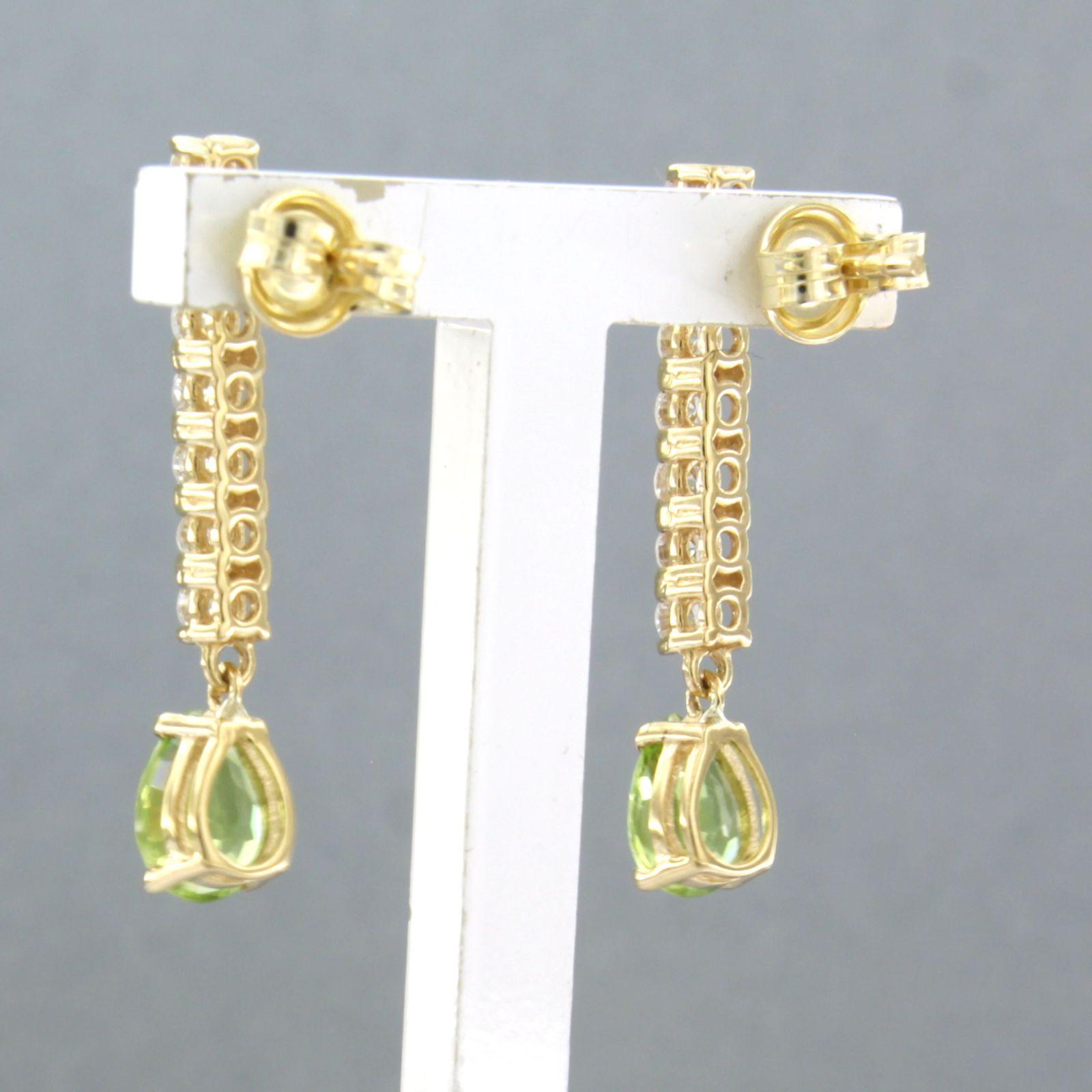 18 Kt. geelgouden oorhangers bezet met peridot 1.52 ct en briljant geslepen diamanten 0.58 ct