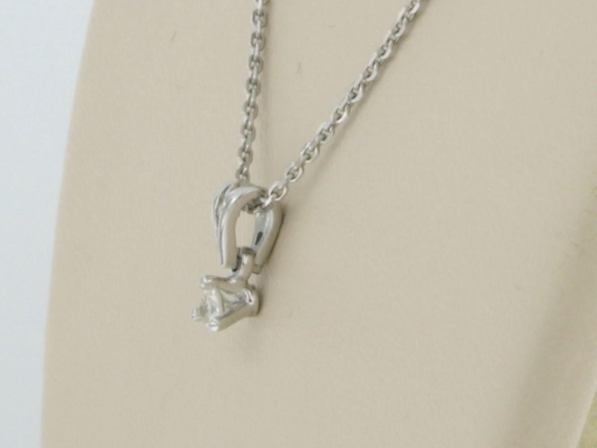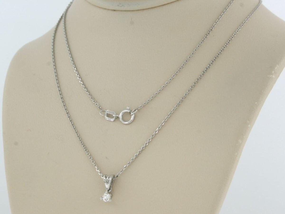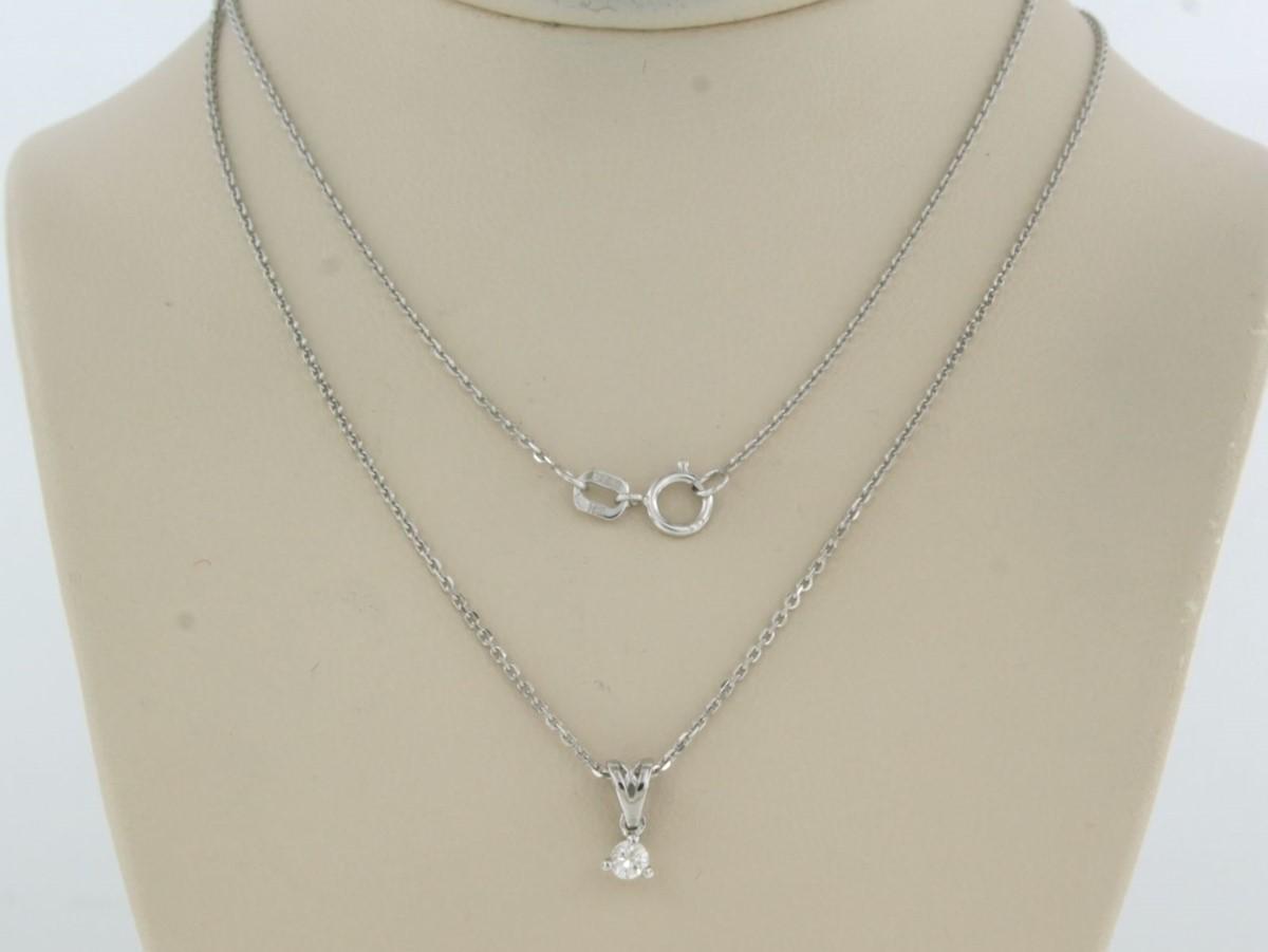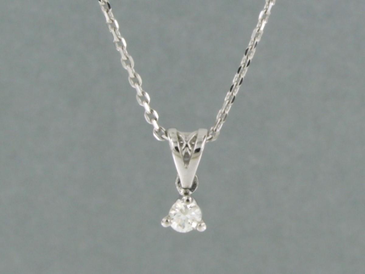 14 Kt. witgouden collier met een solitair hanger bezet briljant geslepen diamant tot. 0,09ct - F/G - SI - 50 cm lang