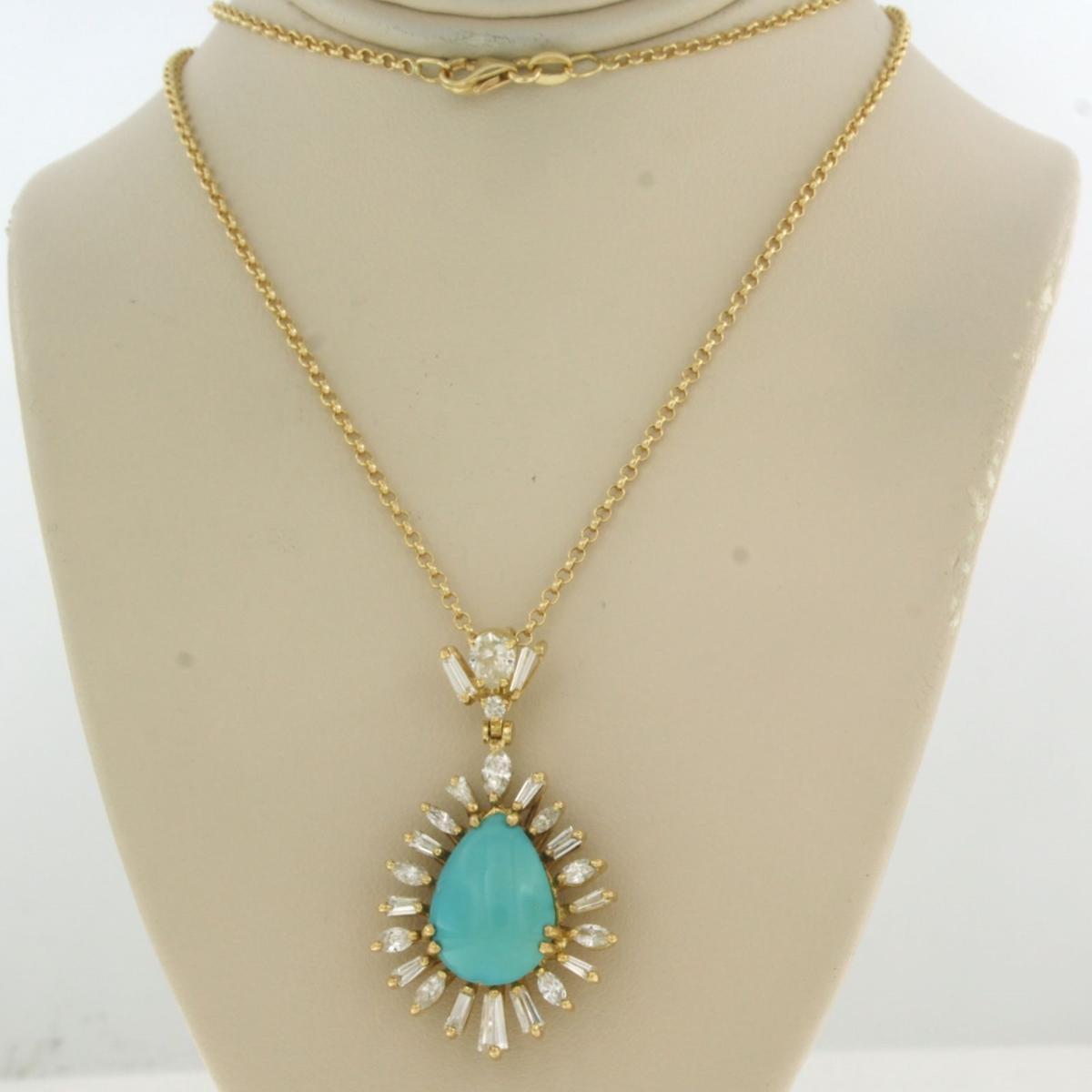 18 Kt. geelgouden collier met hanger bezet met turquoise en diverse slijpvormen geslepen diamant tot. 1,70ct - G/H - VS/SI - 50 cm lang