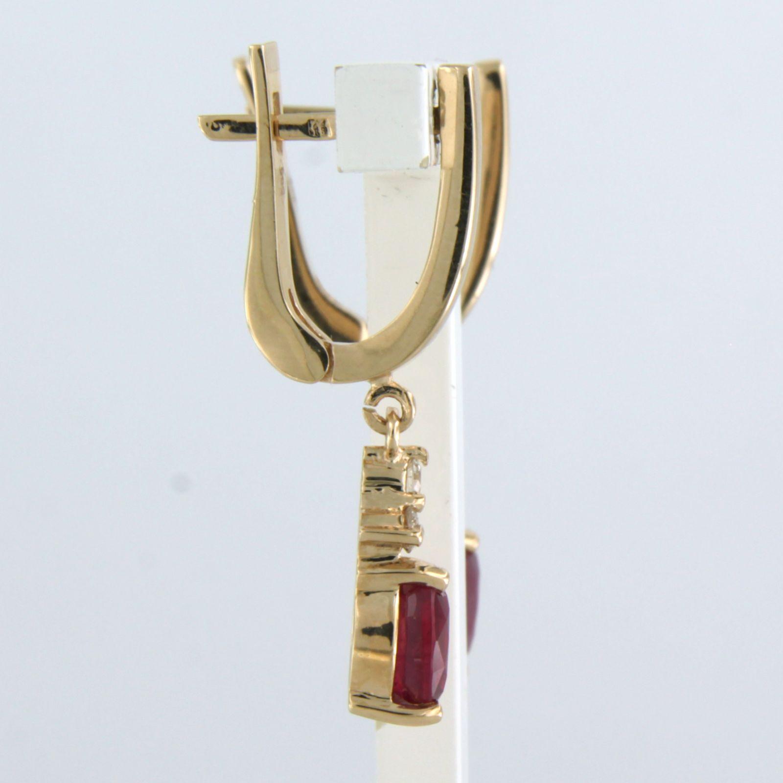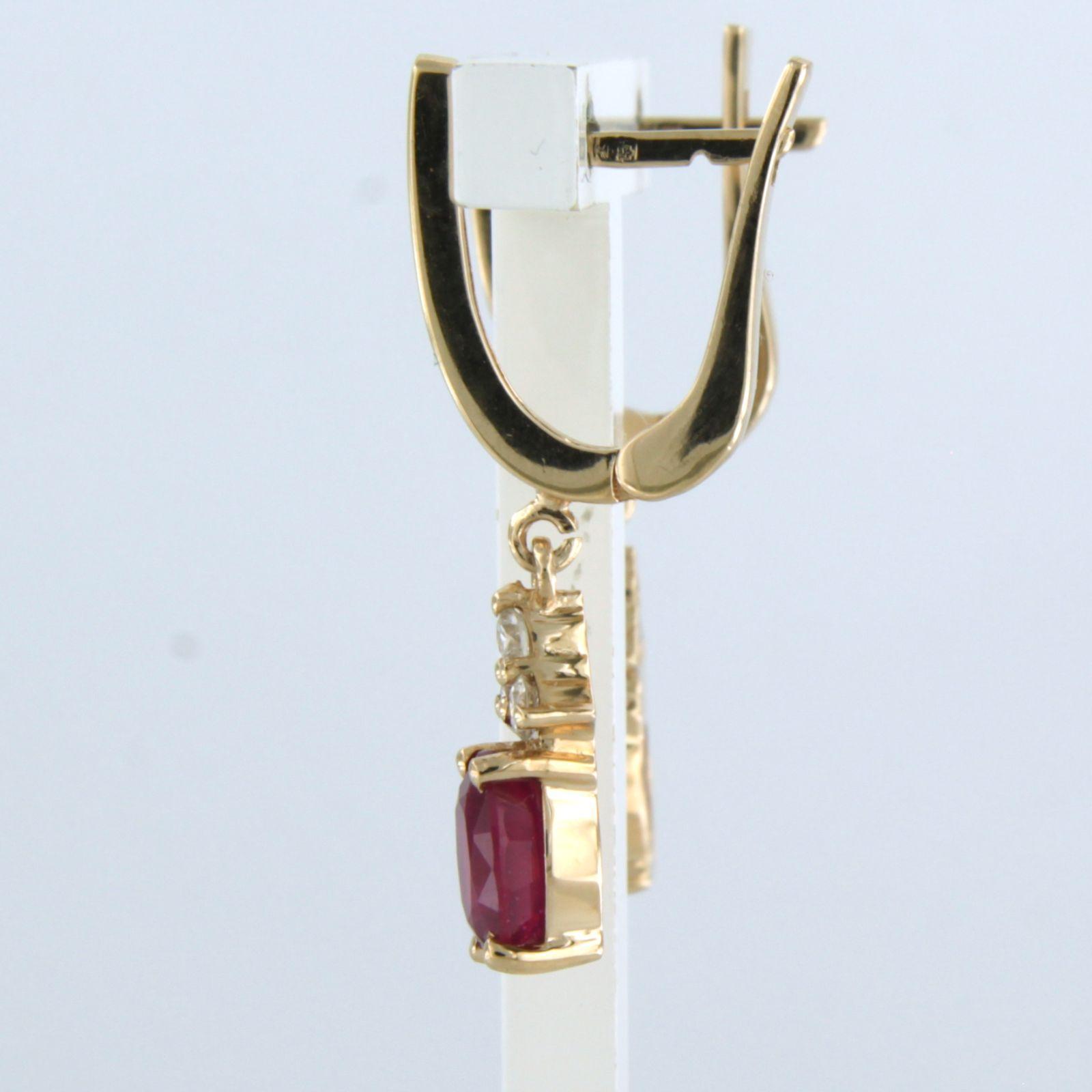 14 Kt. rosegouden oorhangers bezet met robijn tot 2,46ct en briljant geslepen diamanten tot. 0,24ct - G/H - VS/SI