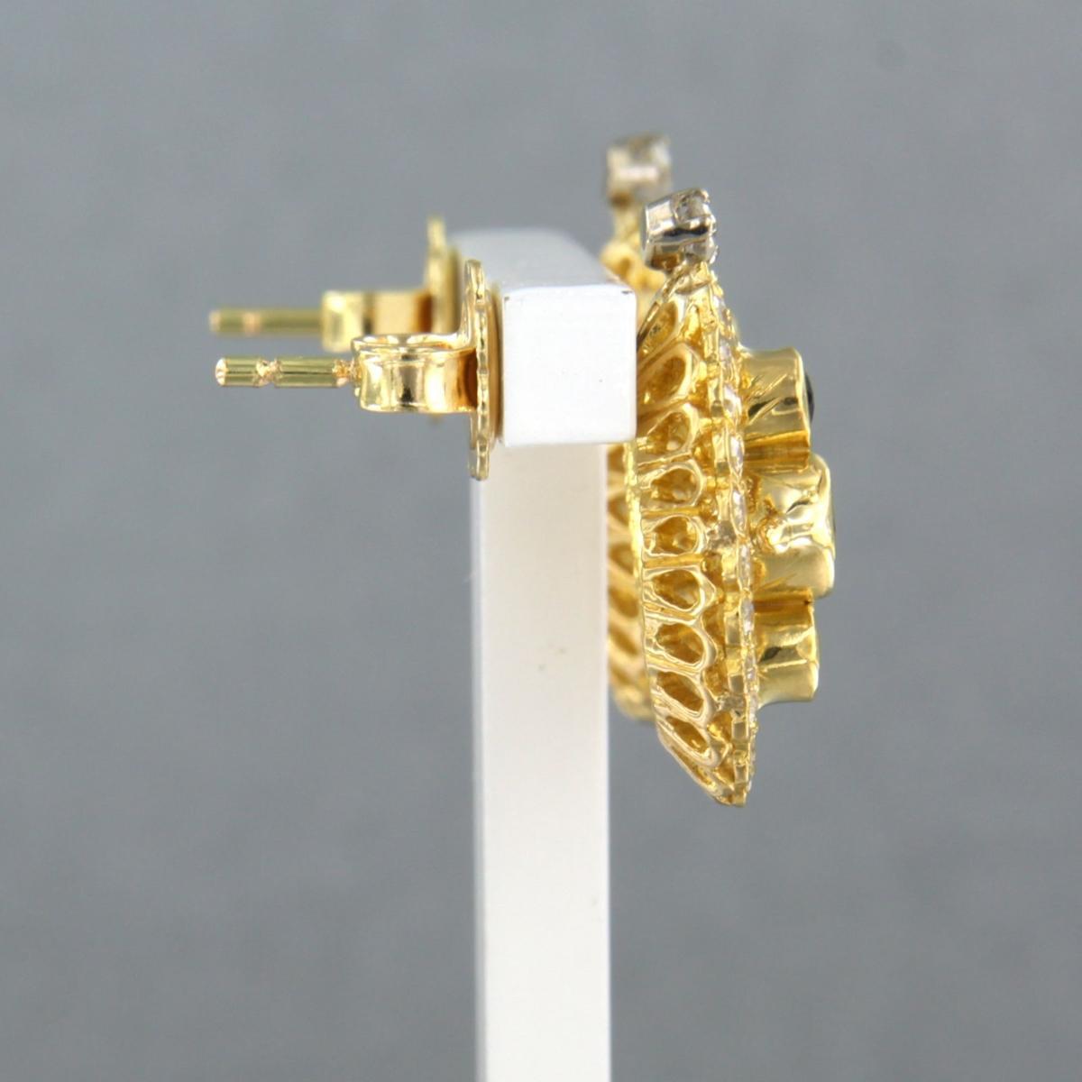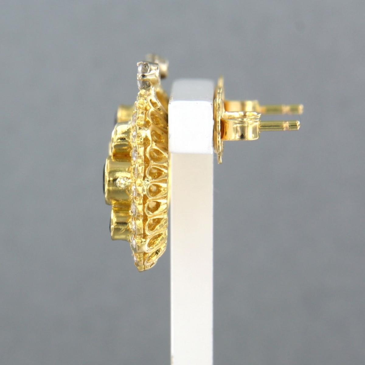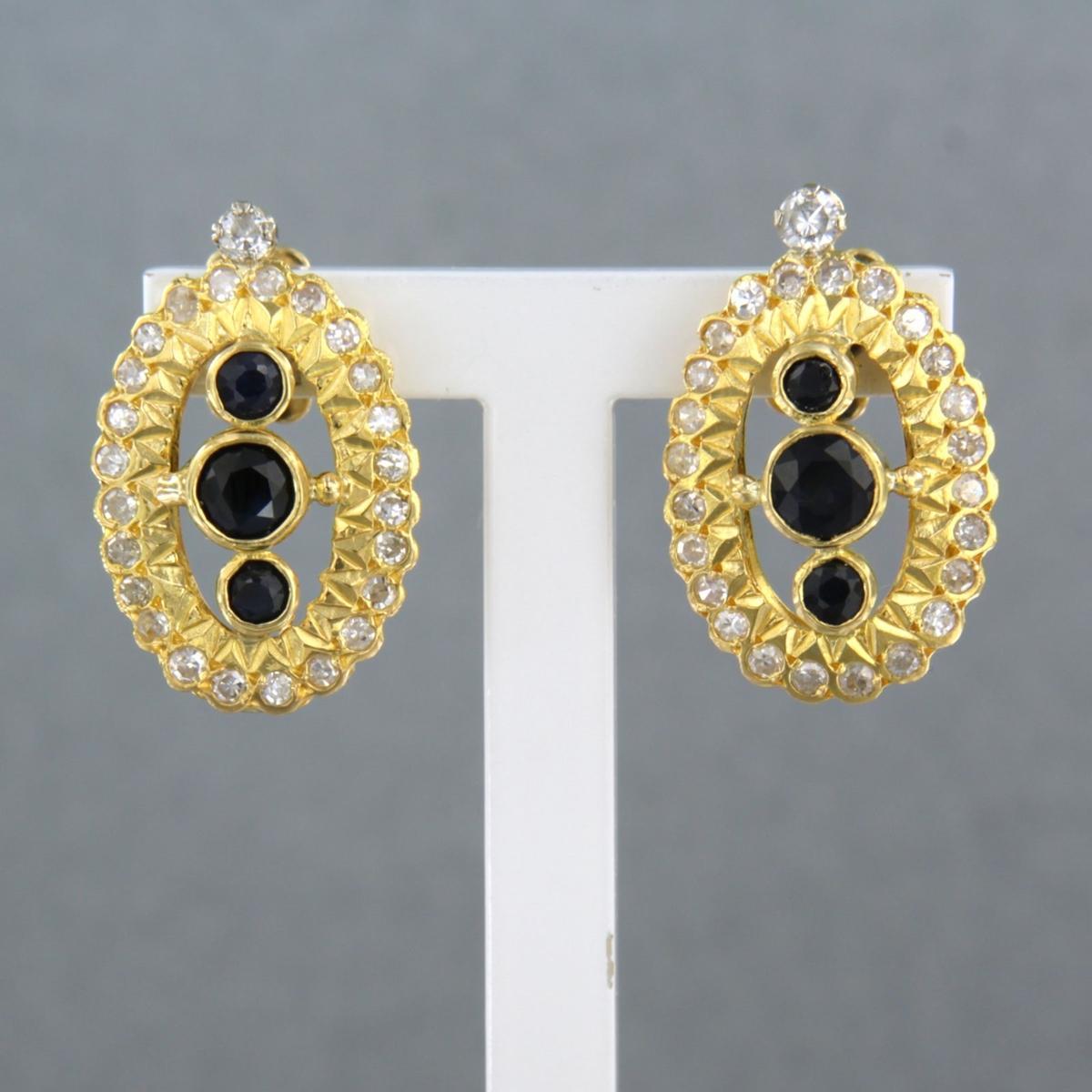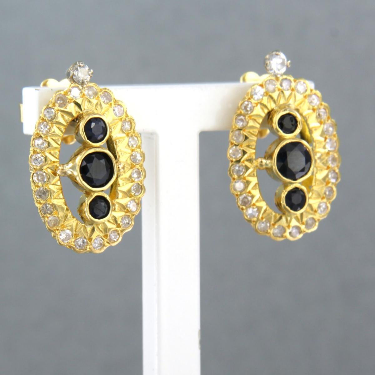 18 Kt. geelgouden oorknoppen bezet met saffier en single cut geslepen diamant tot. 0,50ct