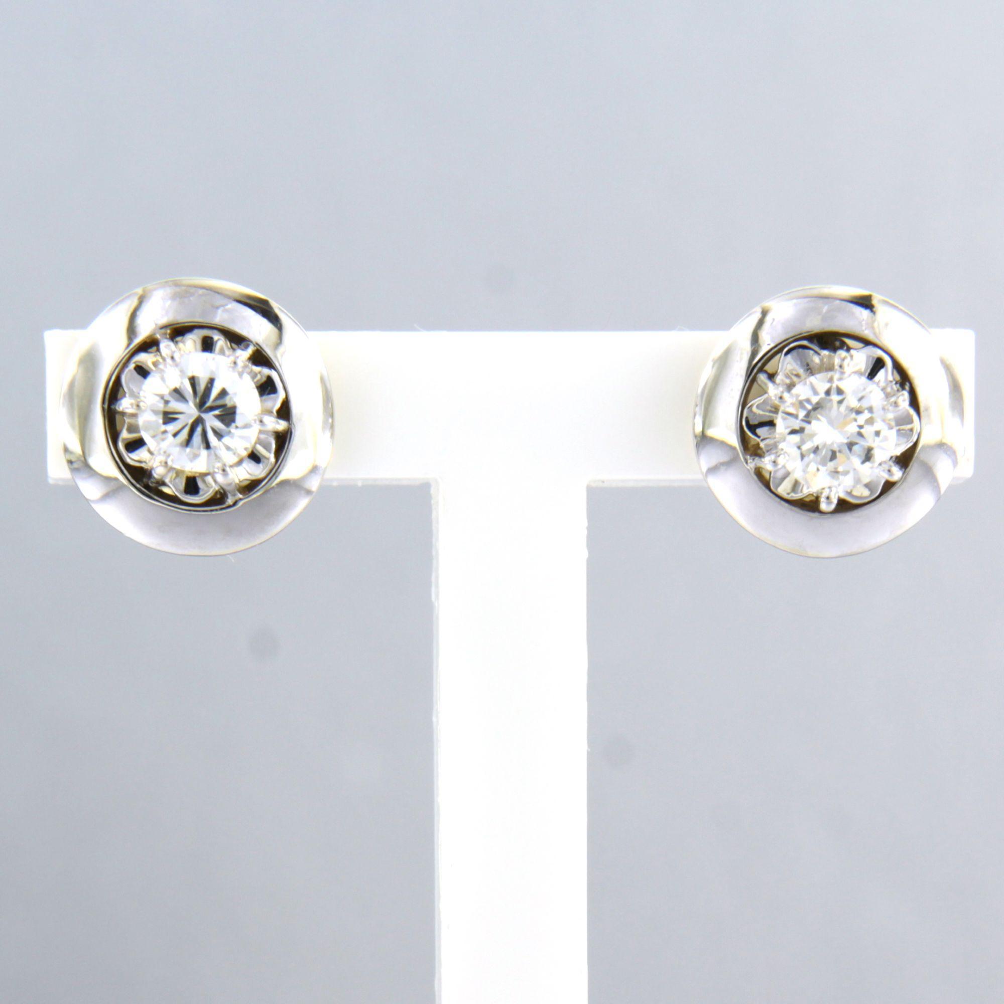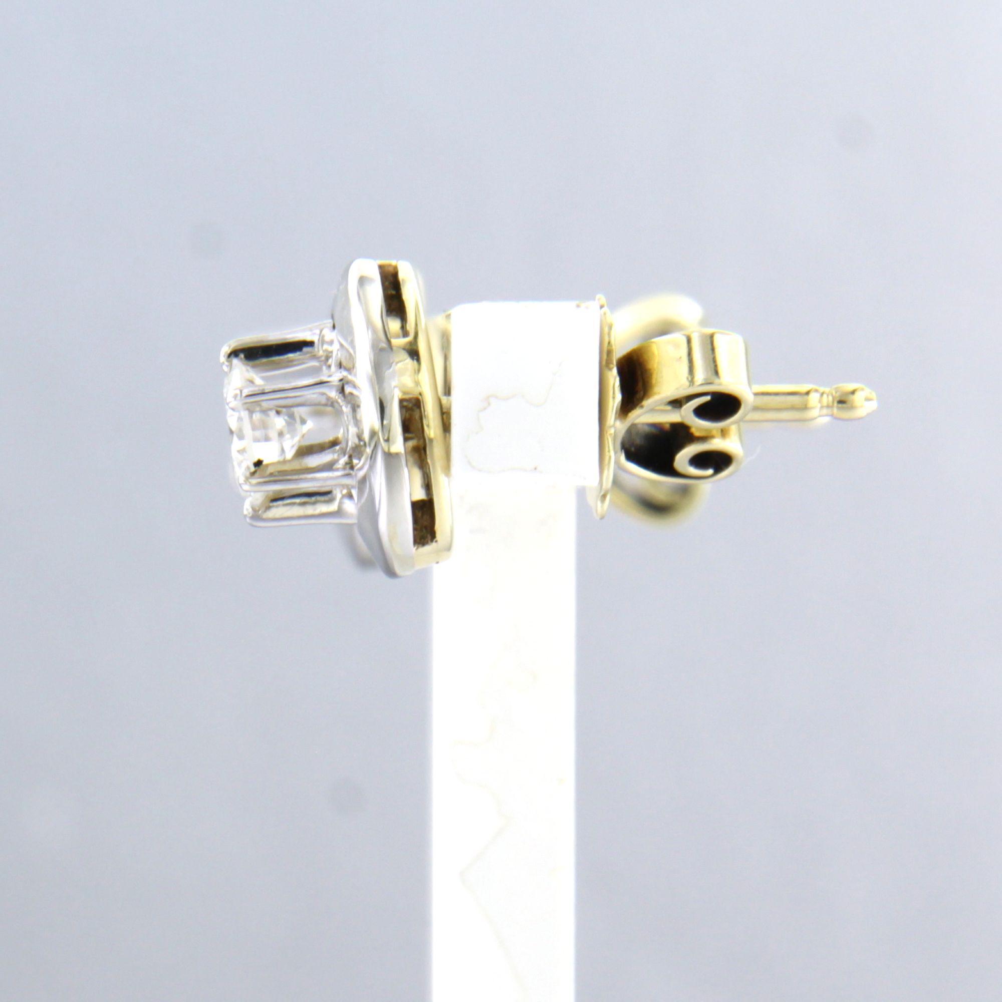 14 Kt. bicolour gouden oorknoppen bezet met briljant geslepen diamanten totaal 0,36ct F/G VS/SI