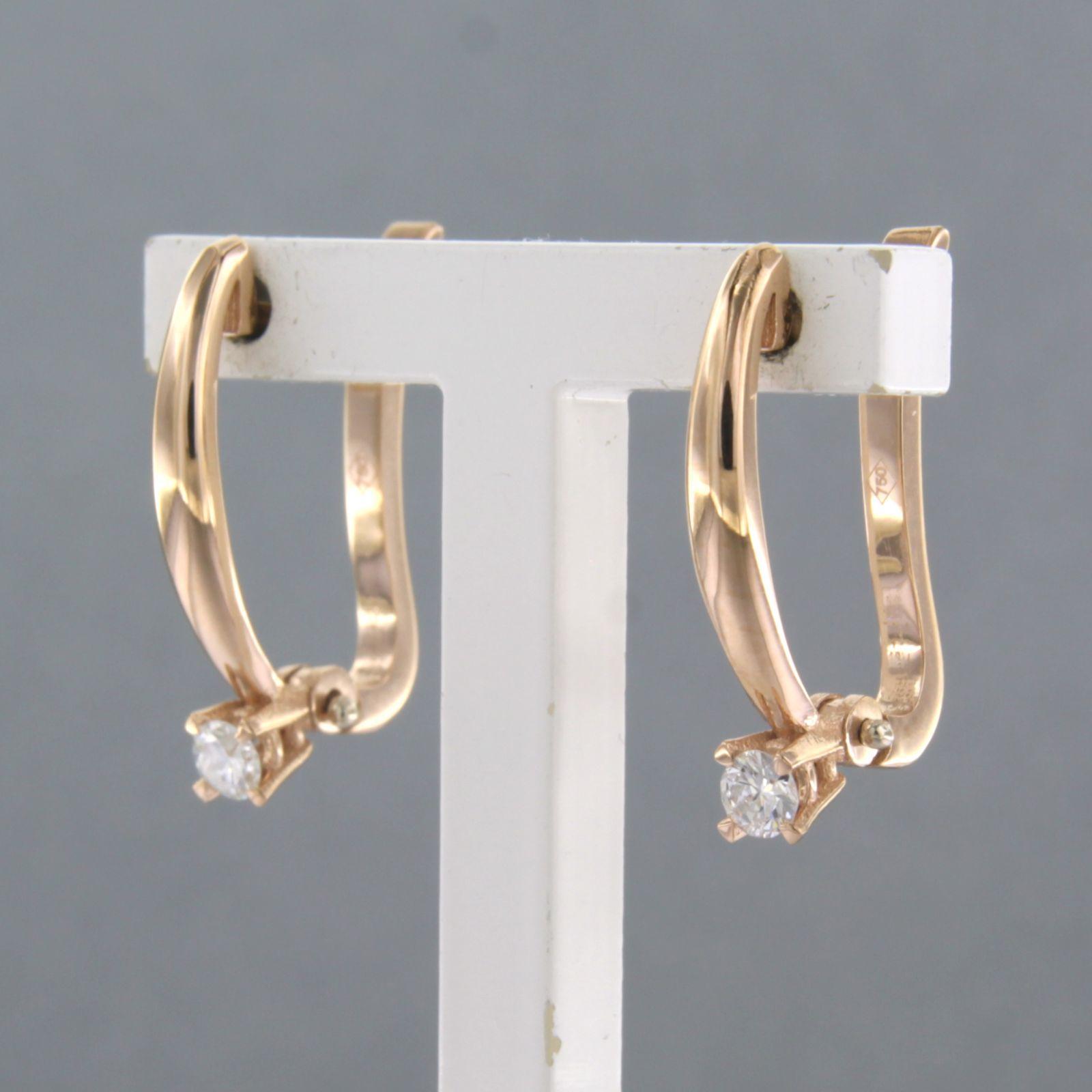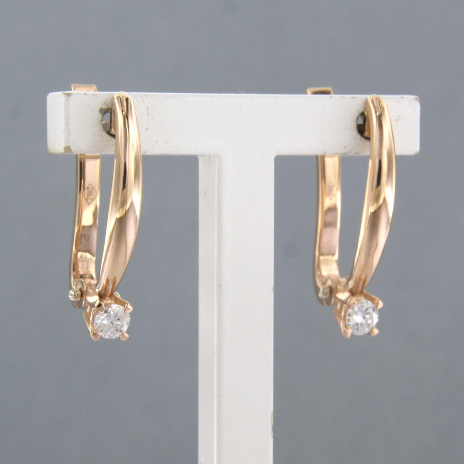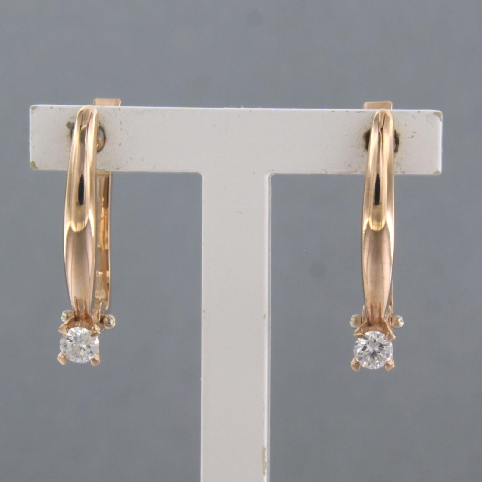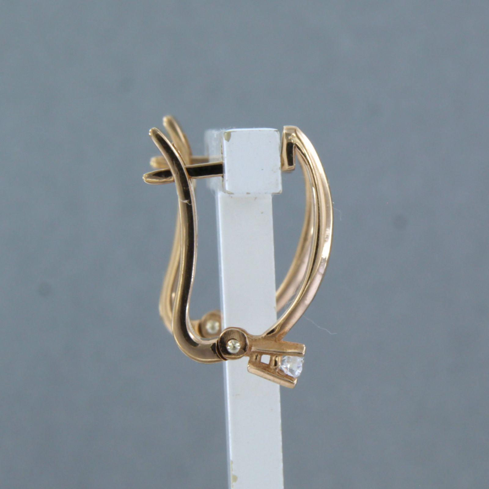 18 Kt. roodgouden oorhangers bezet met briljant geslepen diamanten totaal 0.16 ct