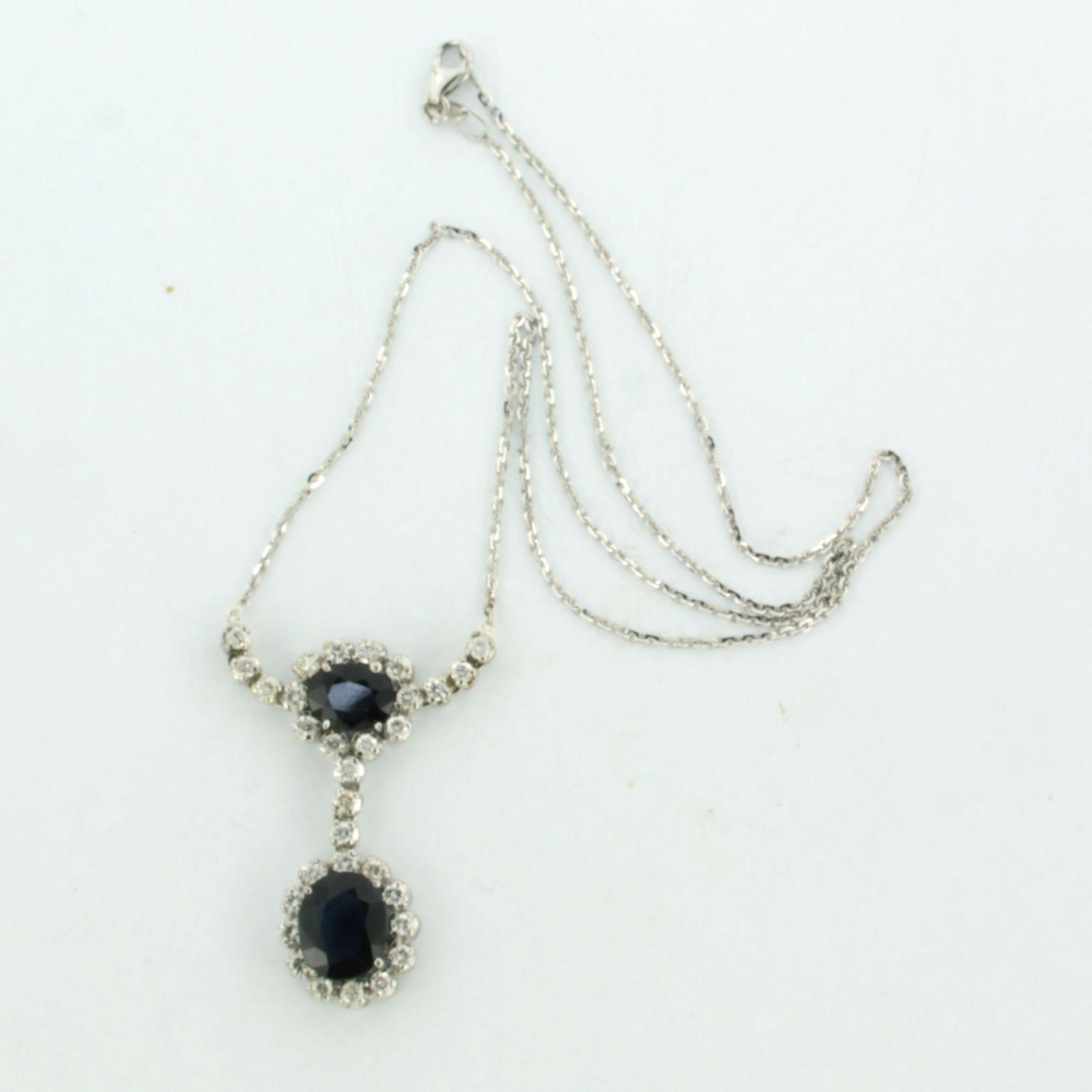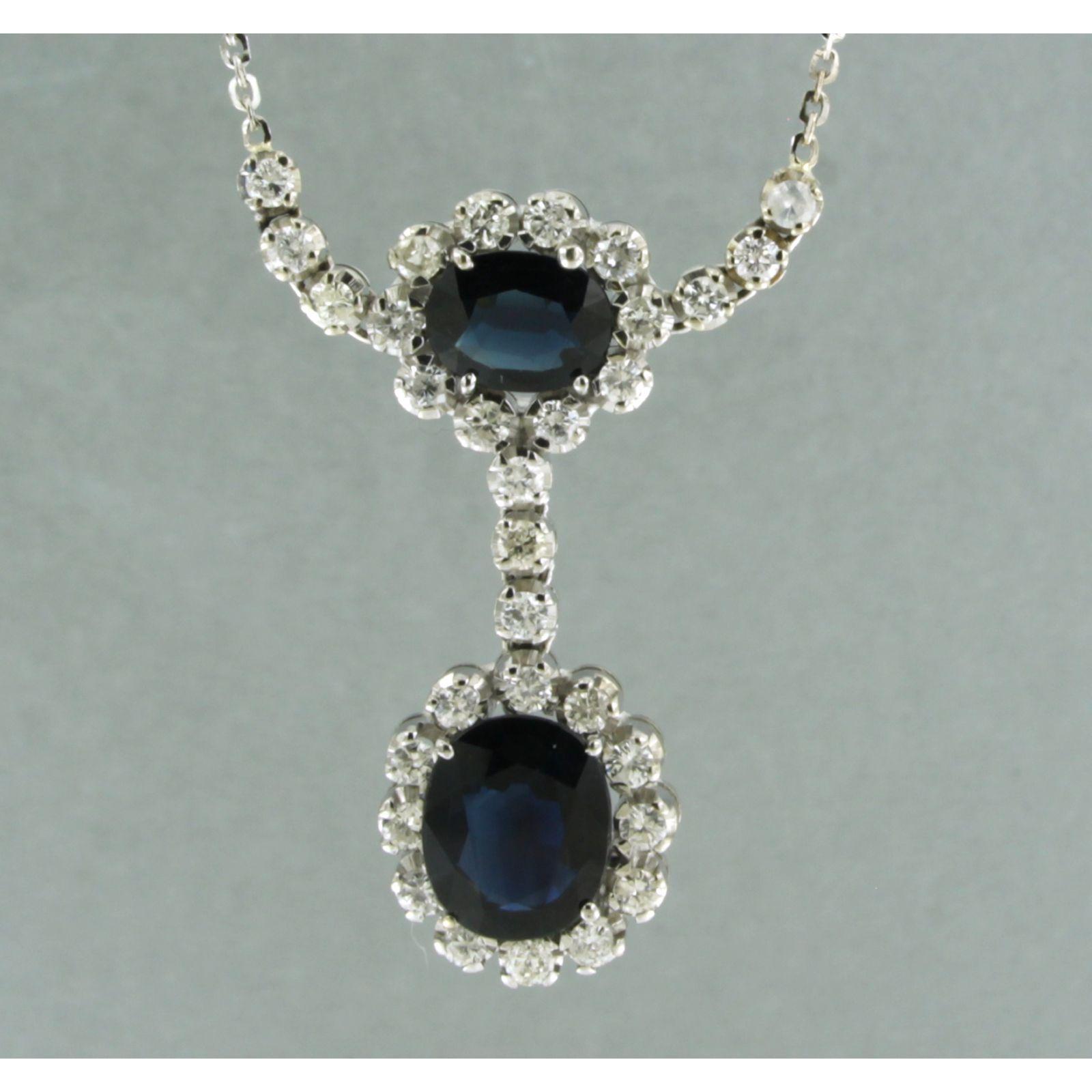 18 Kt. witgouden collier met saffier 3,20 ct en briljant geslepen diamanten totaal 1,00 ct F/G SI/P