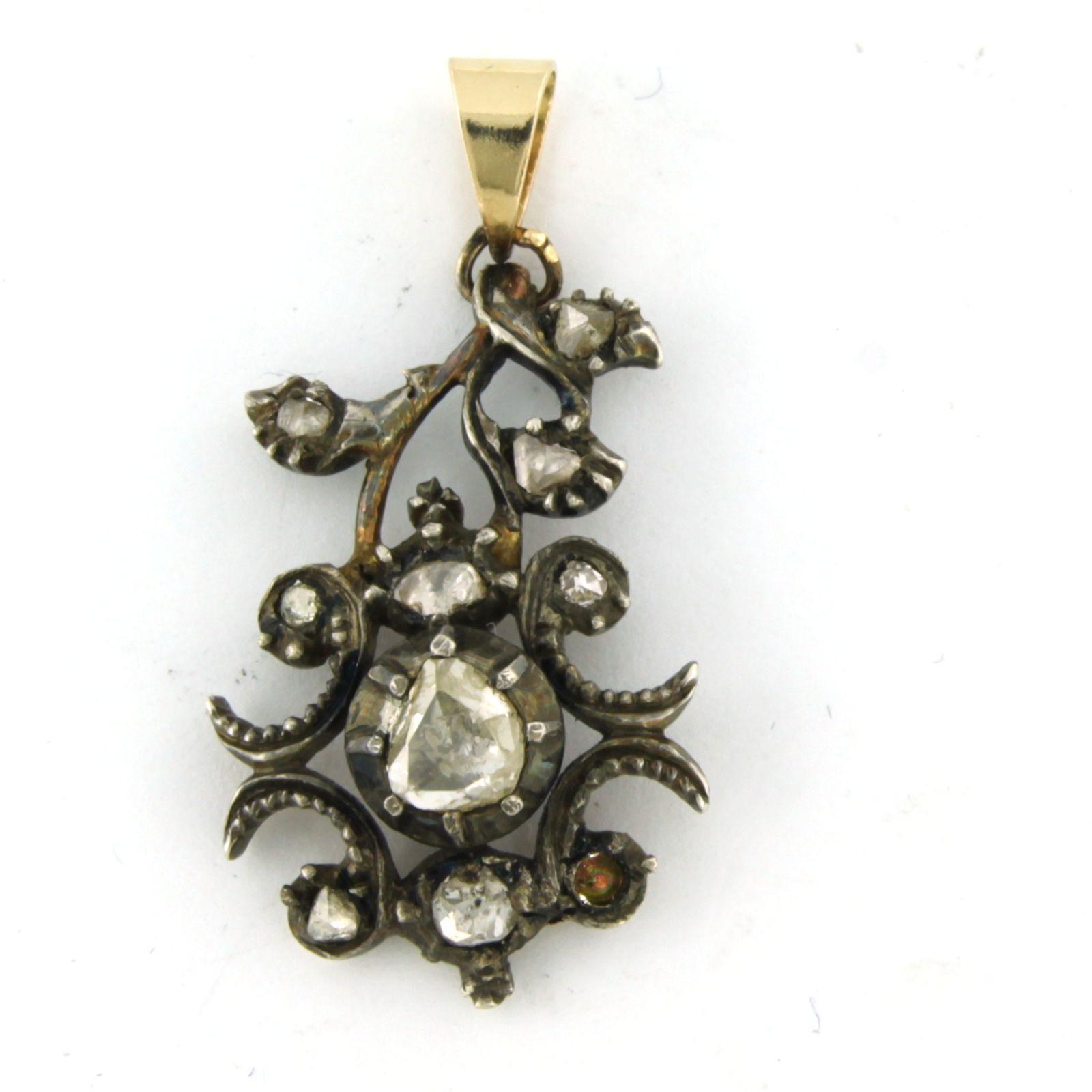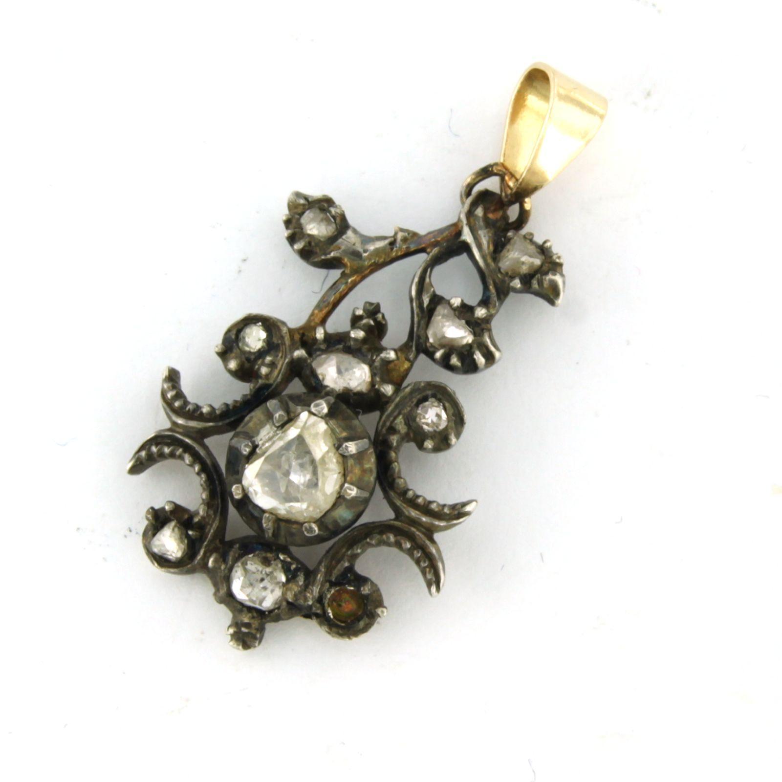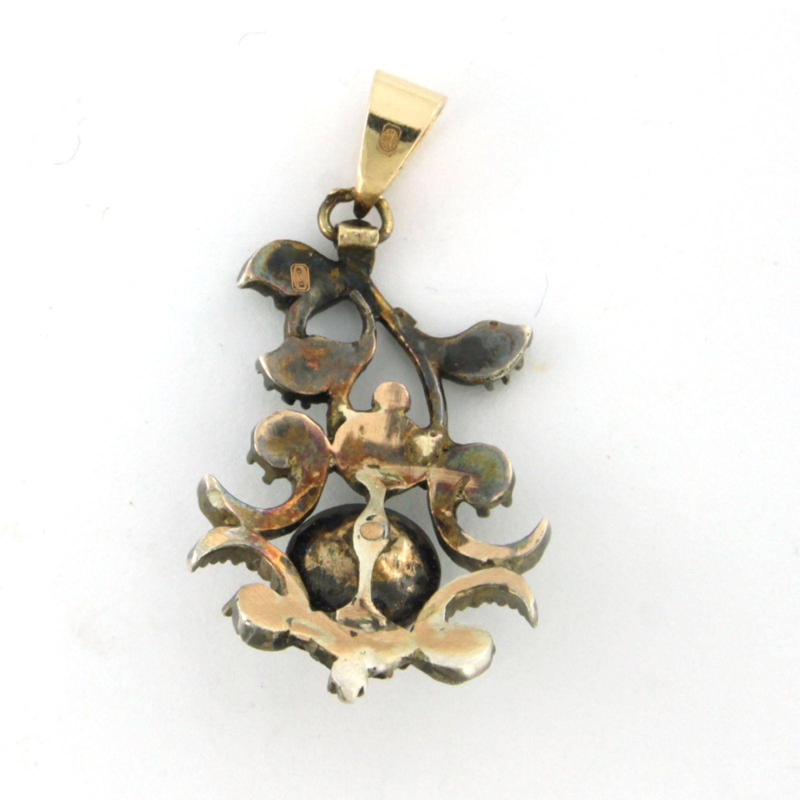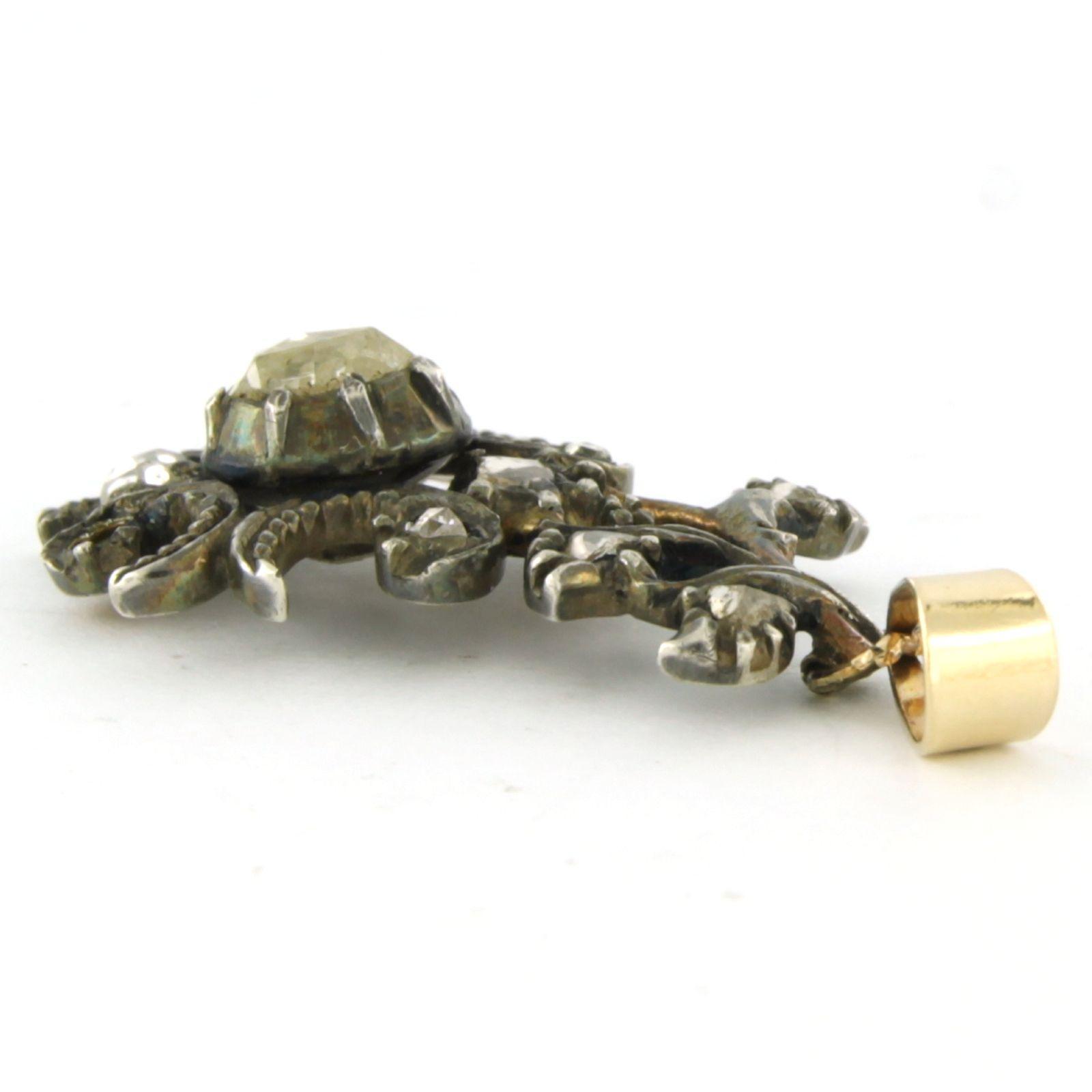 14 Kt. goud met zilver hanger bezet met roos geslepen diamanten totaal 0.30 ct