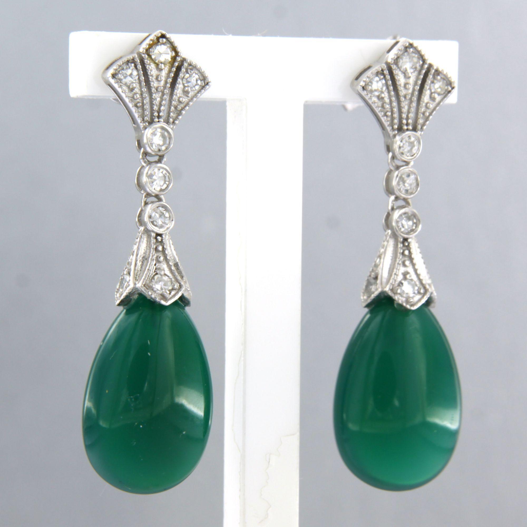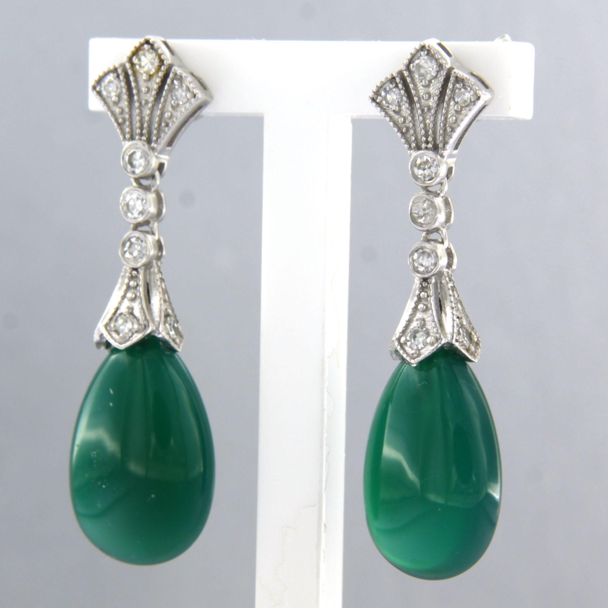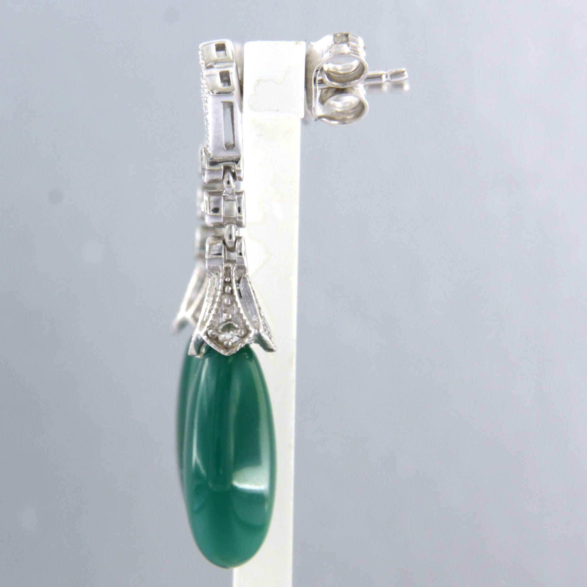 14 Kt. witgouden oorhangers bezet met chrysopraas en single cut geslepen diamenten totaal 0.30 ct