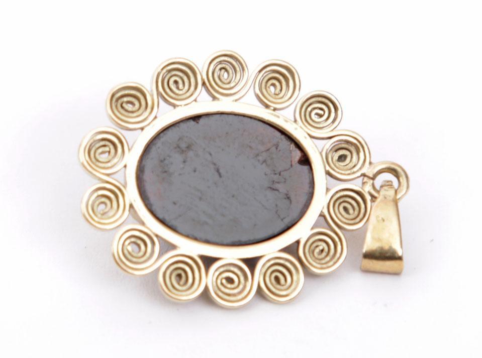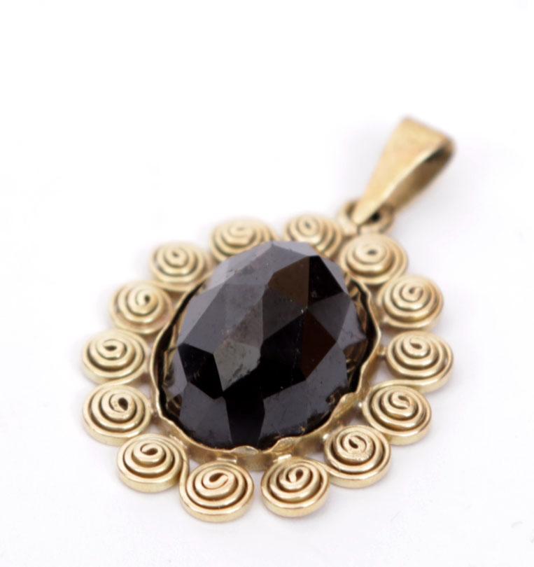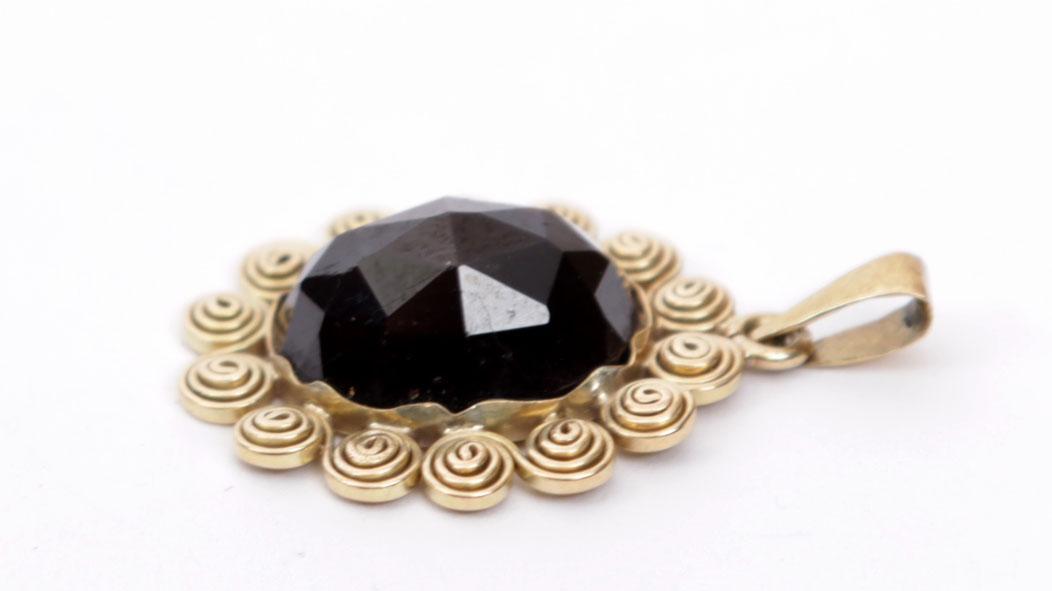 14 Kt. gouden hanger bezet met geslepen granaat, 5.6 gram