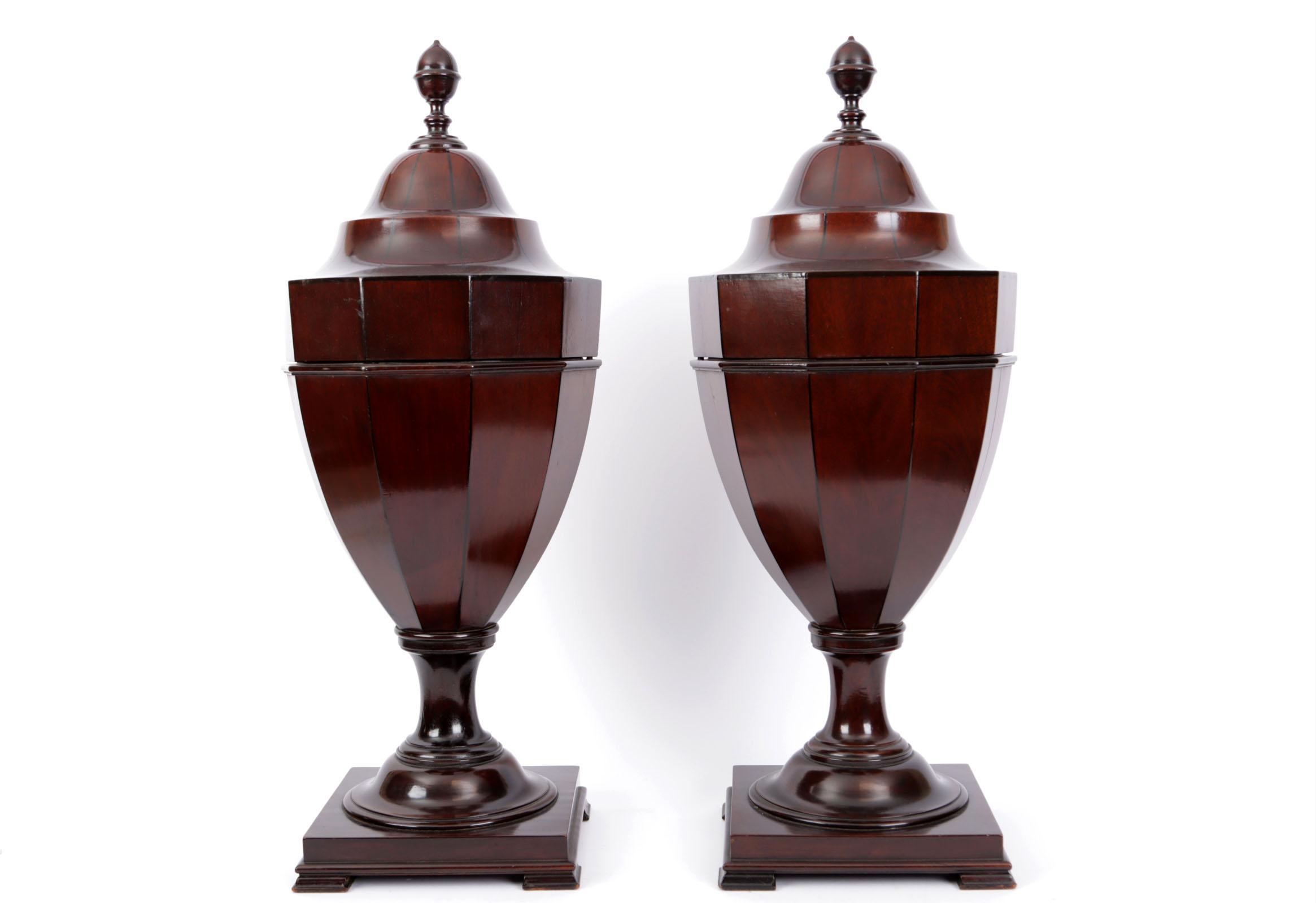 2 oude mahoniehouten bestek cassettes, h.60 cm.