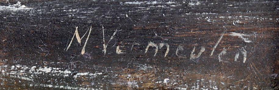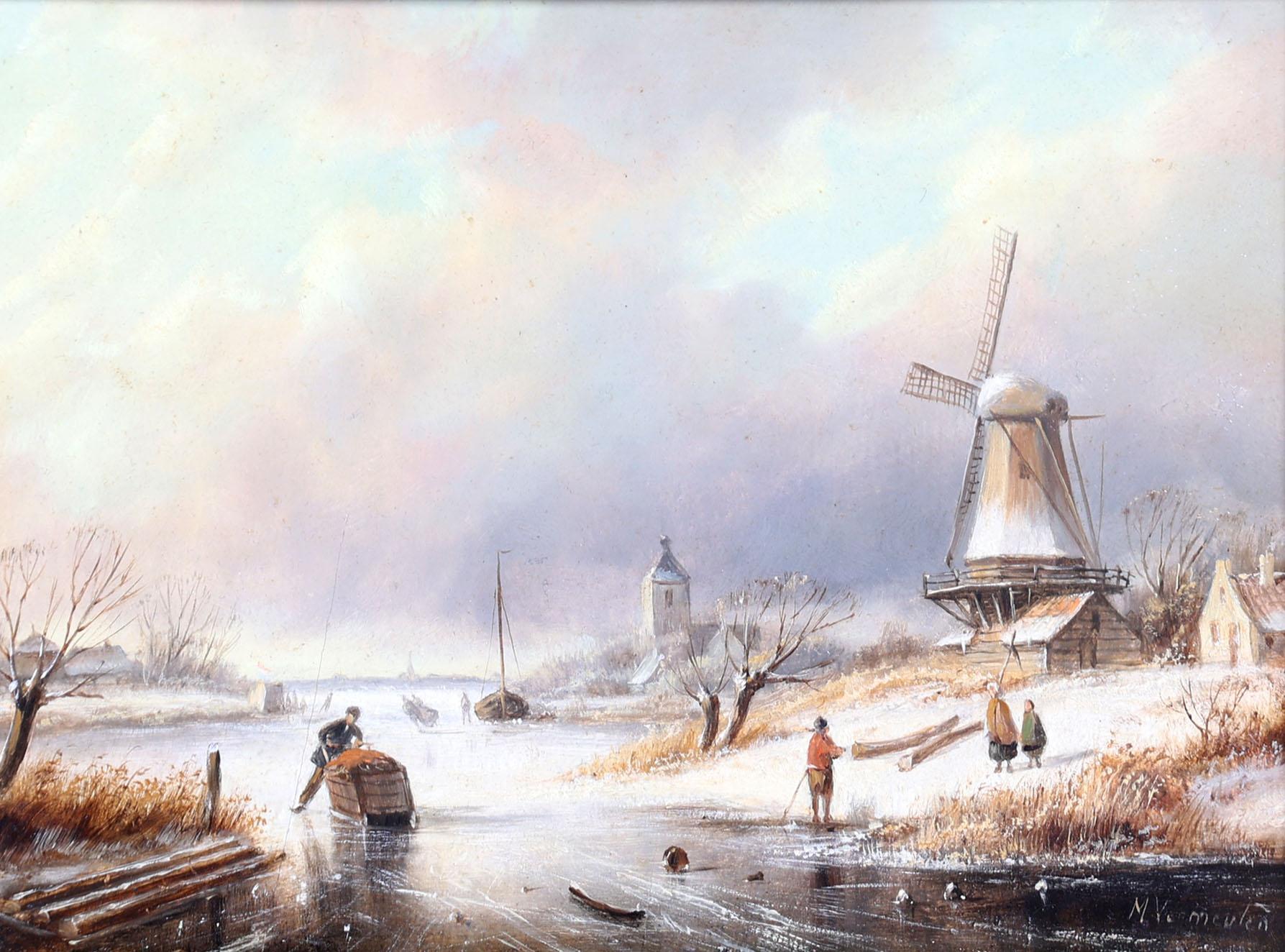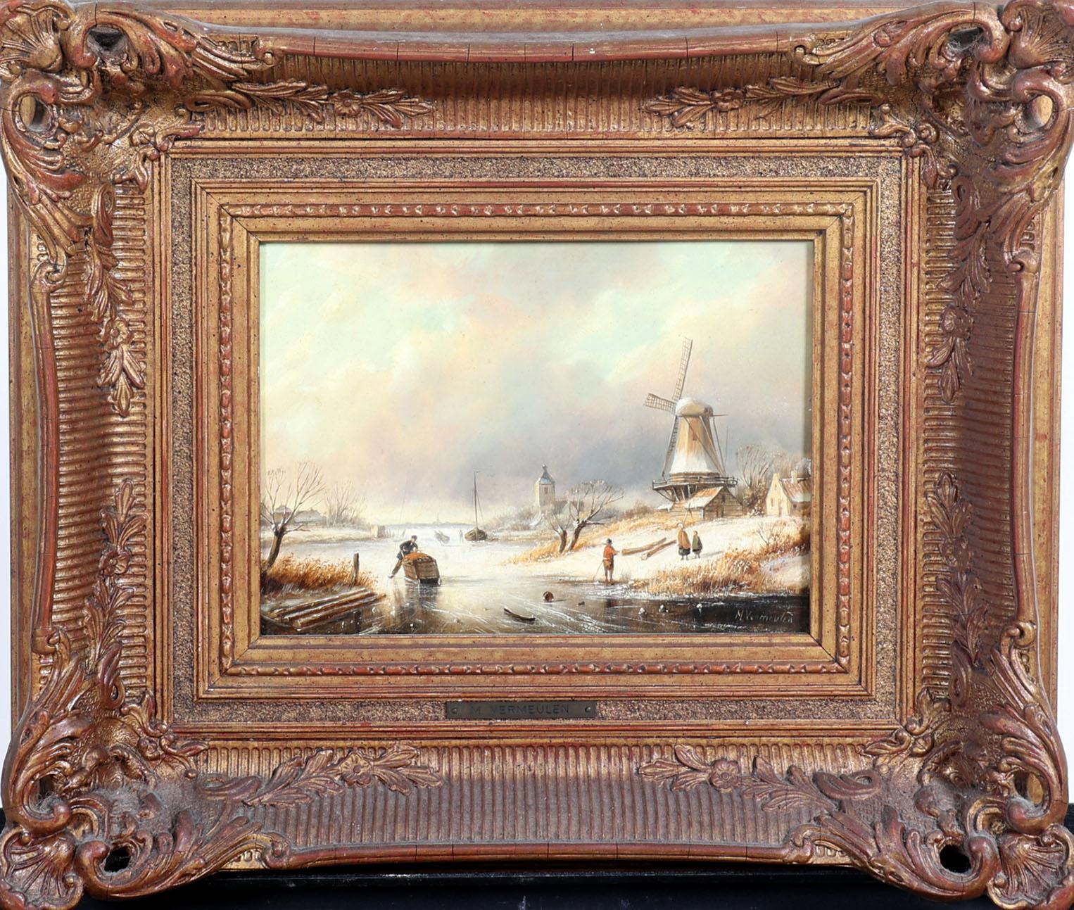 Vermeulen Marinus Cornelis Thomas (1868-1941), Winter ijsgezicht met schaatsende personen, olieverf op paneel, 23,5 x 18 cm., provenance particuliere collectie /Roelofs Kunsthandel