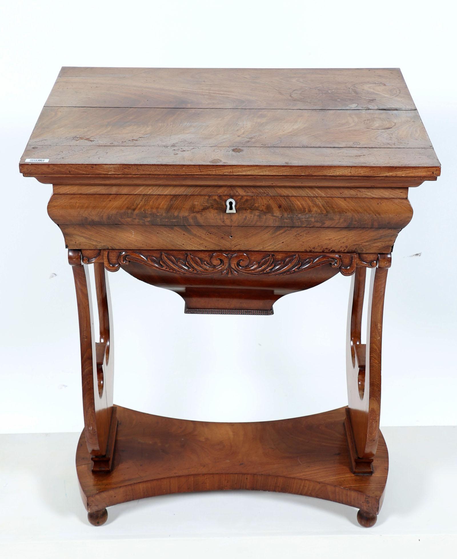 Antieke mahoniehouten Empire naaitafel (restauraties), h.76 x b.60 x d.41 cm.
