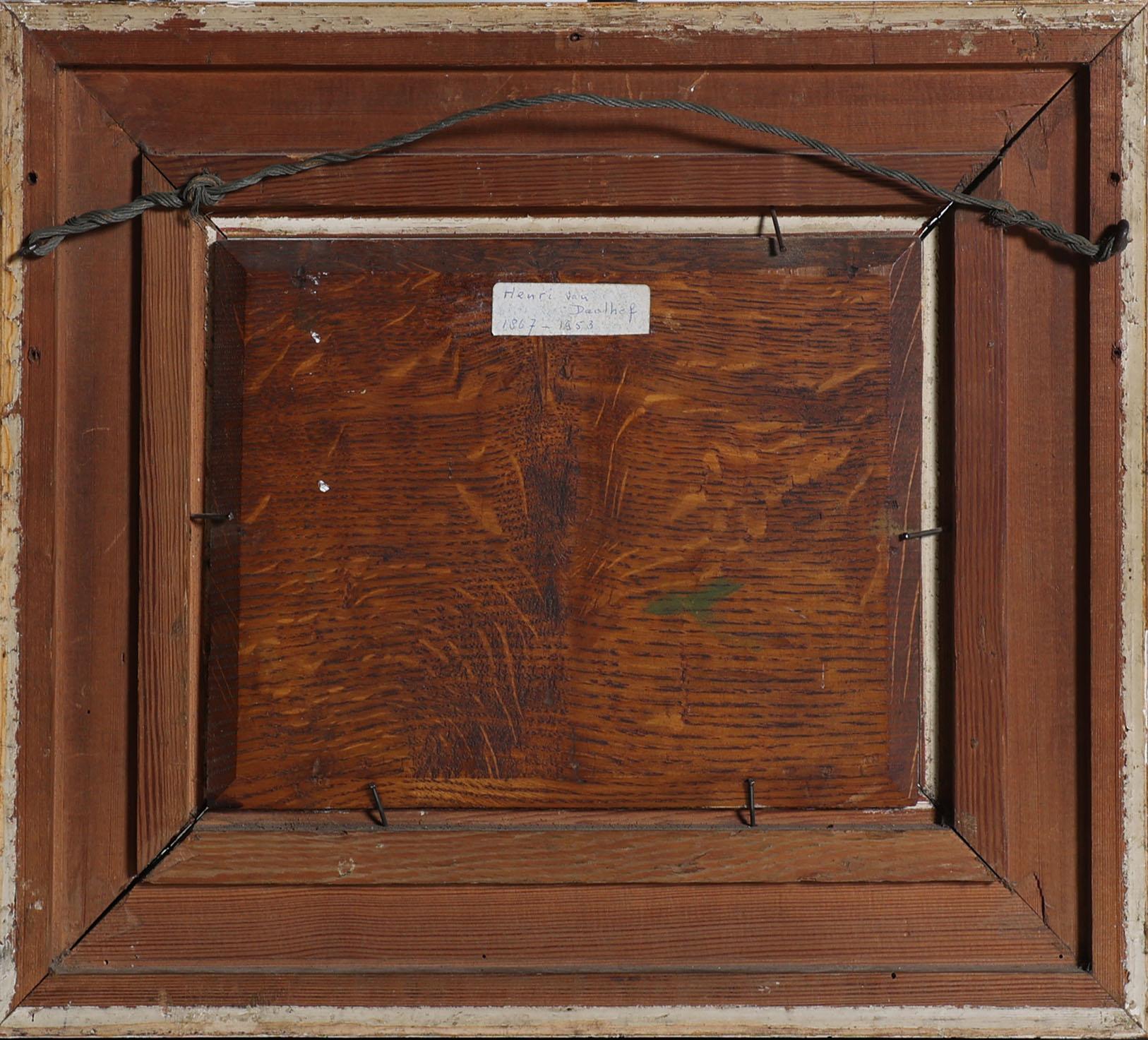 Hermanius Anthonius (Henri) van Daalhoff (1867-1953), Boerderij met moeder en kind, olieverf op paneel, 24,5 x 19 cm.