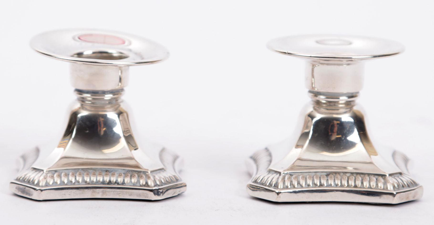 Twee 2e gehalte zilveren 1-lichts kandelaars, h.4,5 cm.