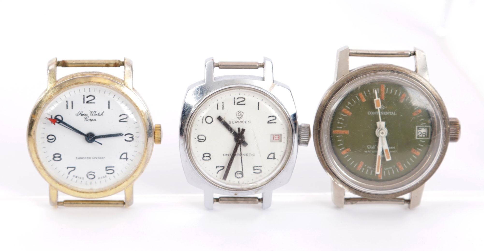 Koop met drie vintage horlogekasten, Services antimagnetic trench watch 1970, Continental gulf stream en een switch watch horlogekast