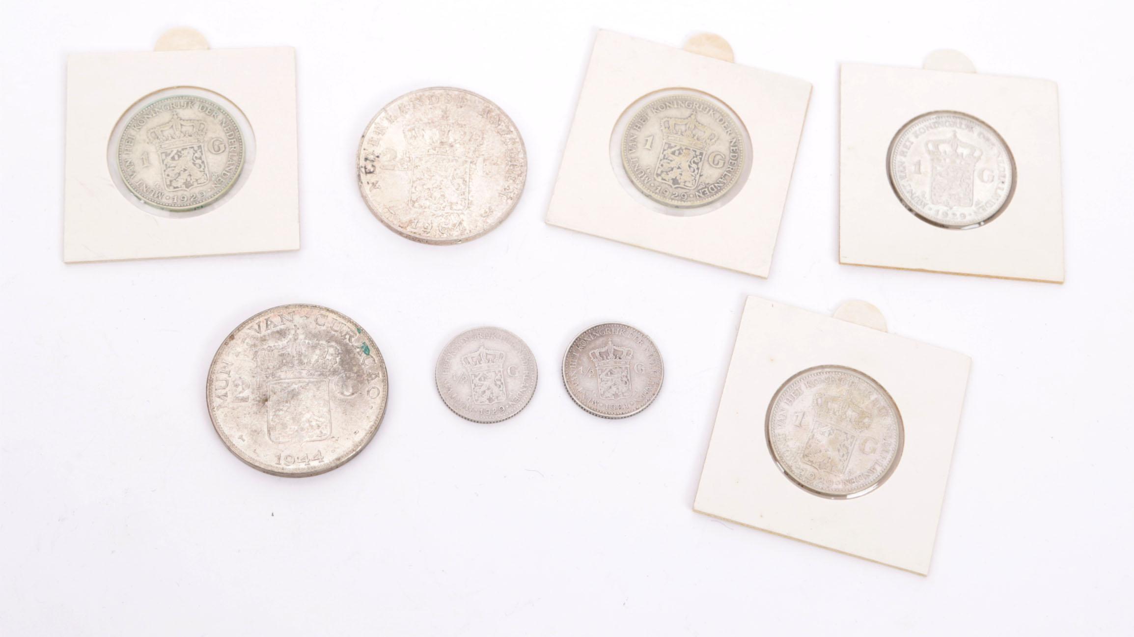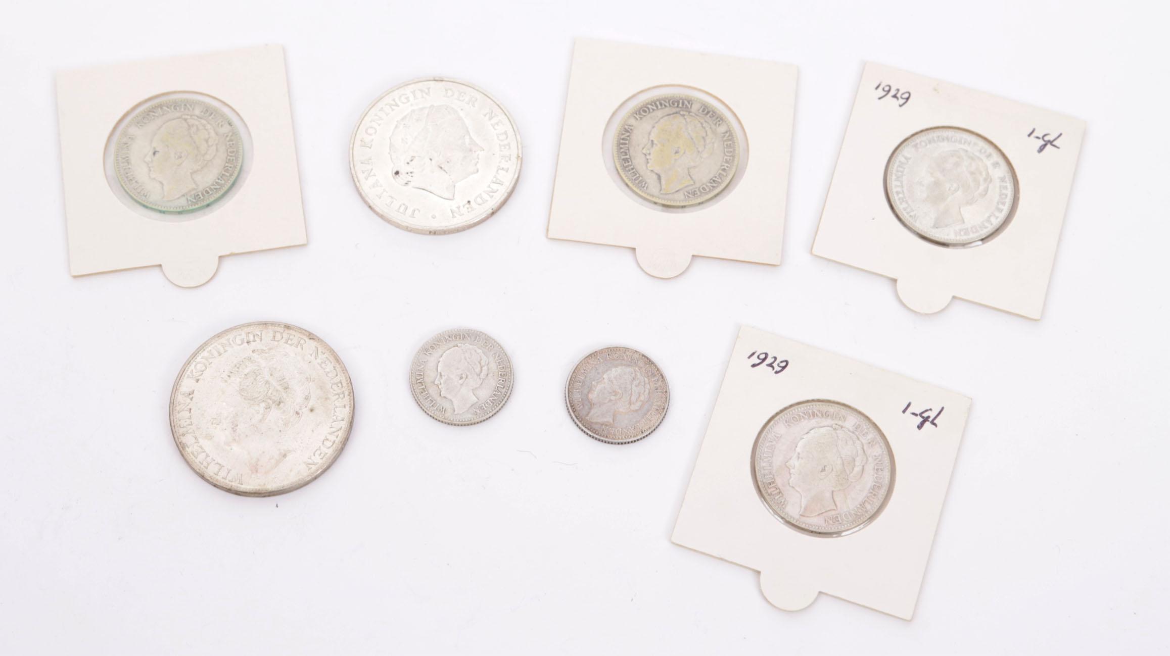 Koop diverse munten: 2 zilveren rijksdaalders, 2 halve guldens en 4 zilveren guldens, Wilhelmina