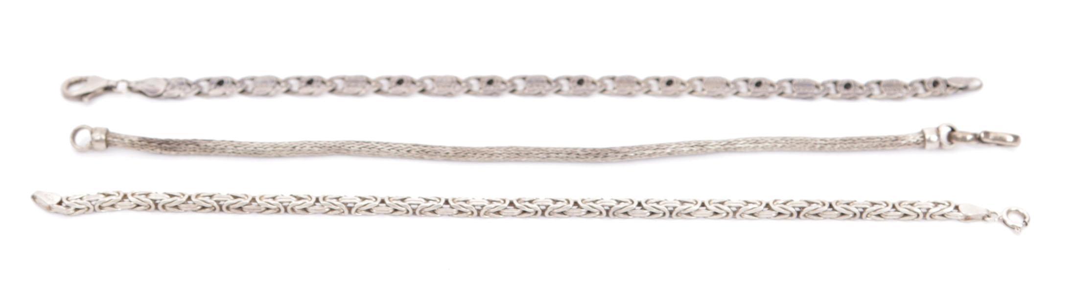 3 Diverse zilveren armbanden, ca.L.20 cm.