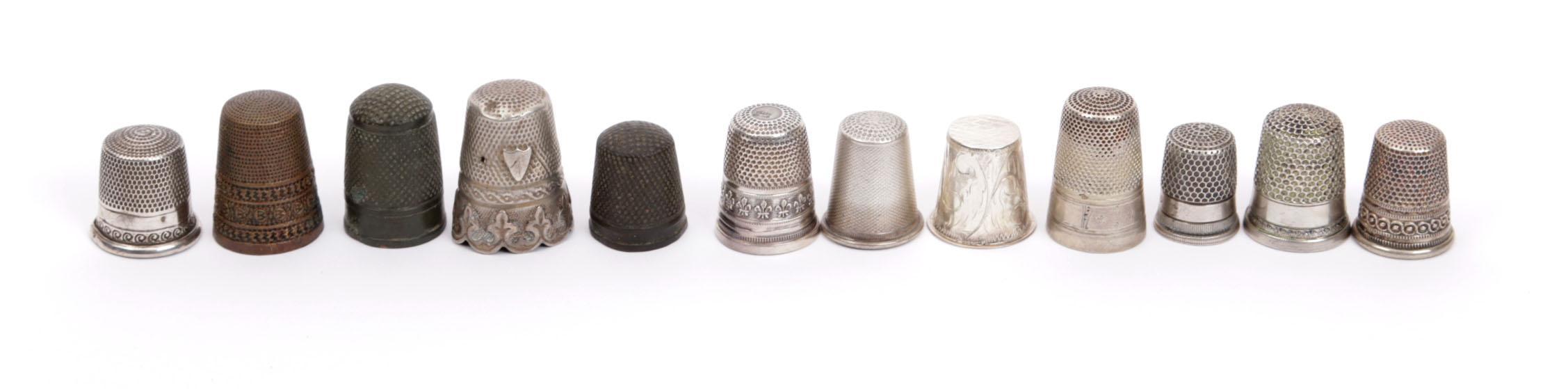 Koopje diverse antieke vingerhoedjes w.o. zilver en brons, 19e eeuw