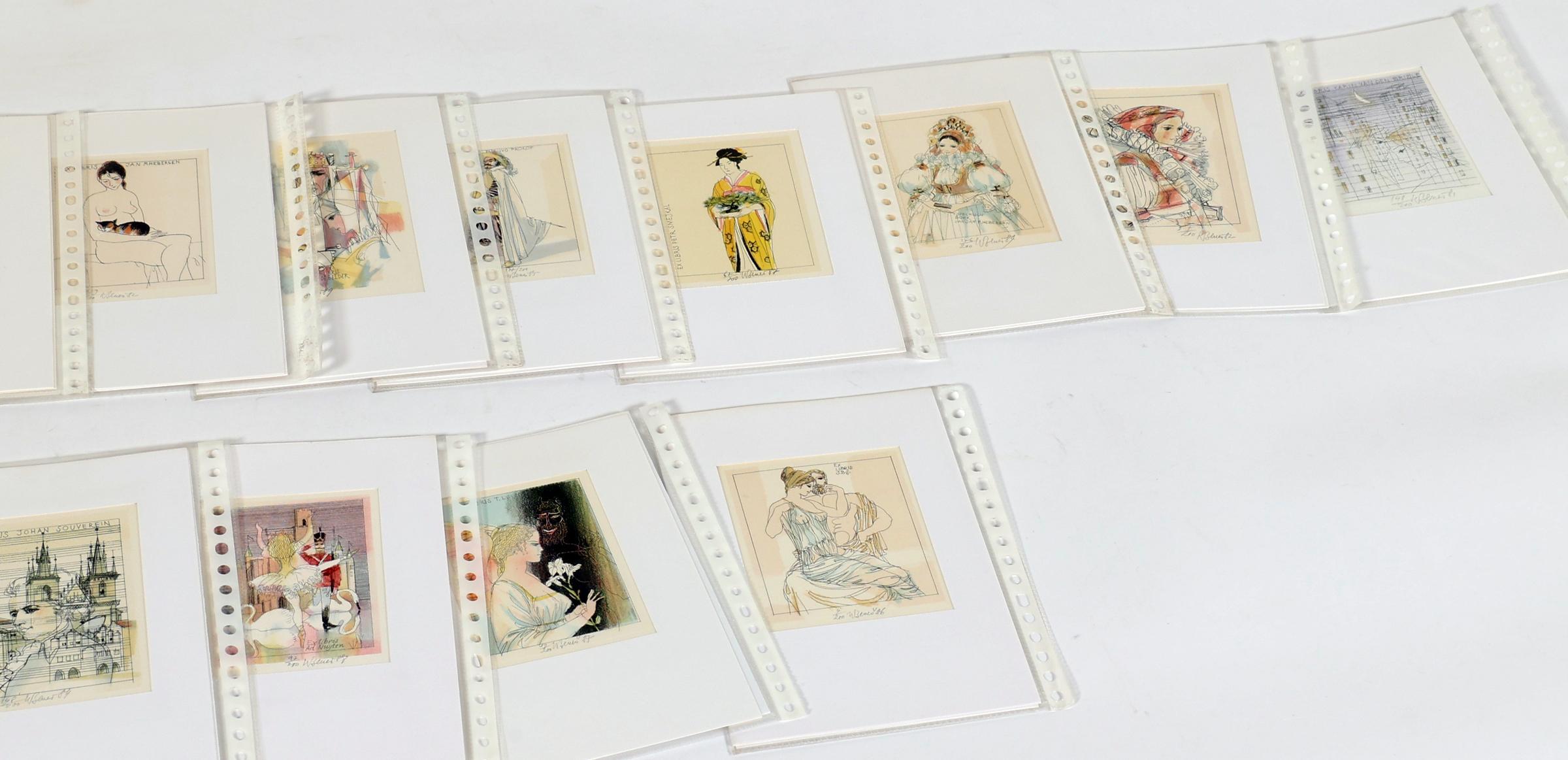 Benes, Karel, plm. 40 exlibris, meerkleuren-litho, alle gesigneerd, in passe-partouts