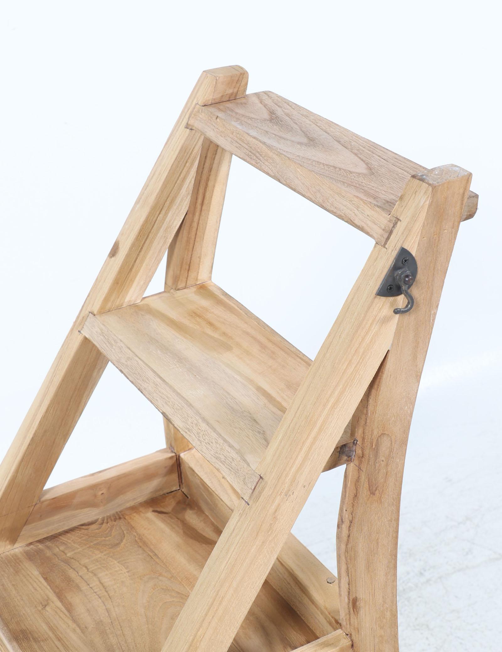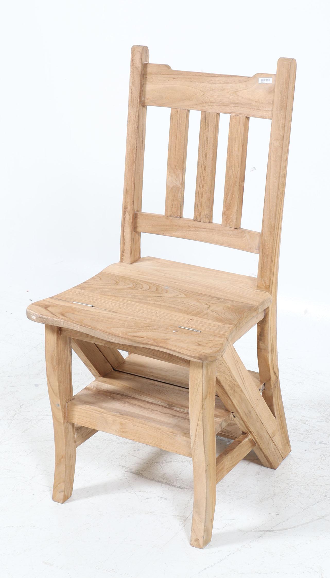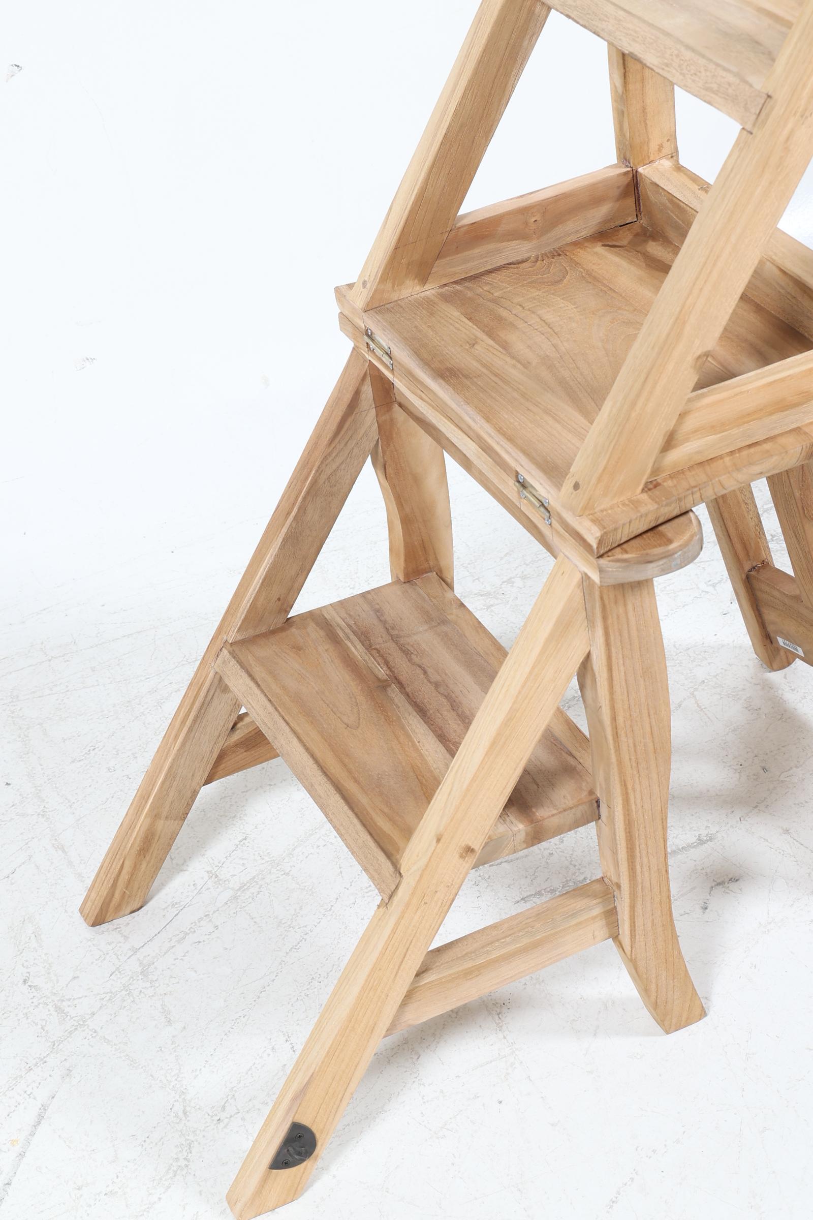 Teakhouten bibliotheek stoel/trapje,