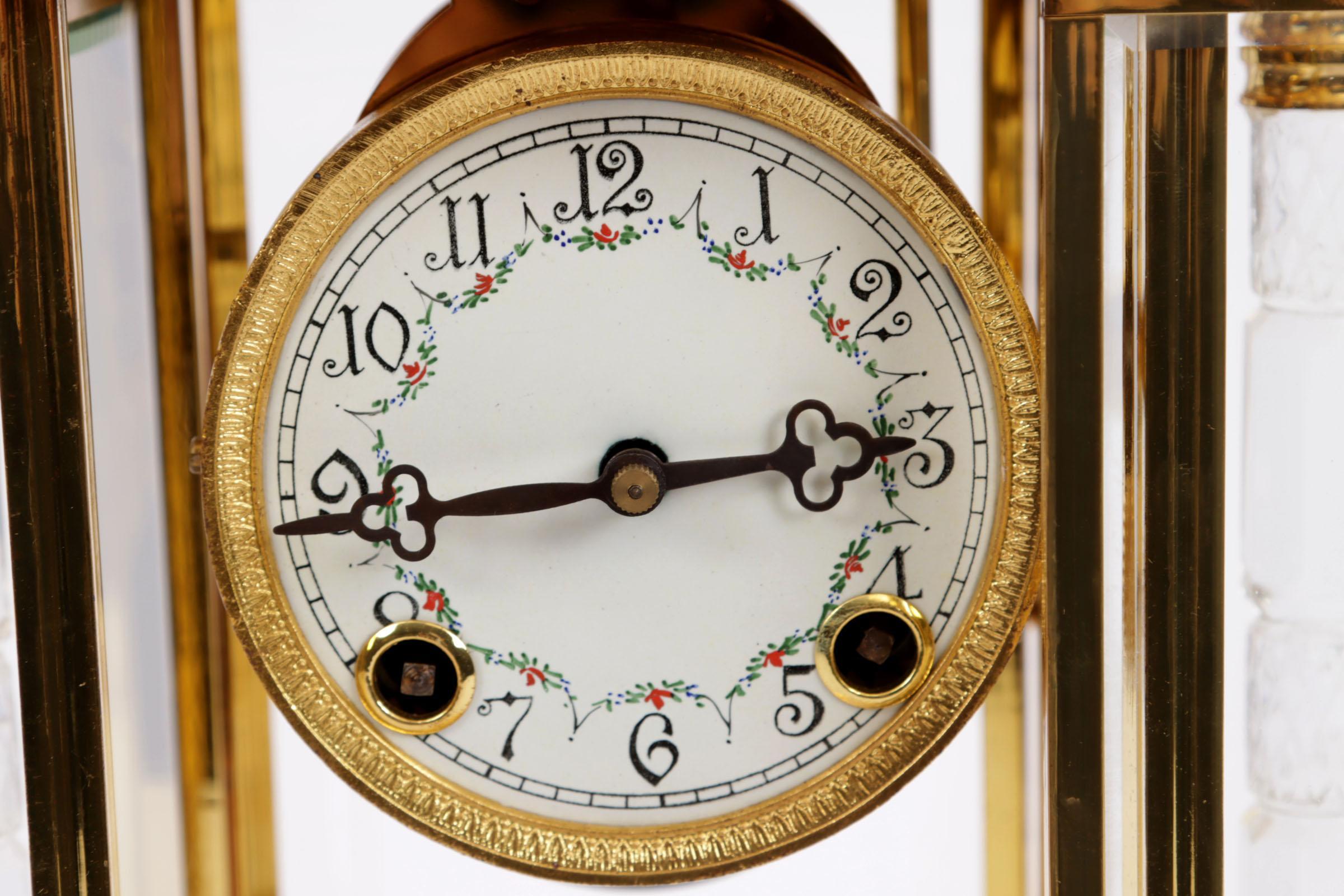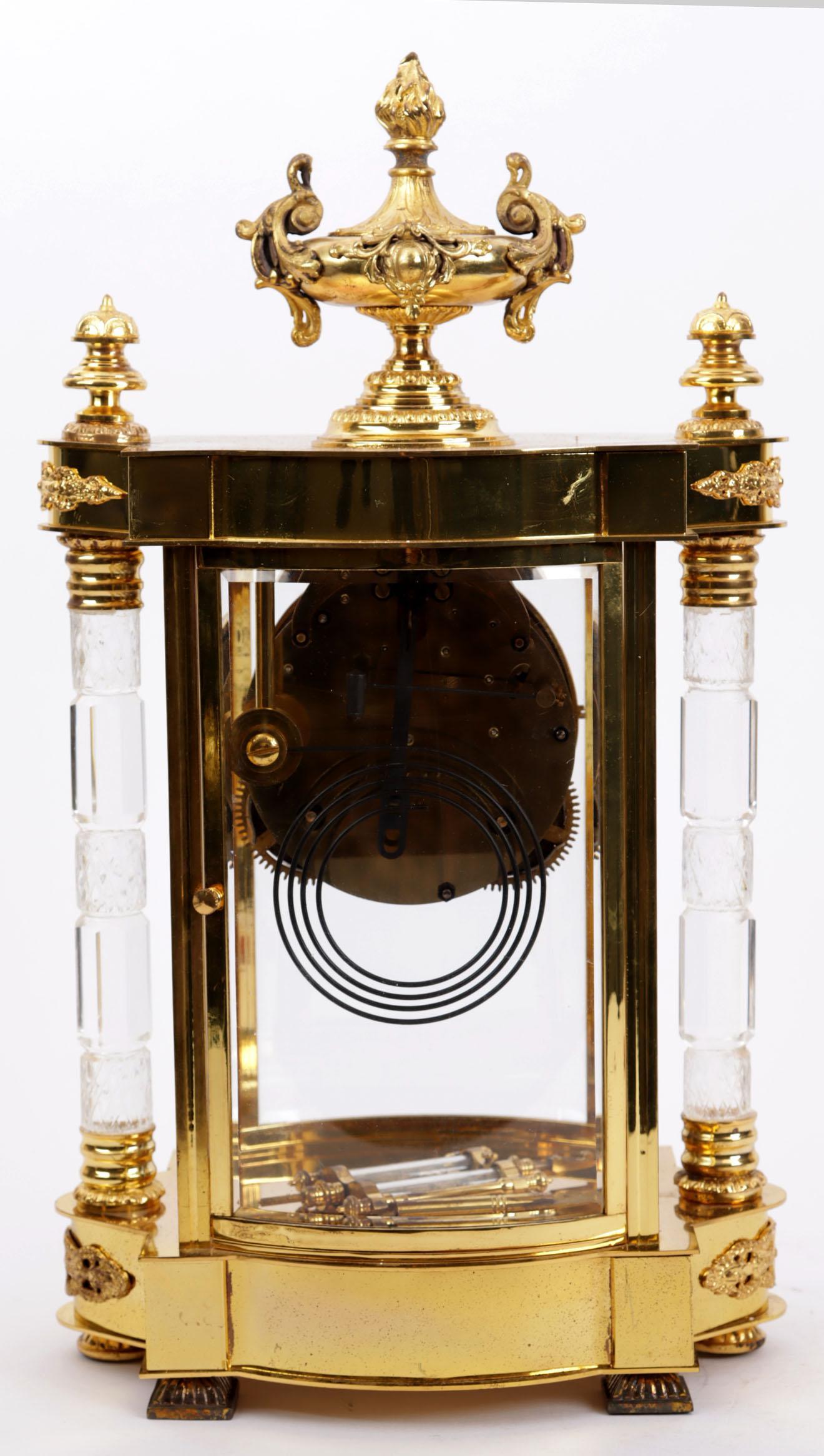 Messing glaspendule in klassieke stijl, h.42 cm.