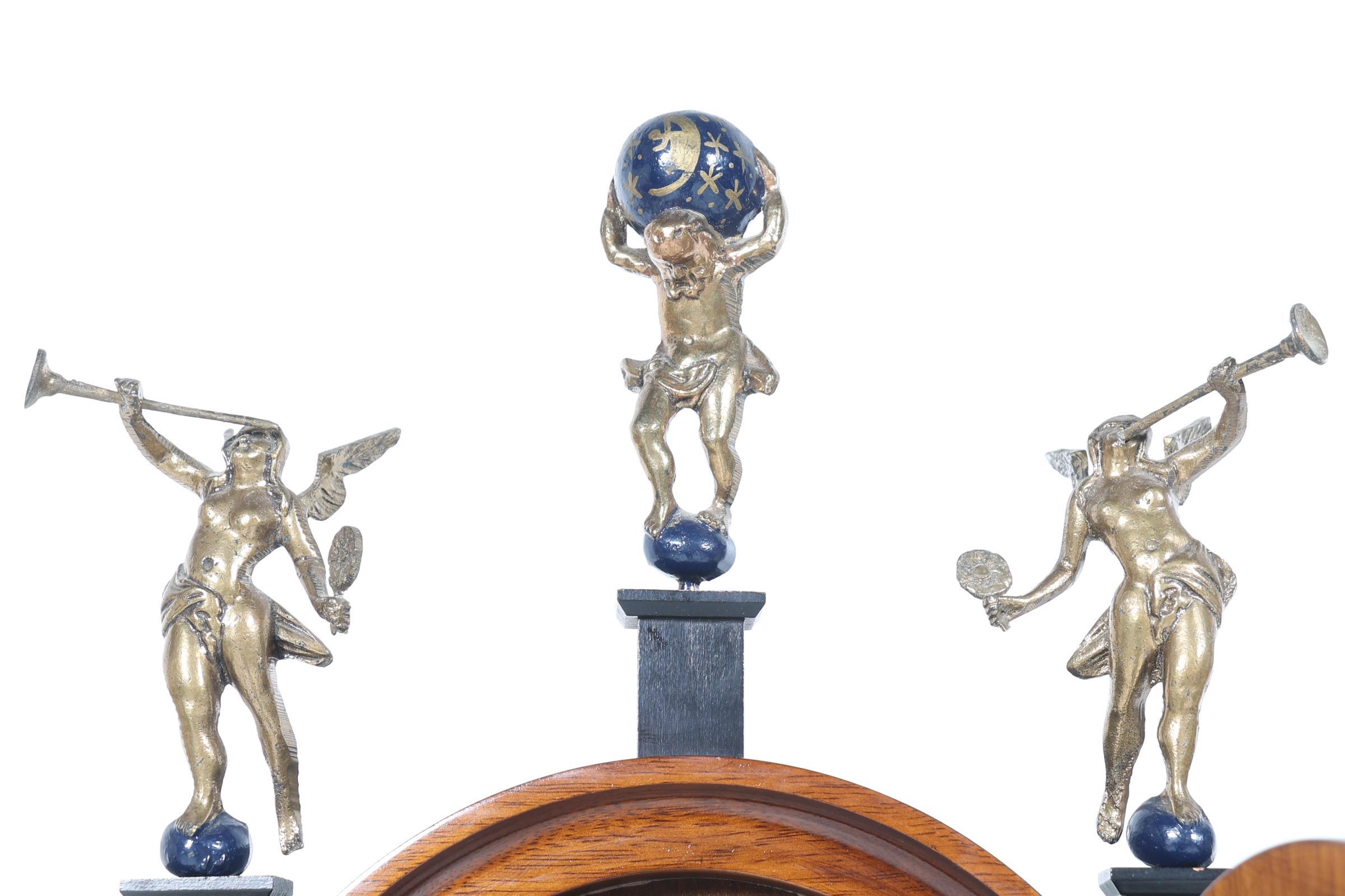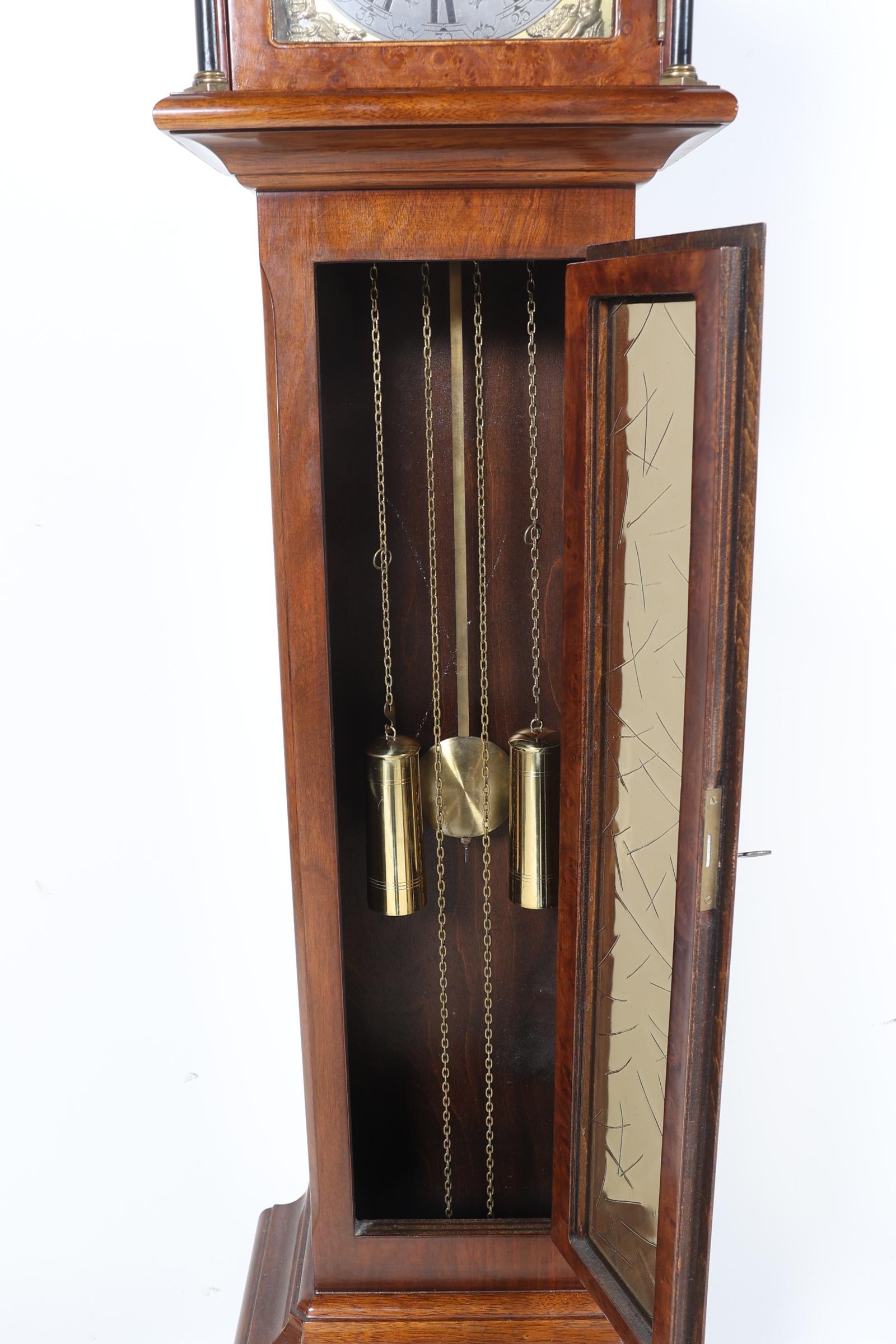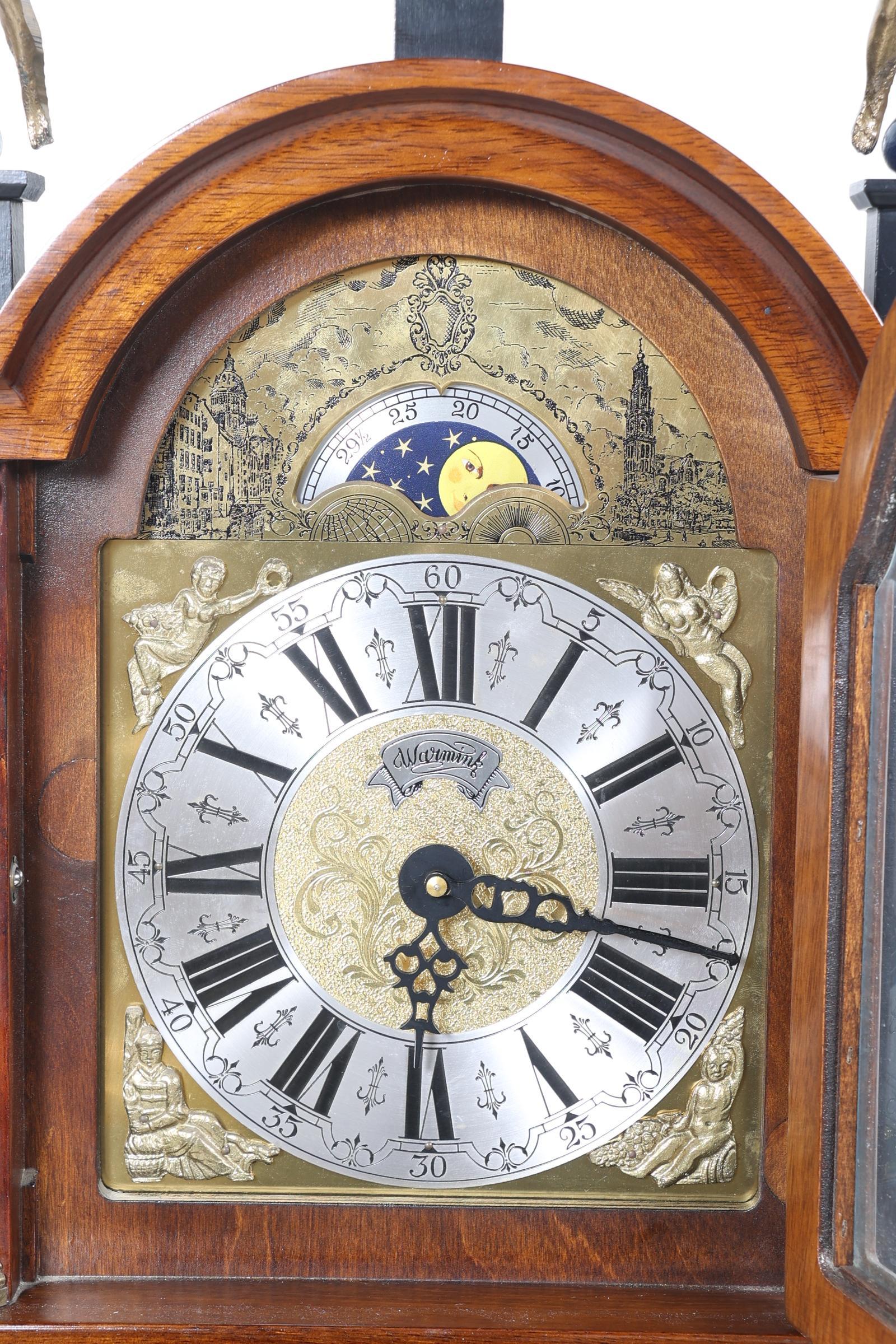 Warmink, klein staand horloge in wortelnotenhouten kast, h.196 cm.