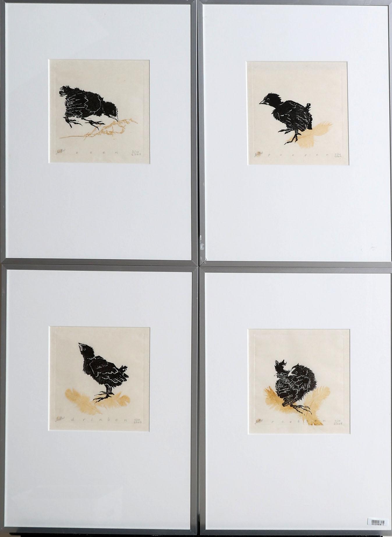Marjolein Terwindt, Vogels, 4 diverse etsen, gedateerd 2006, oplage van 10