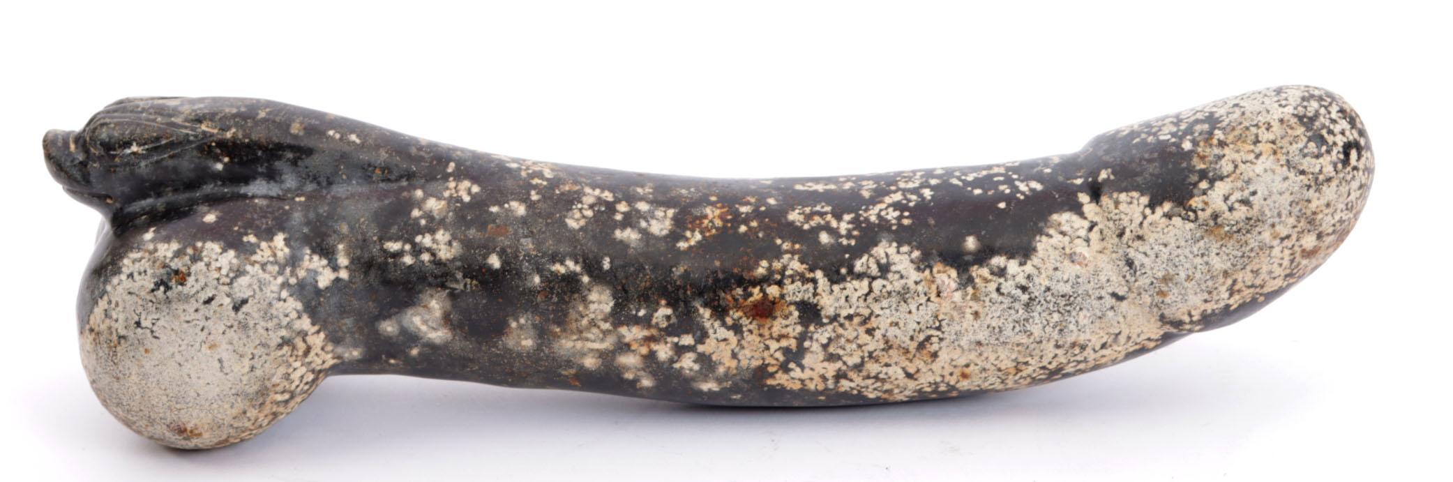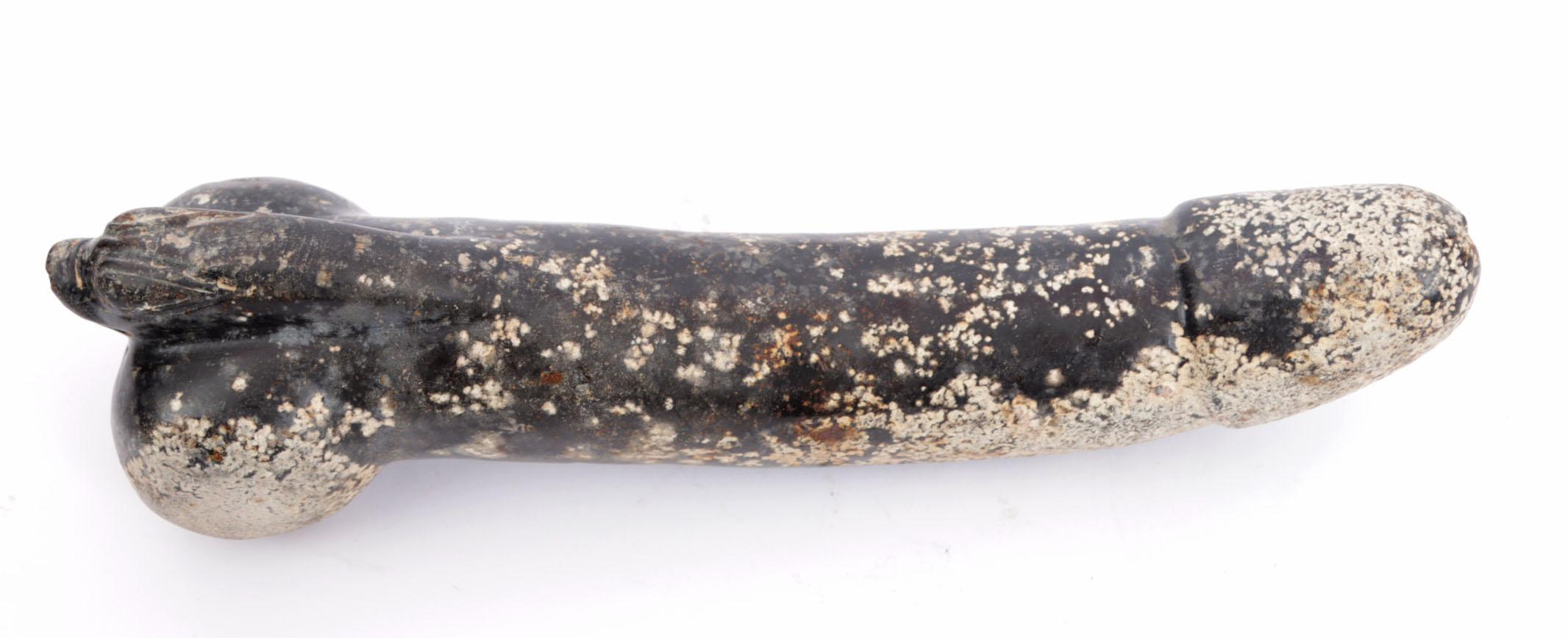 Hardstenen sculptuur, Fallus, L.30 cm.