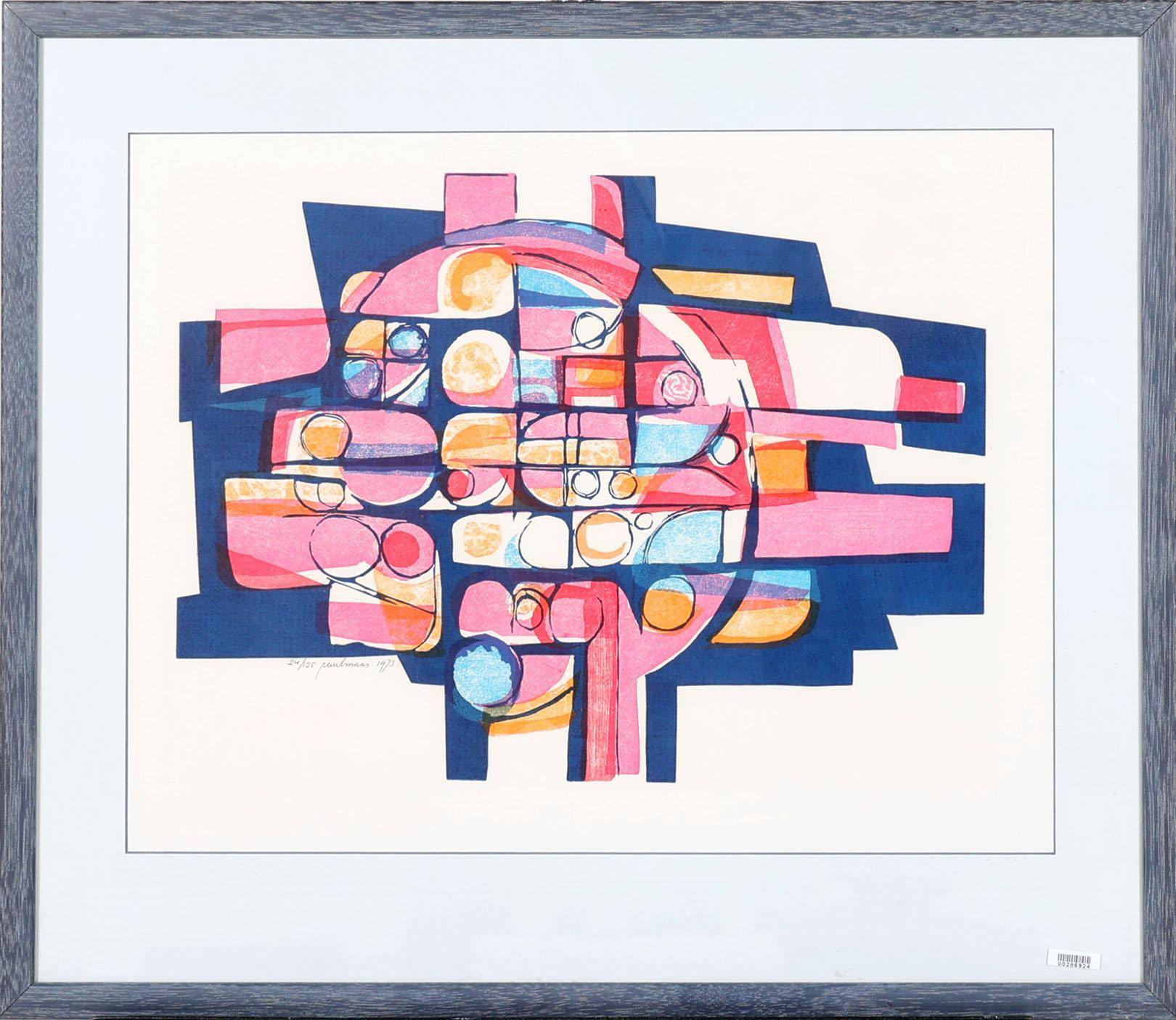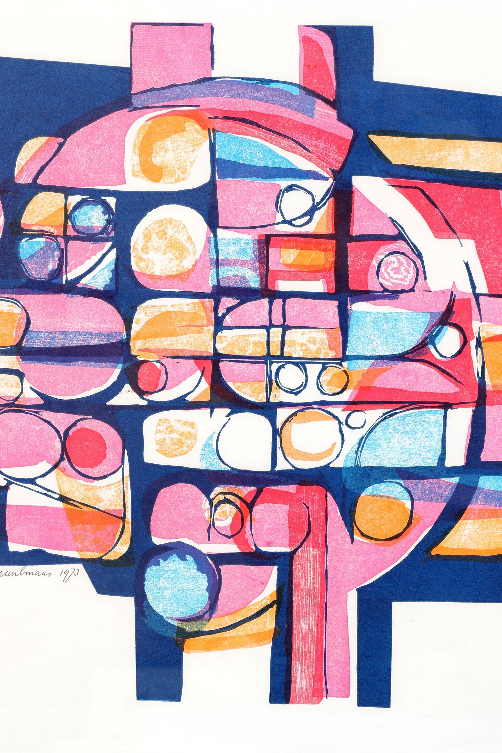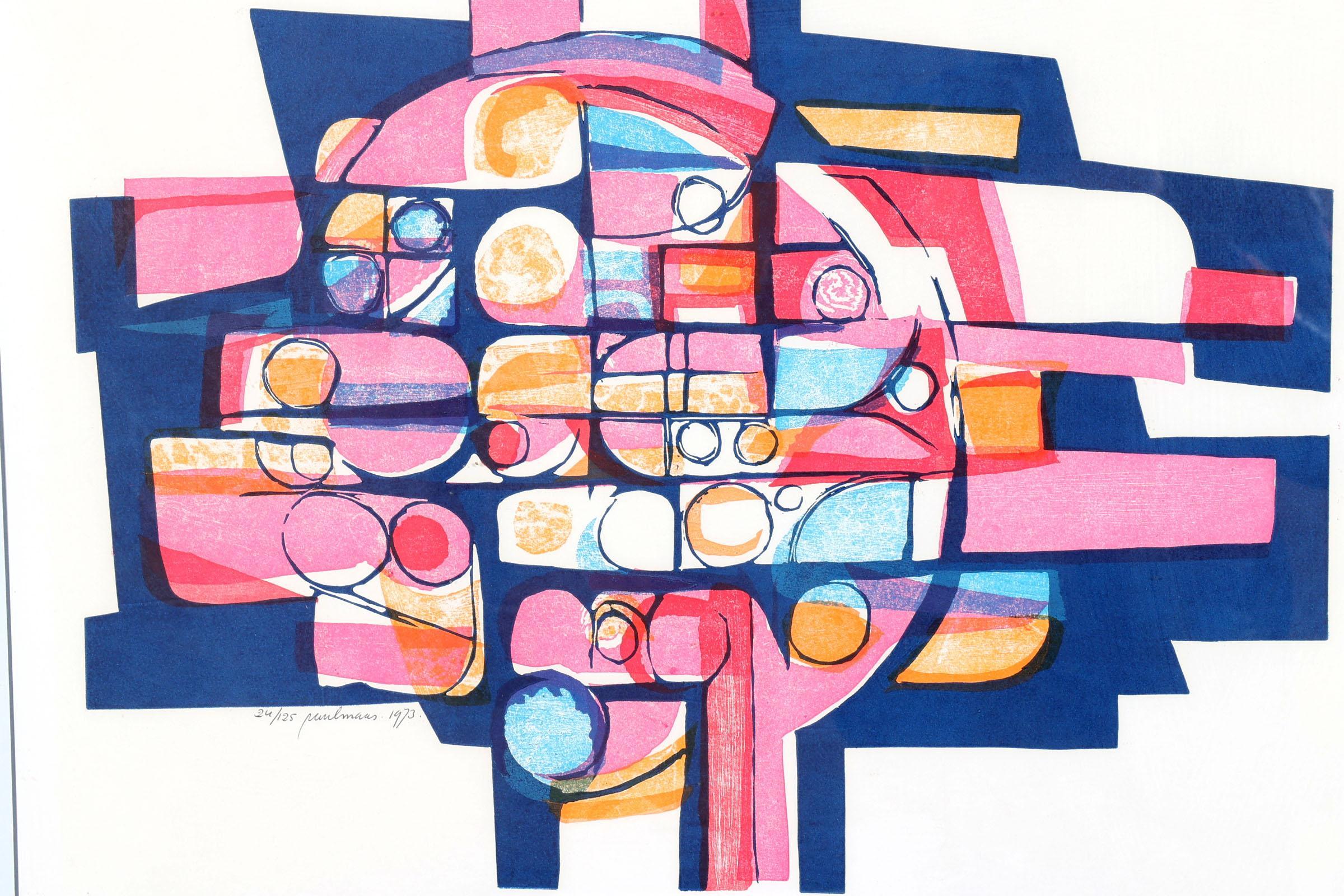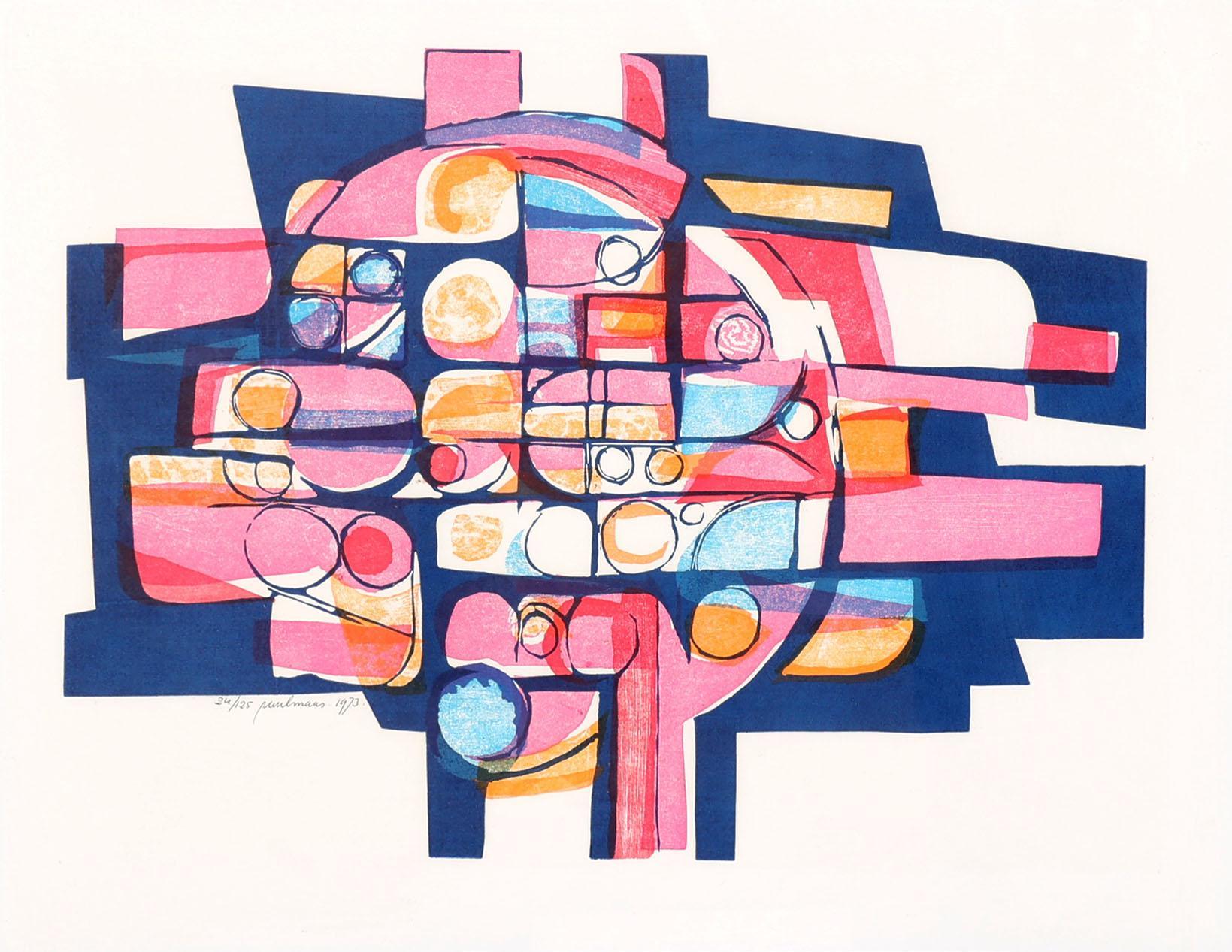 Paul Maas (1936), Abstract, houtlinosnede, nr.24/125, gedateerd 1973, 58 x 45 cm.
