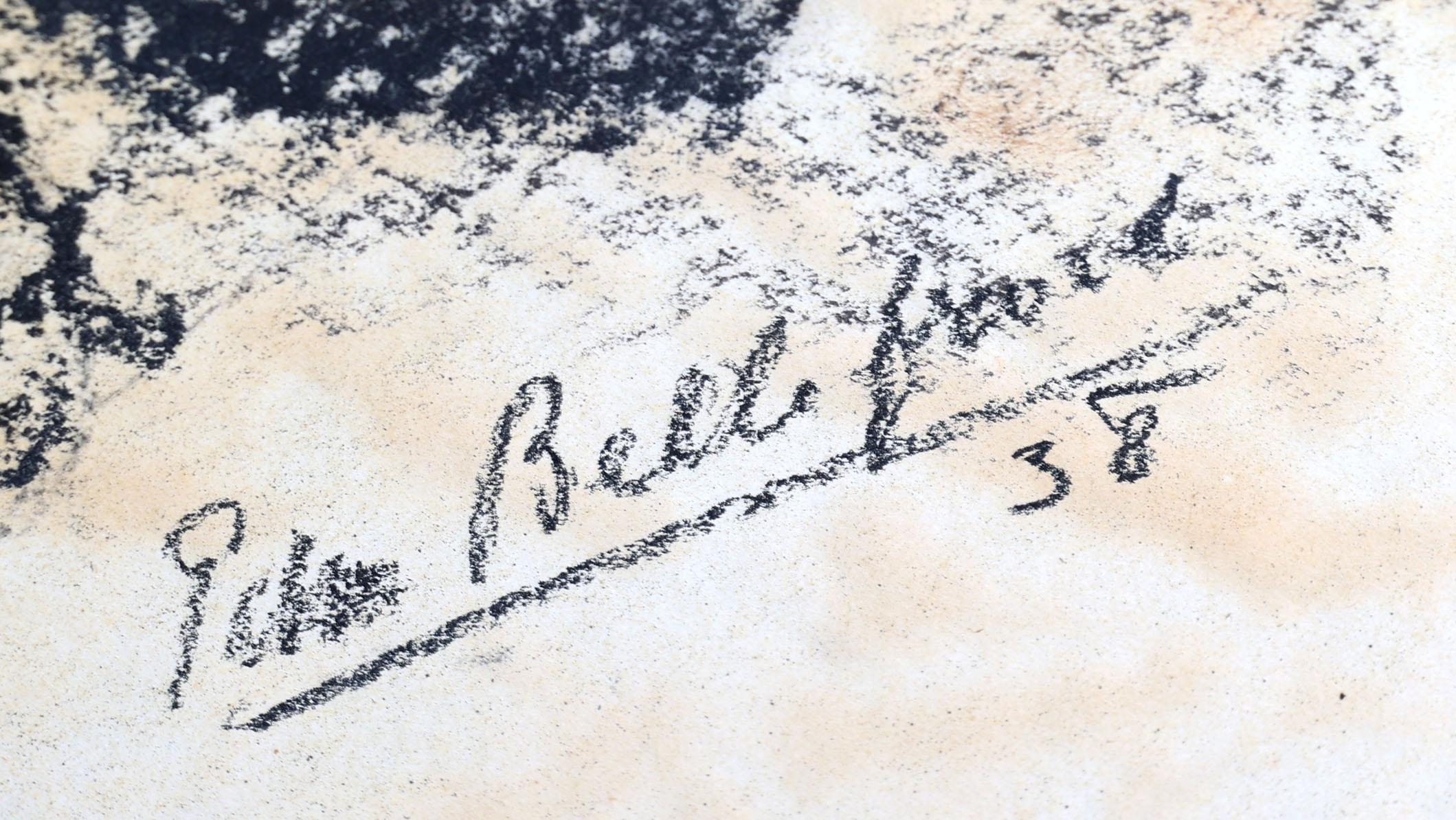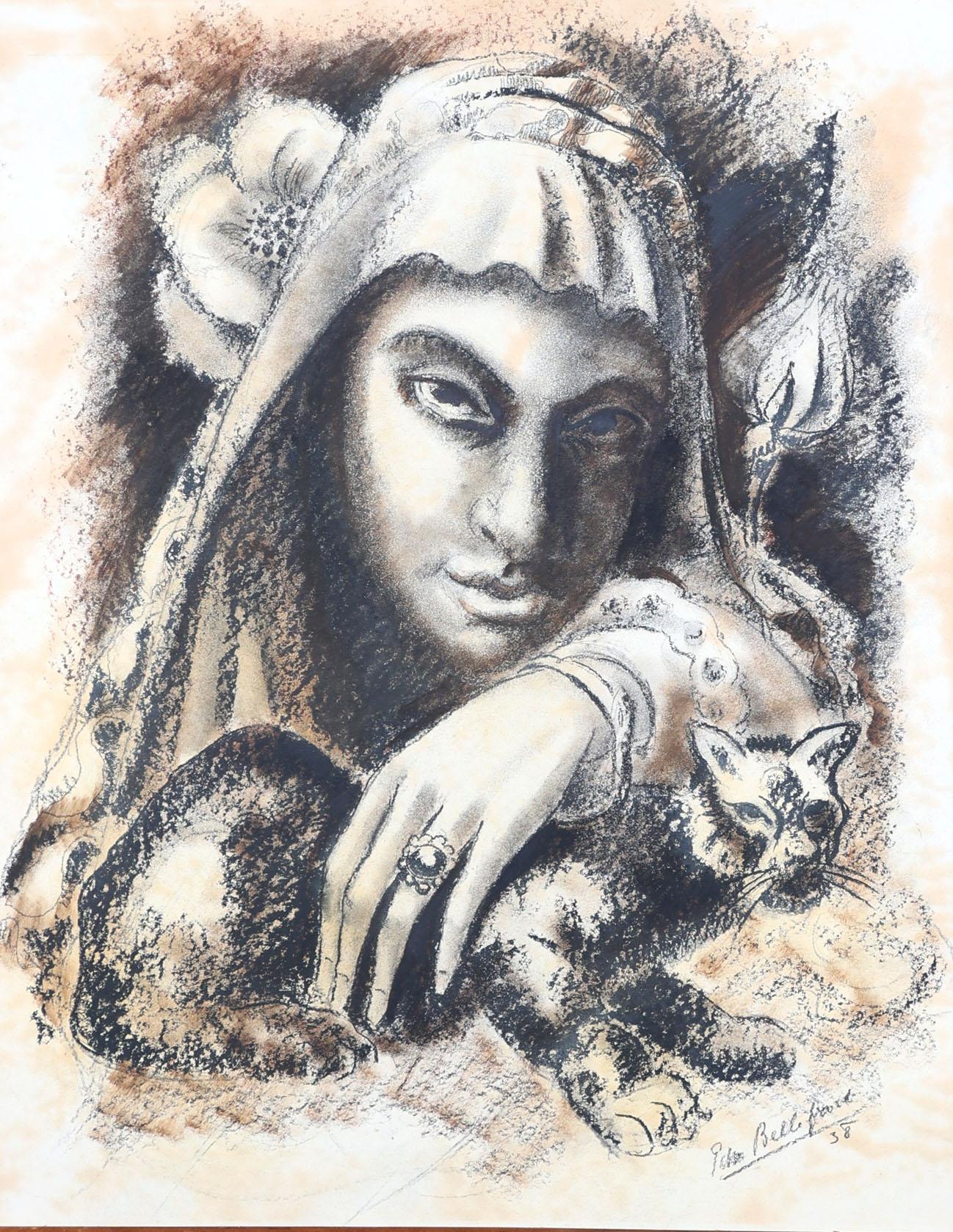 Edmond Belevoort, Vrouw met kat, lithografie, gedateerd 1938, 62 x 49 cm.