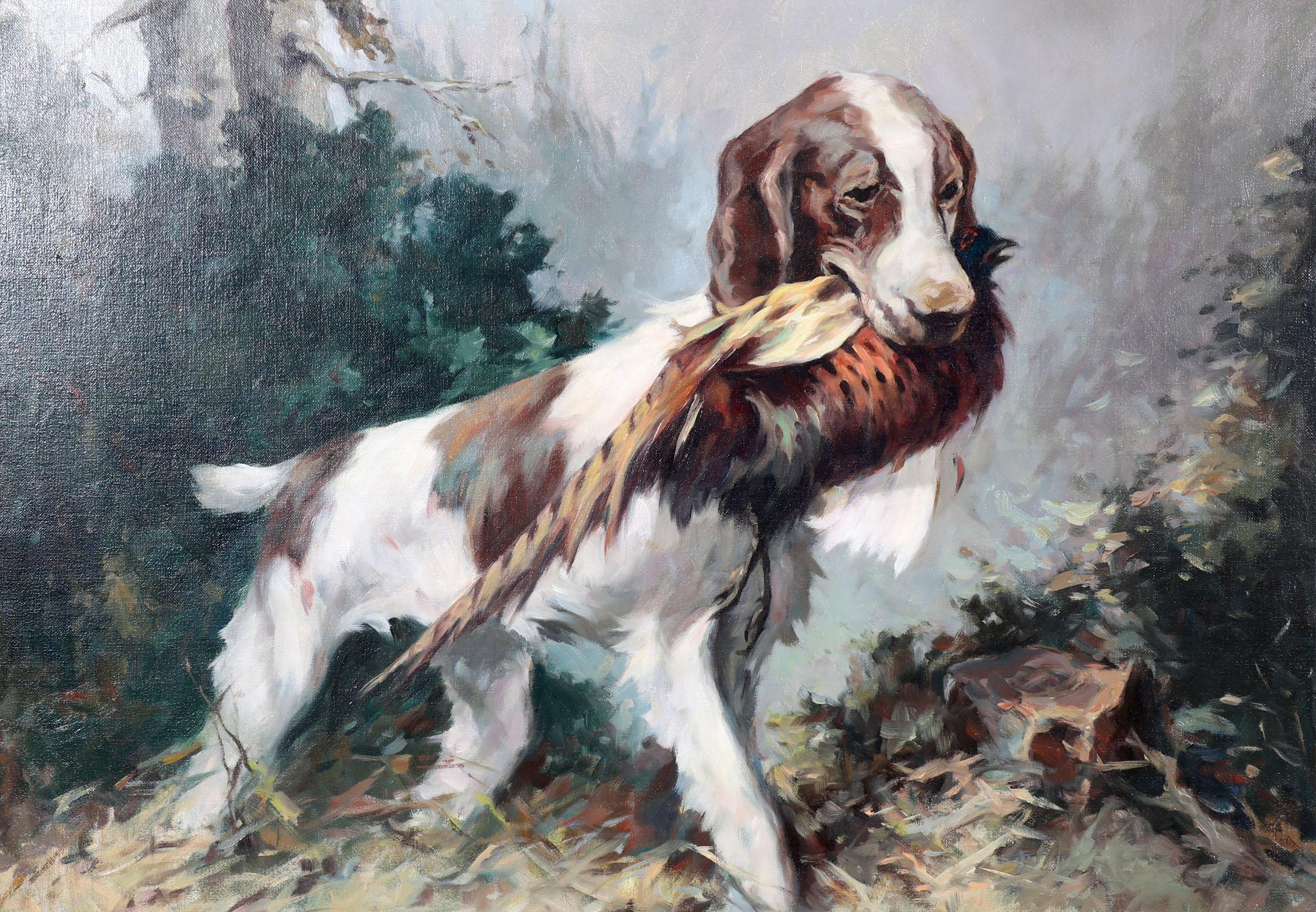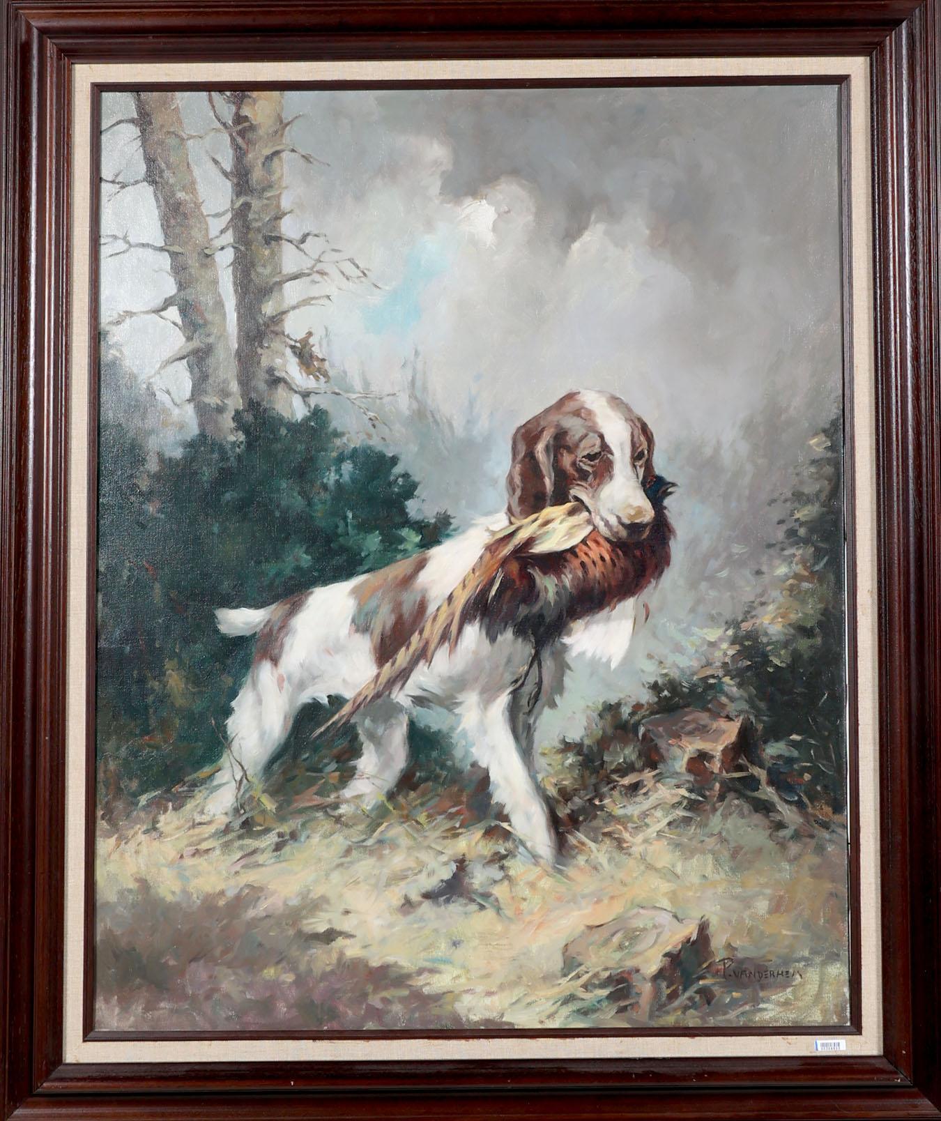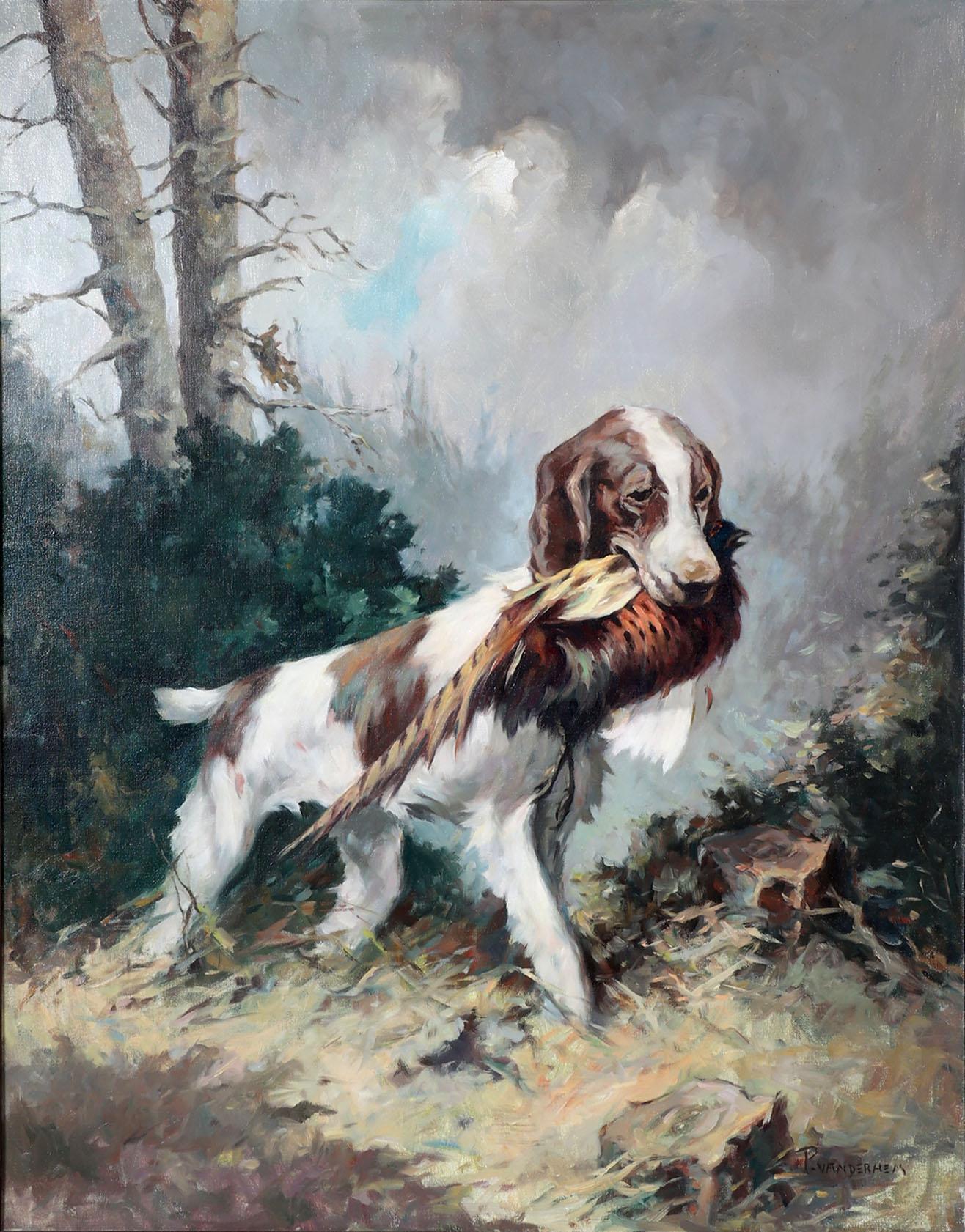 Piet van der Hem (1885-1961), Jachthond met fazant in landschap, olieverf op doek, 100 x 80 cm., provenance particuliere collectie