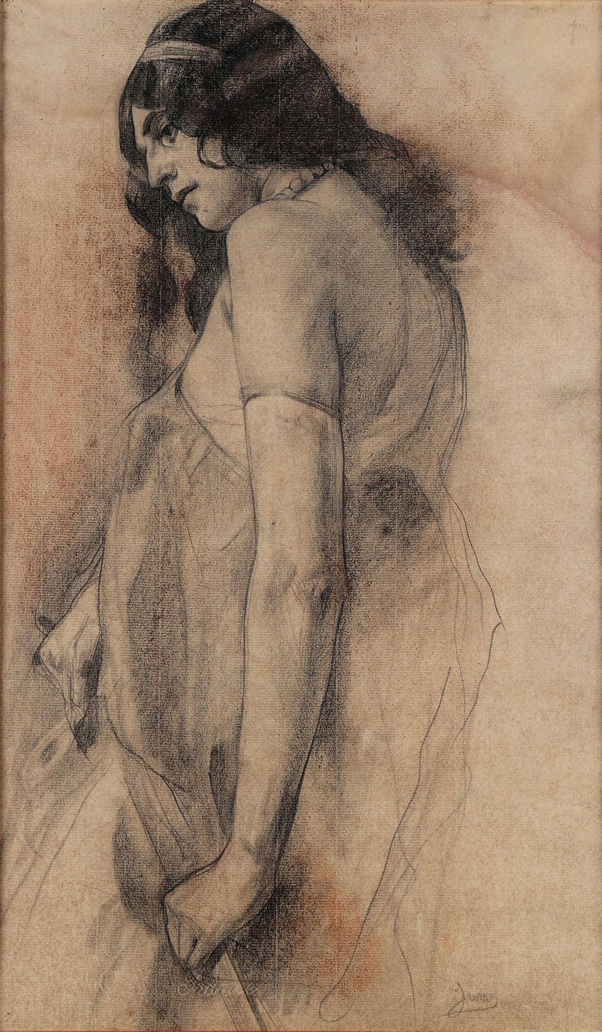 J.H. Jurres, Dame, tekening, 46 x 28 cm.