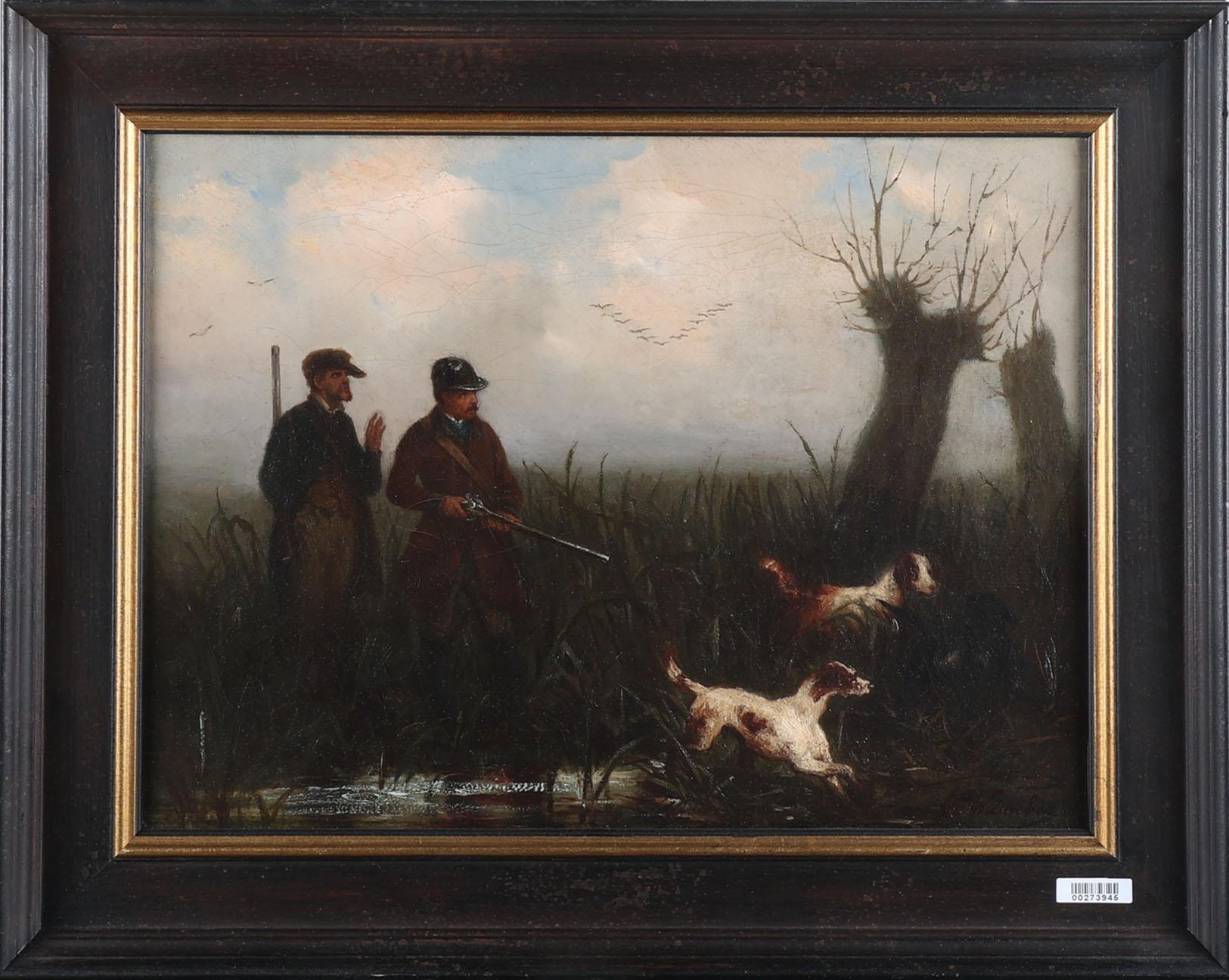 F.W. Zucher, Jachtvoorstelling, olieverf op doek, 40 x 30 cm.