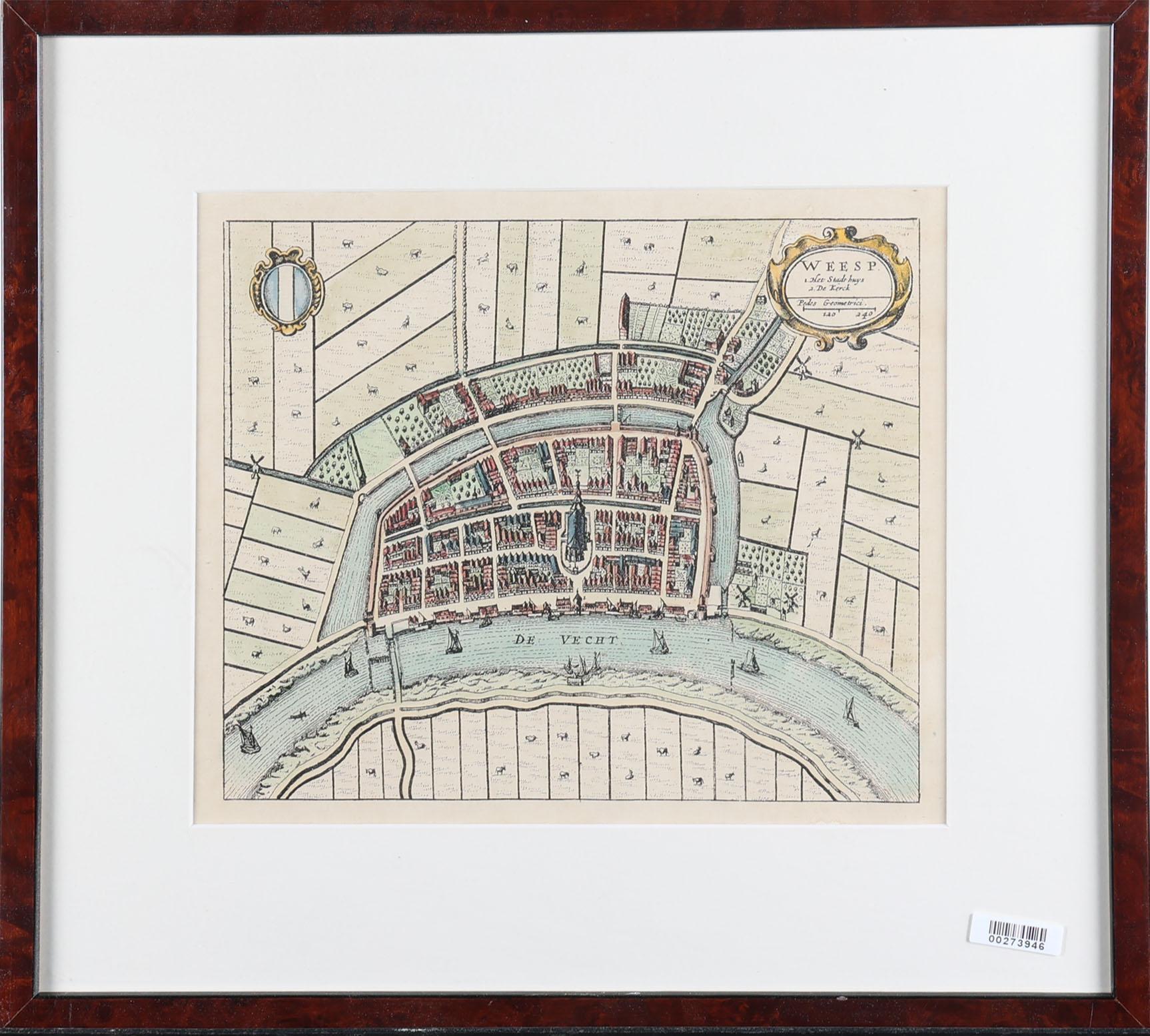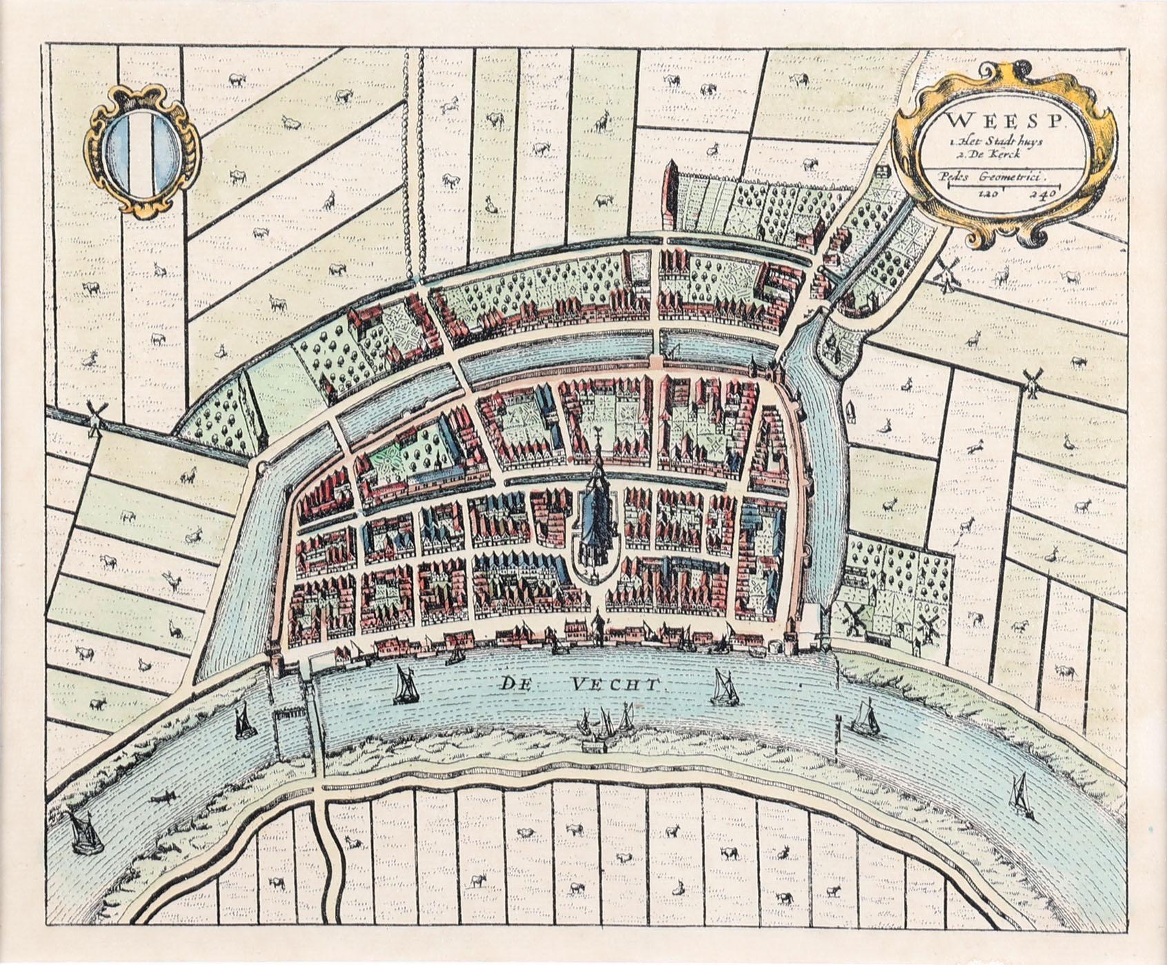 Ingekleurde kaart van Weesp, 27 x 22 cm.