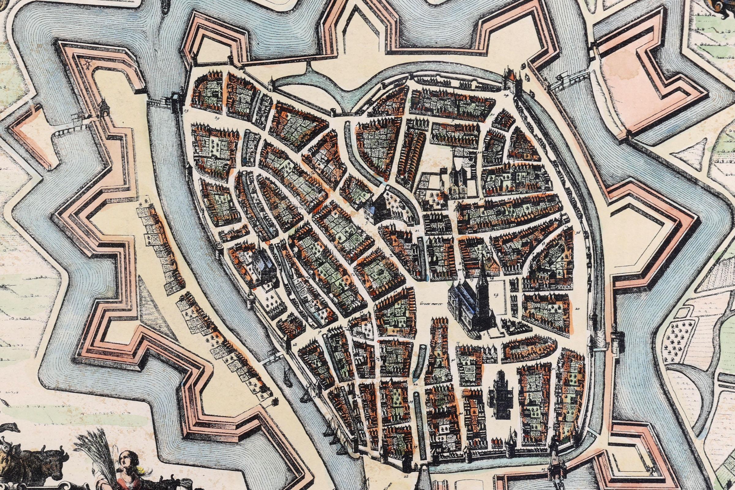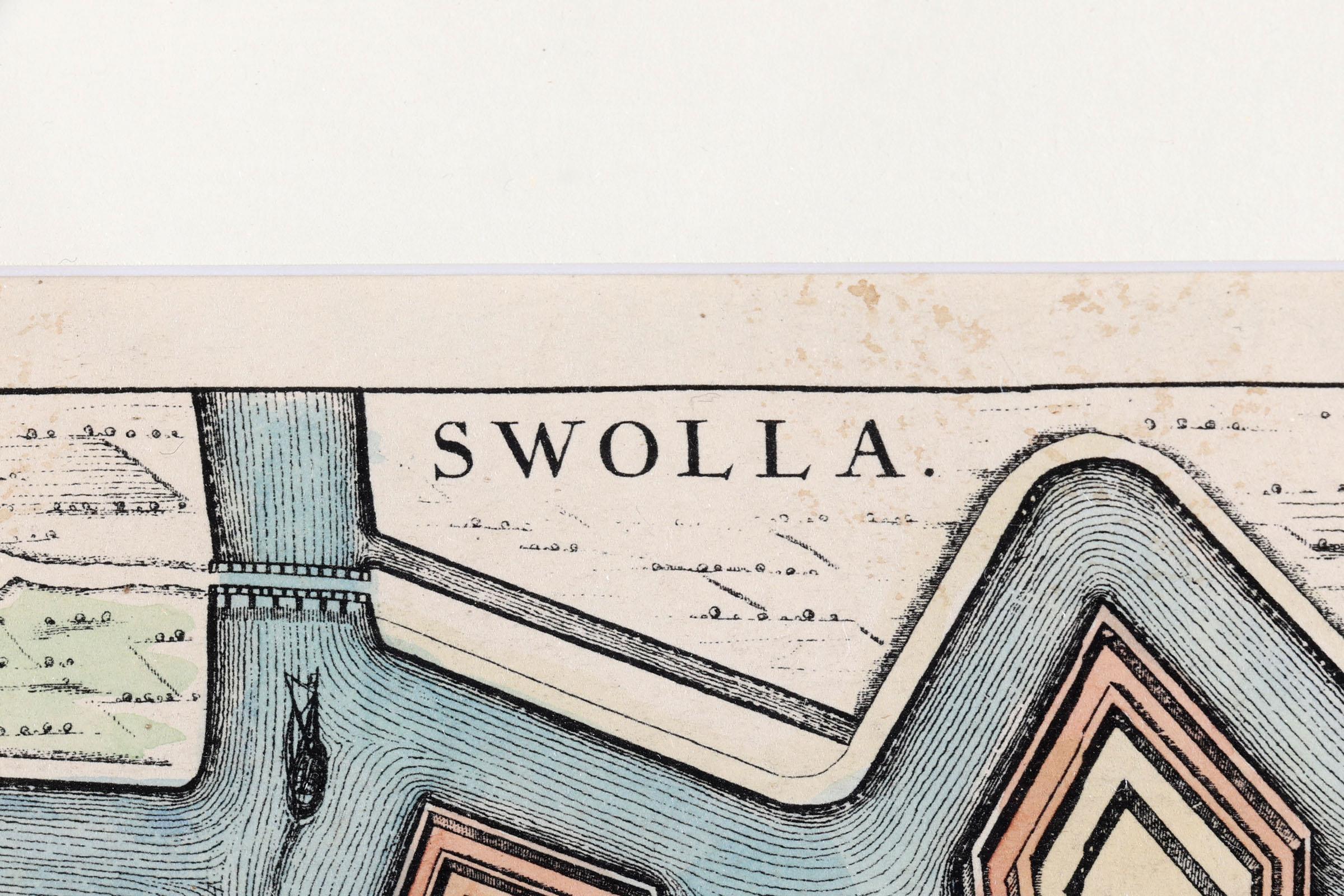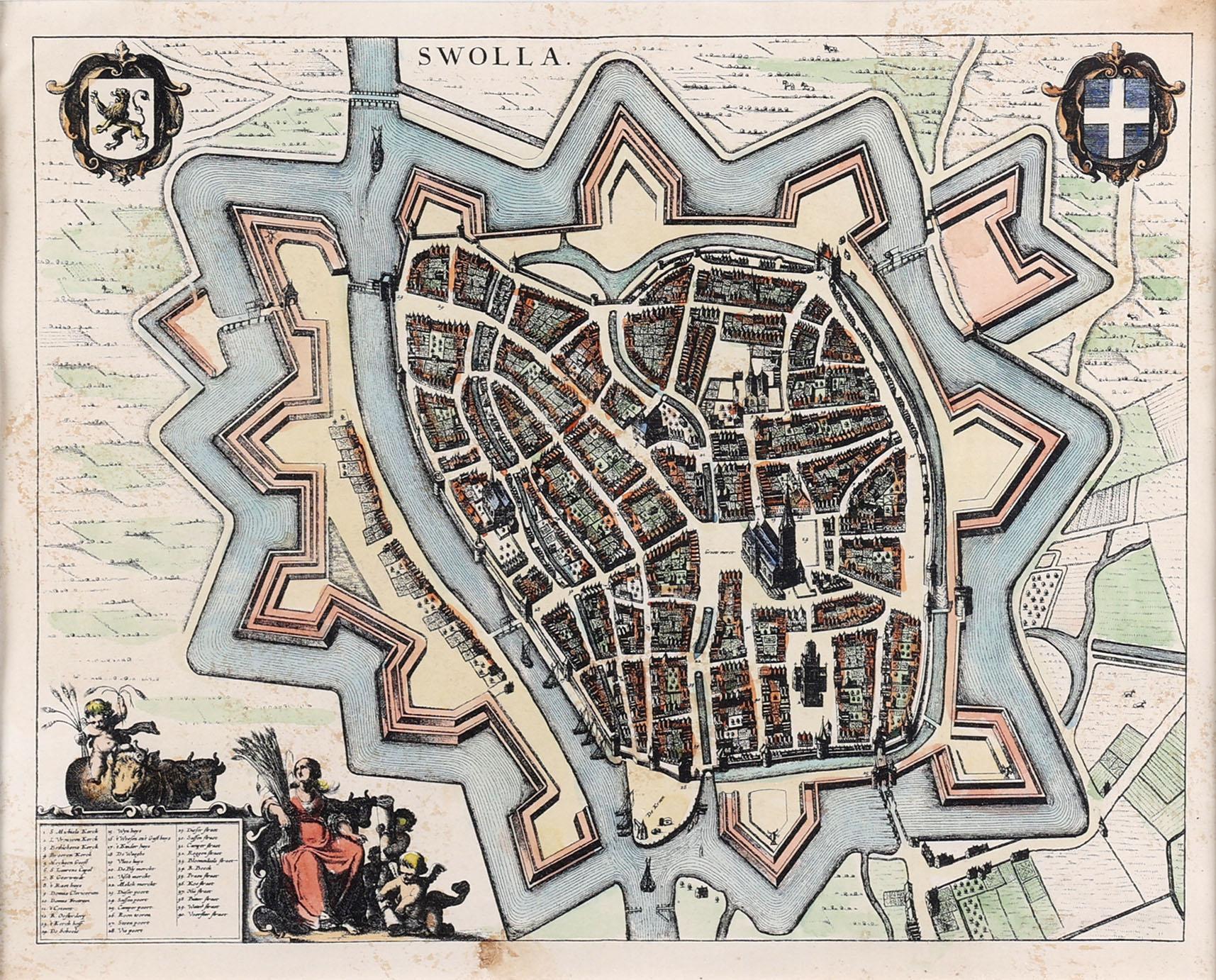Ingekleurde kaart van Zwolle, 27 x 21 cm.