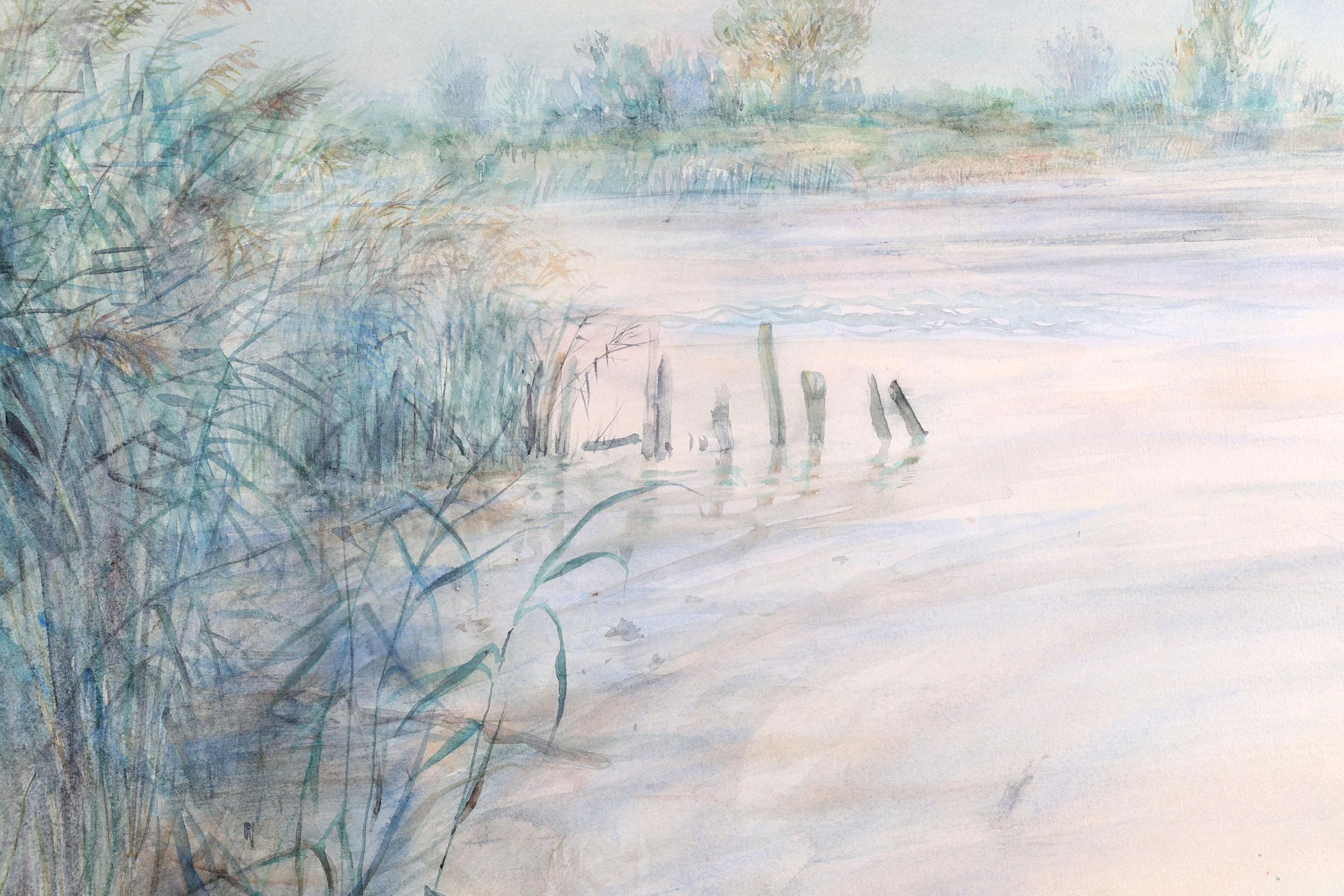 Piet Klaasse, Plassengezicht, aquarel, 63 x 45 cm.