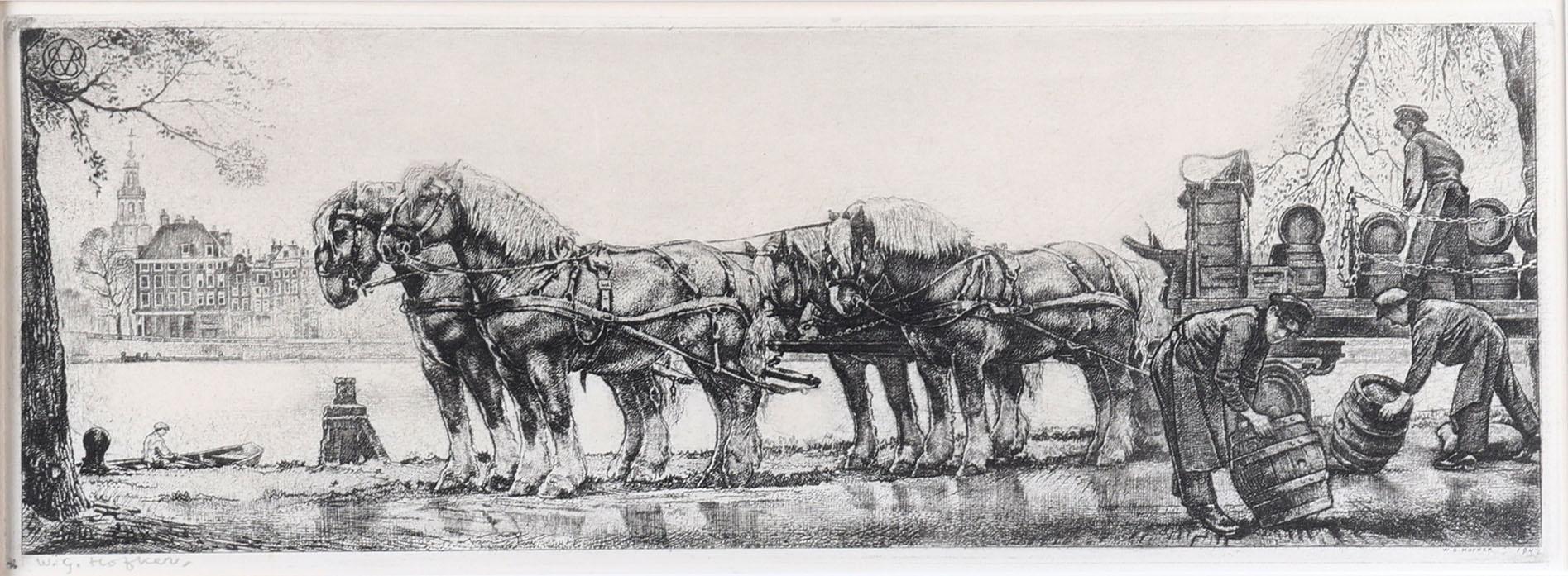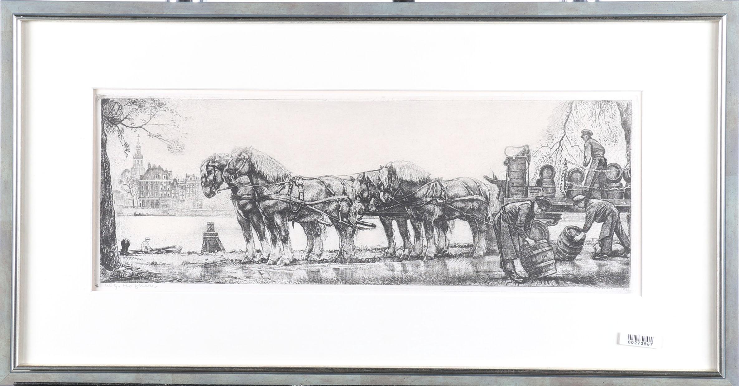 W.G. Hofker, ets, gedateerd 1942, 44 x 16 cm.