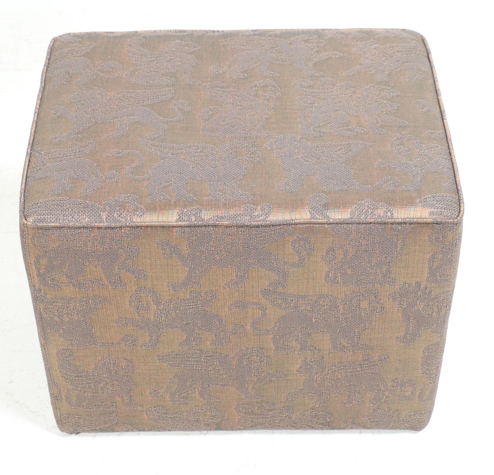 Armfauteuil met bijpassende voetenbank en de stof met decor van Griffioenen