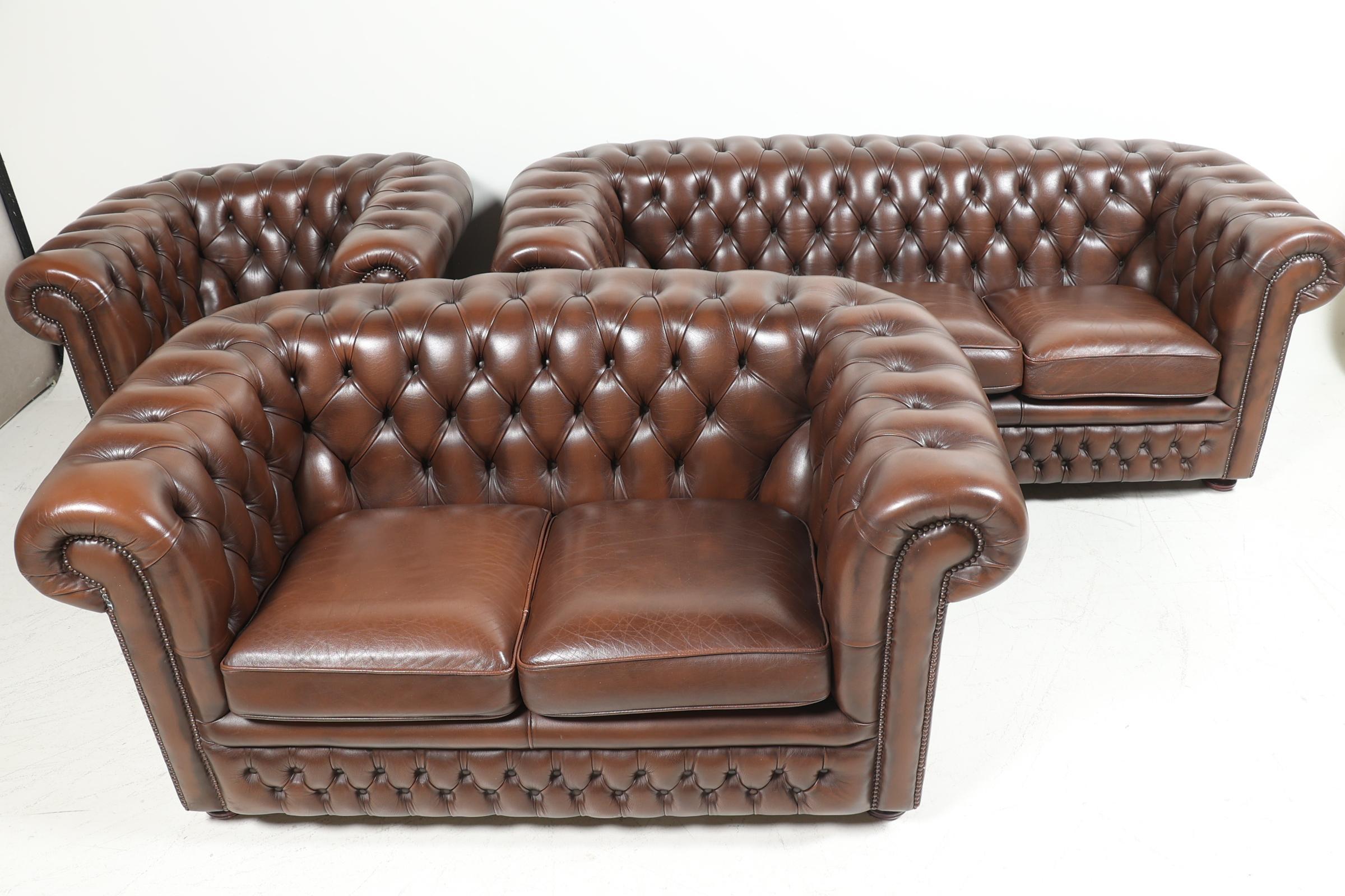 3-delig bruin leder gecapitonneerd Springvale bankstel