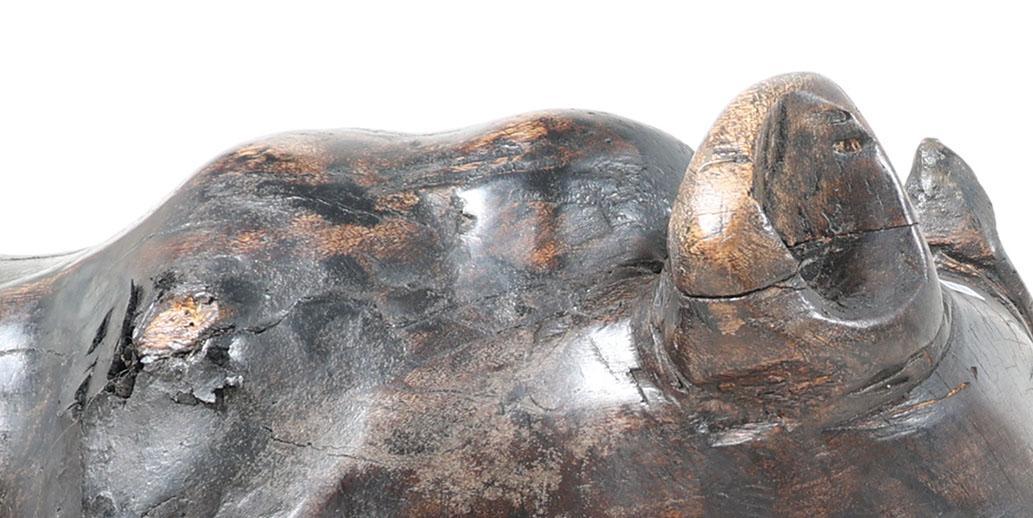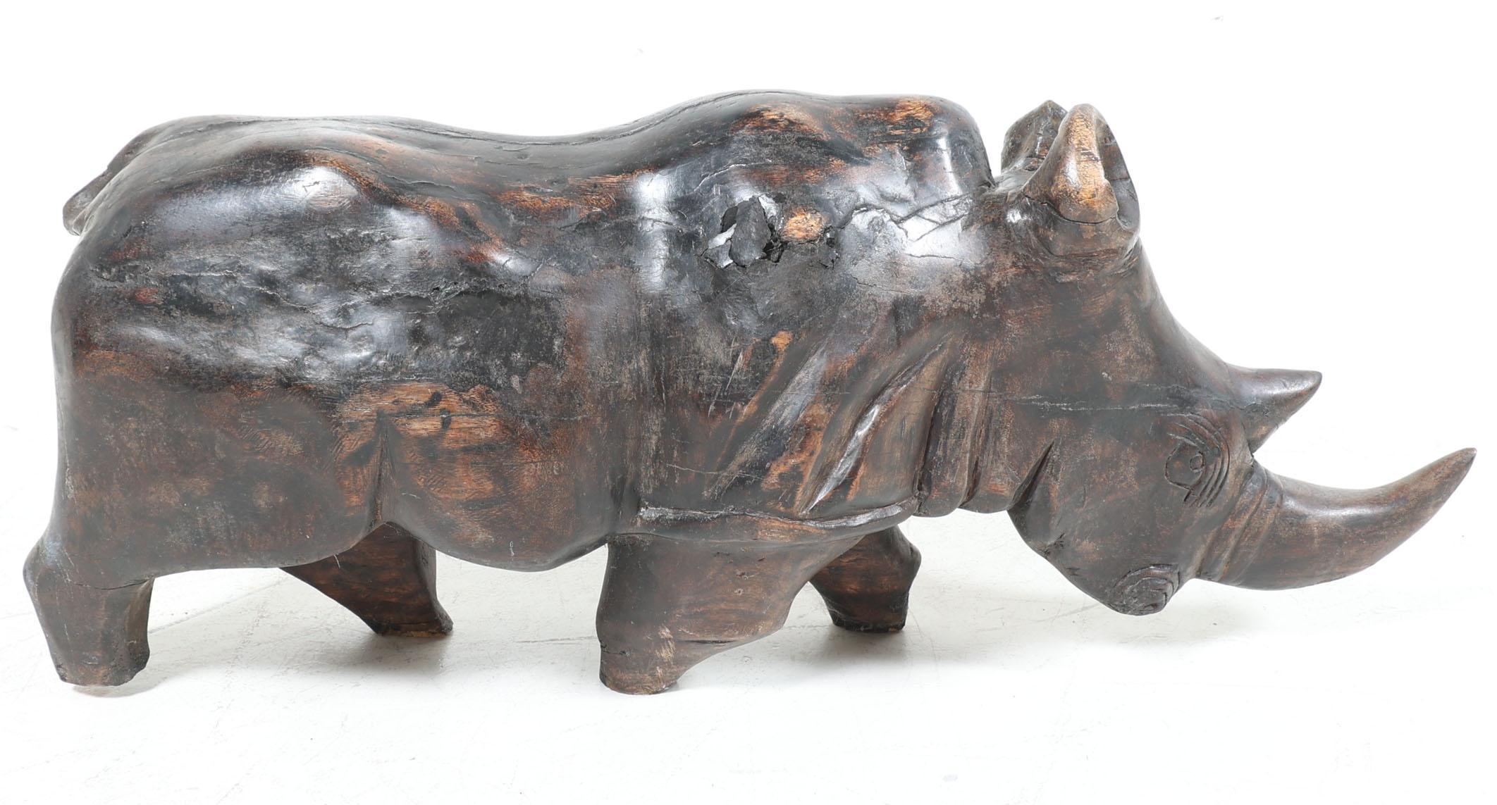 Houten sculptuur van een neushoorn, h.52 x l.125 x b.33 cm.