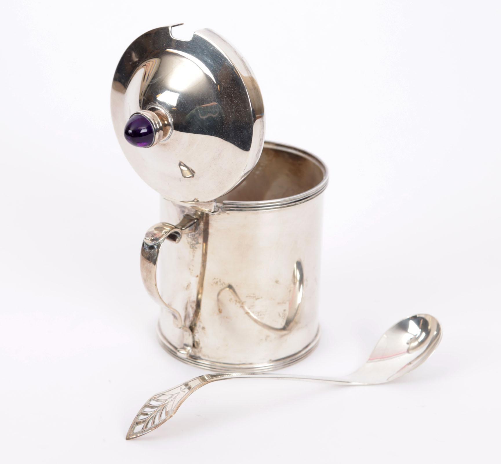 1e Gehalte zilveren jampot met lepel, totaal 323 gram