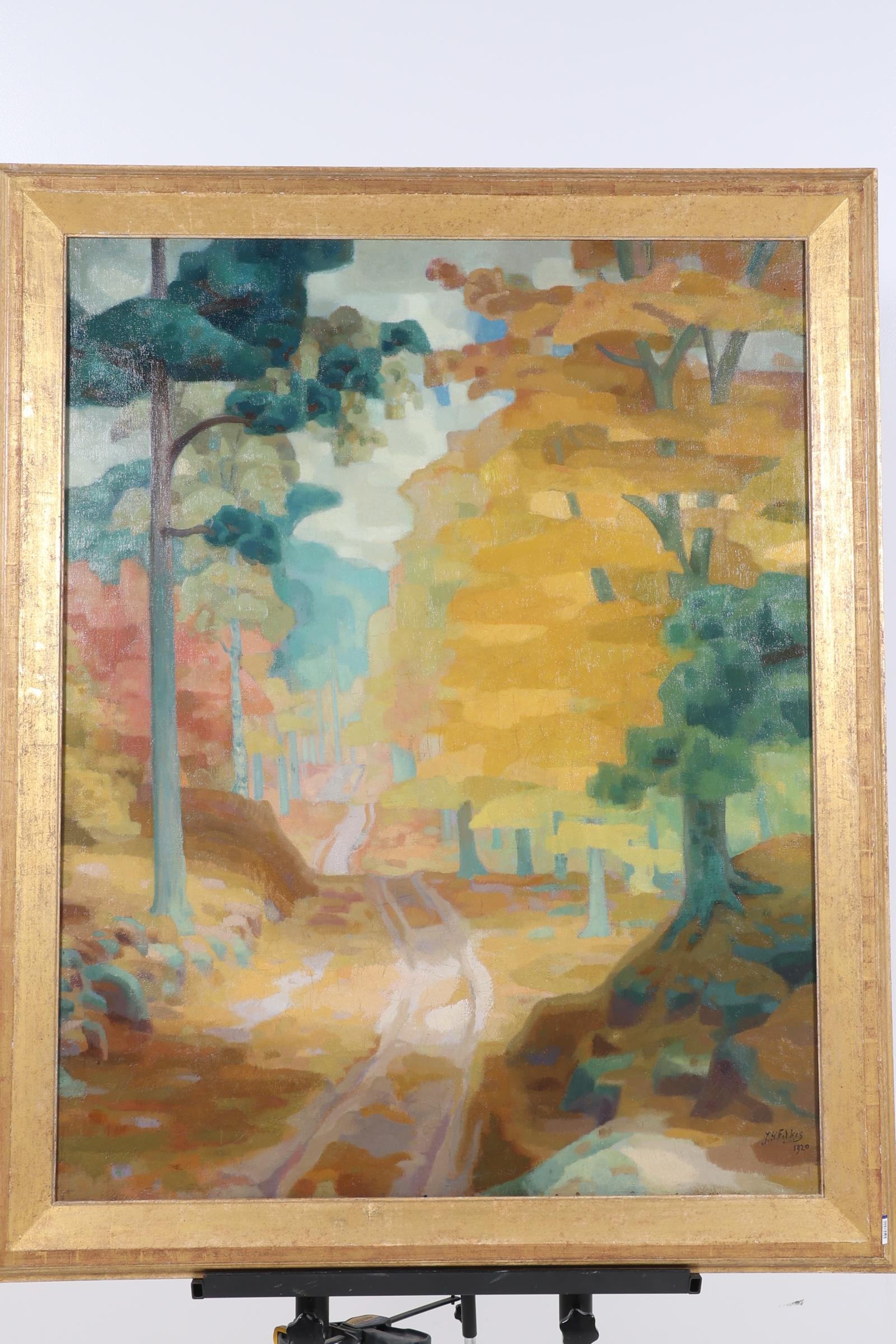 Johannes Hendricus Jan Fekkes, 1885-1933, Boslaantje, olieverf op doek, gedateerd 1920, 120 x 95 cm., provenance particuliere collectie, Simonis en Buunk kunsthanel.