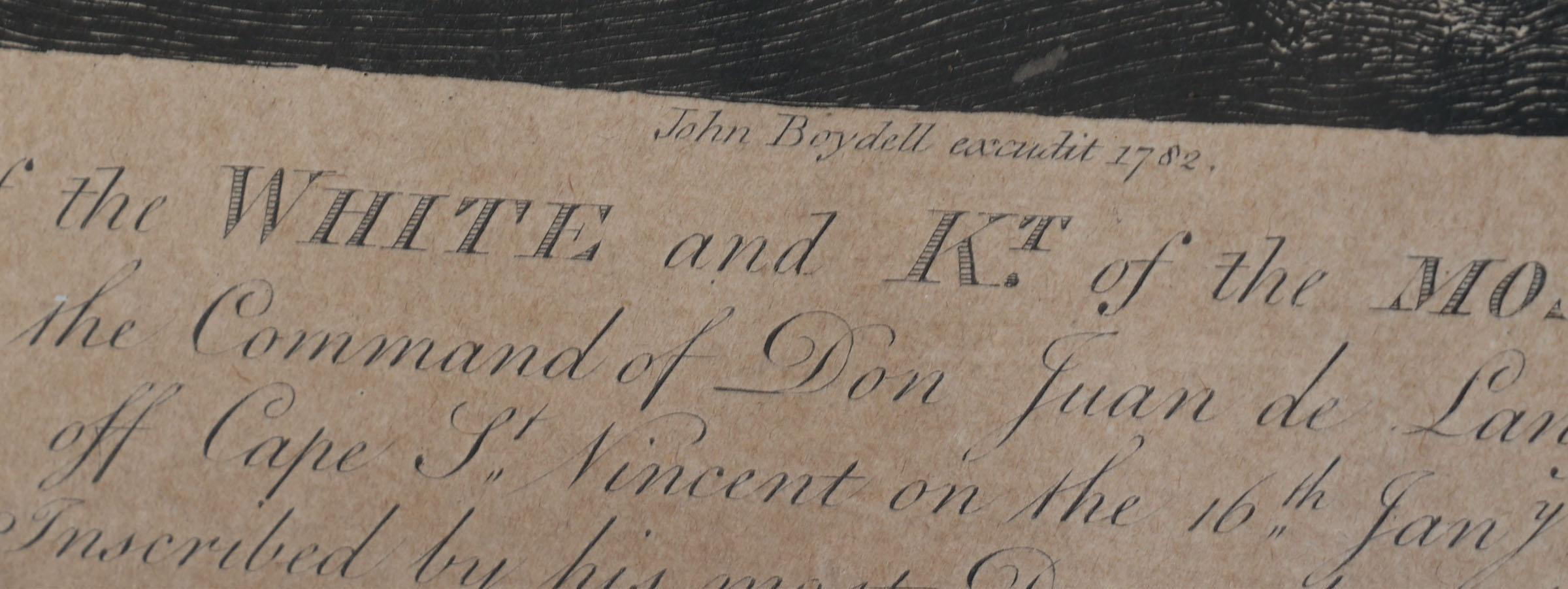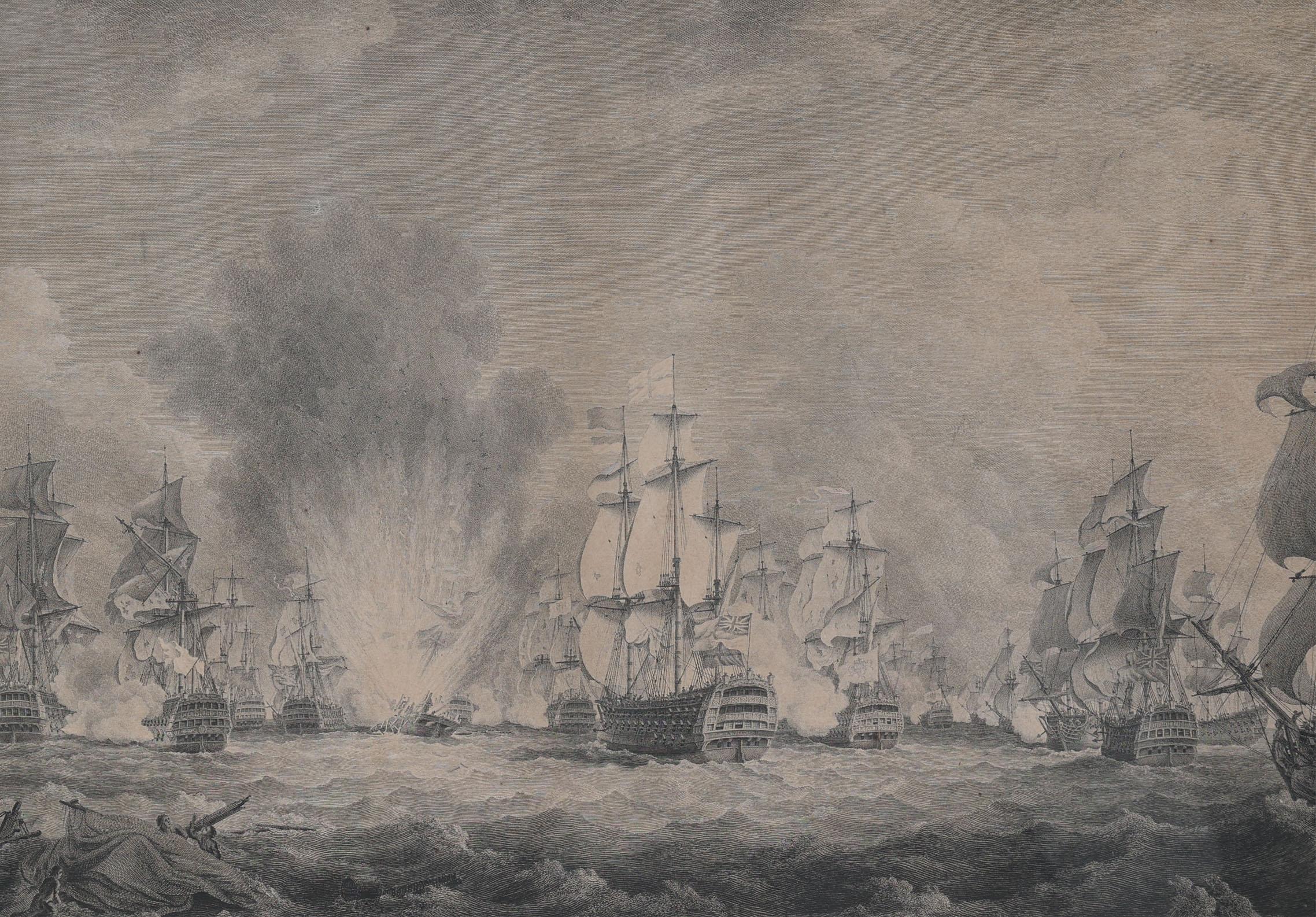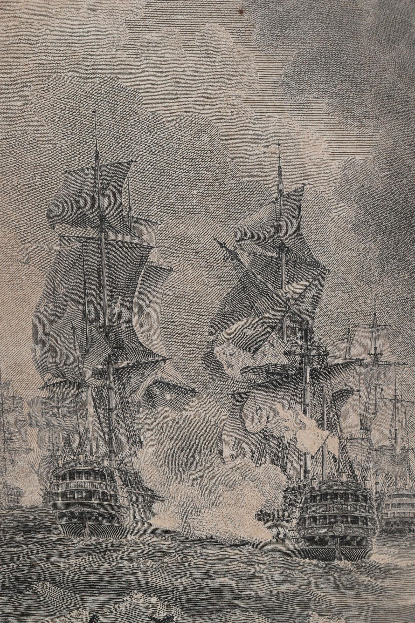 Gravure met afbeelding van een zeeslag, 48 x 59 cm.