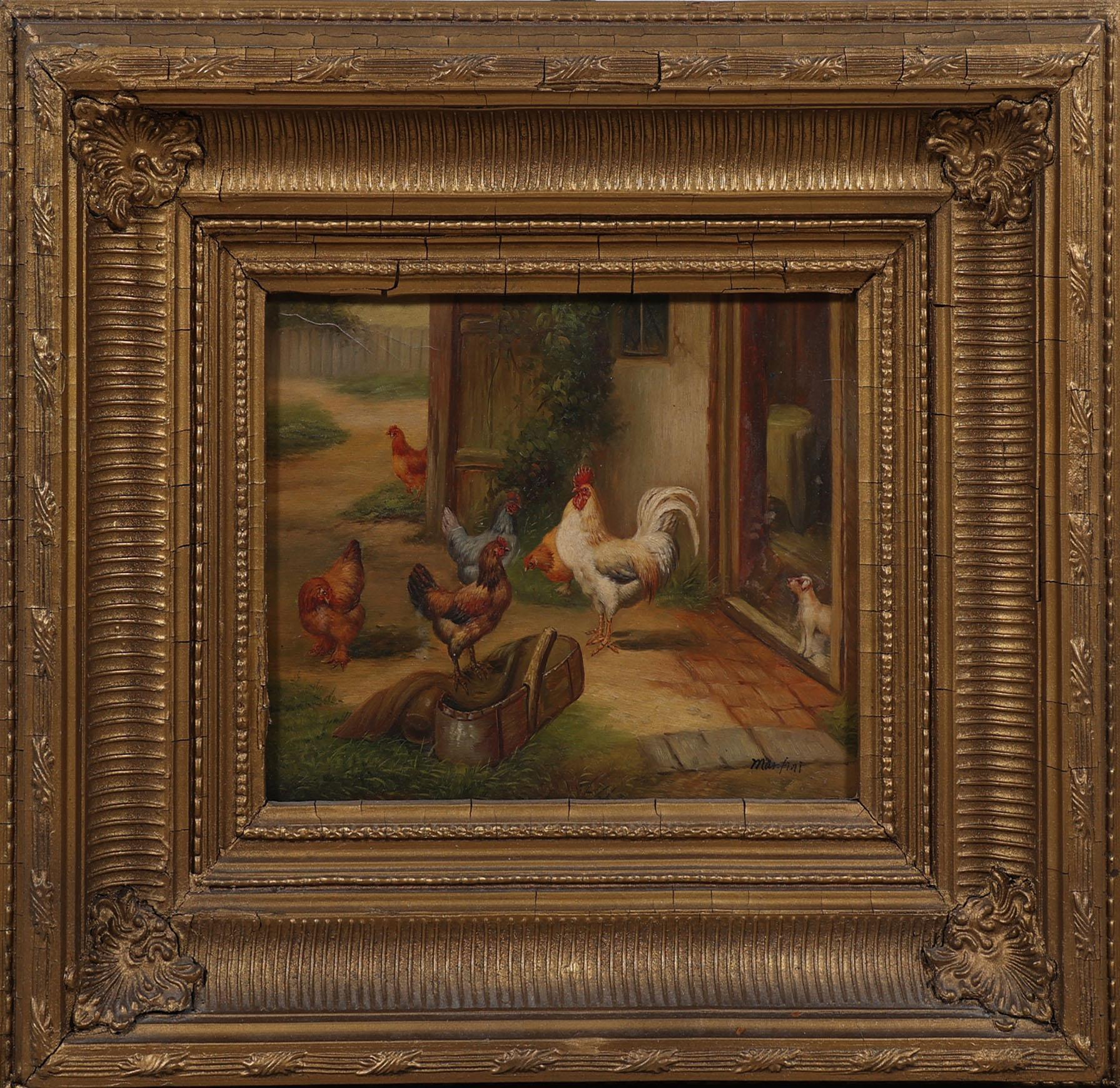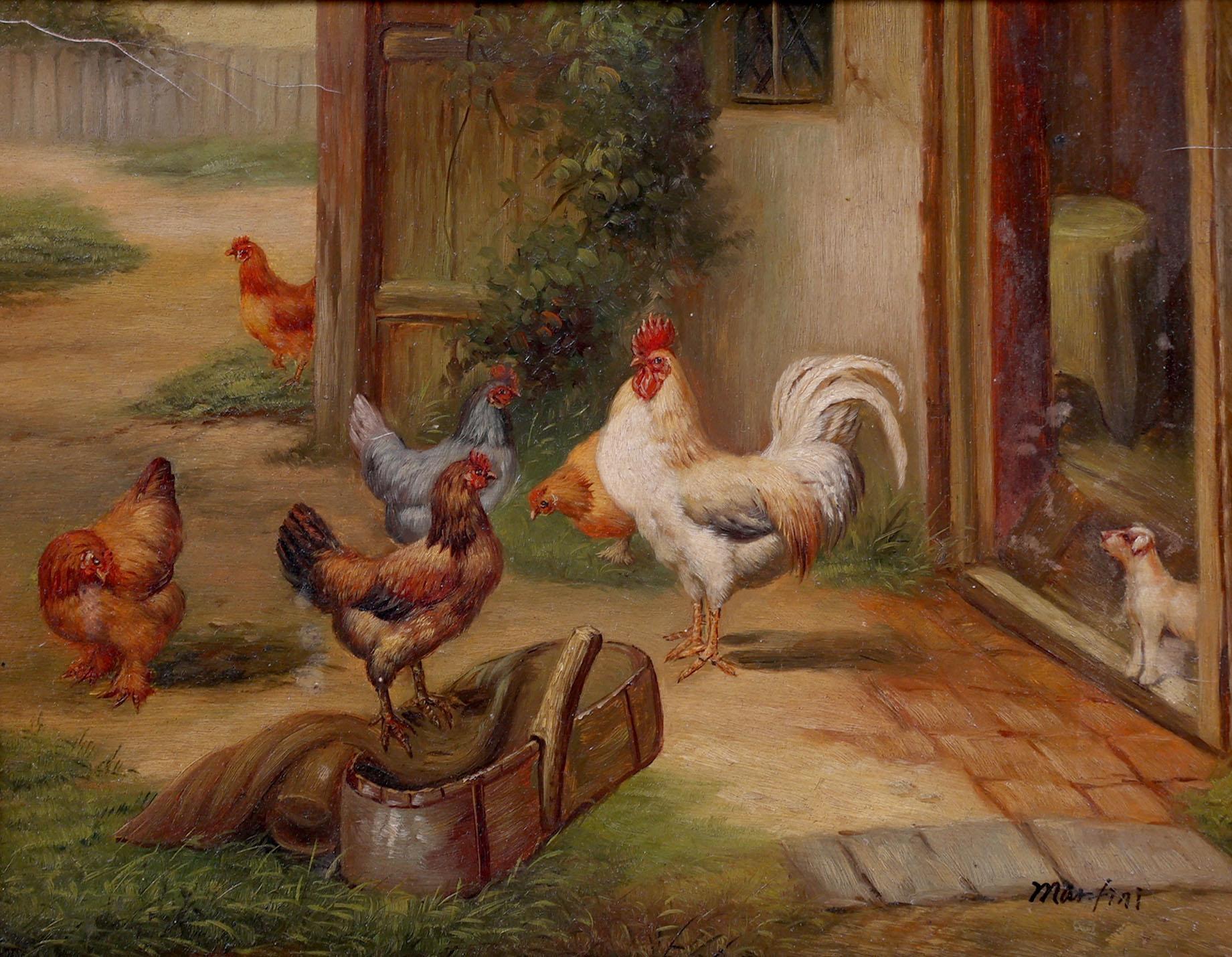 Marfint, Pluimvee voor boerderij, olieverf op paneel, 25 x 20 cm.