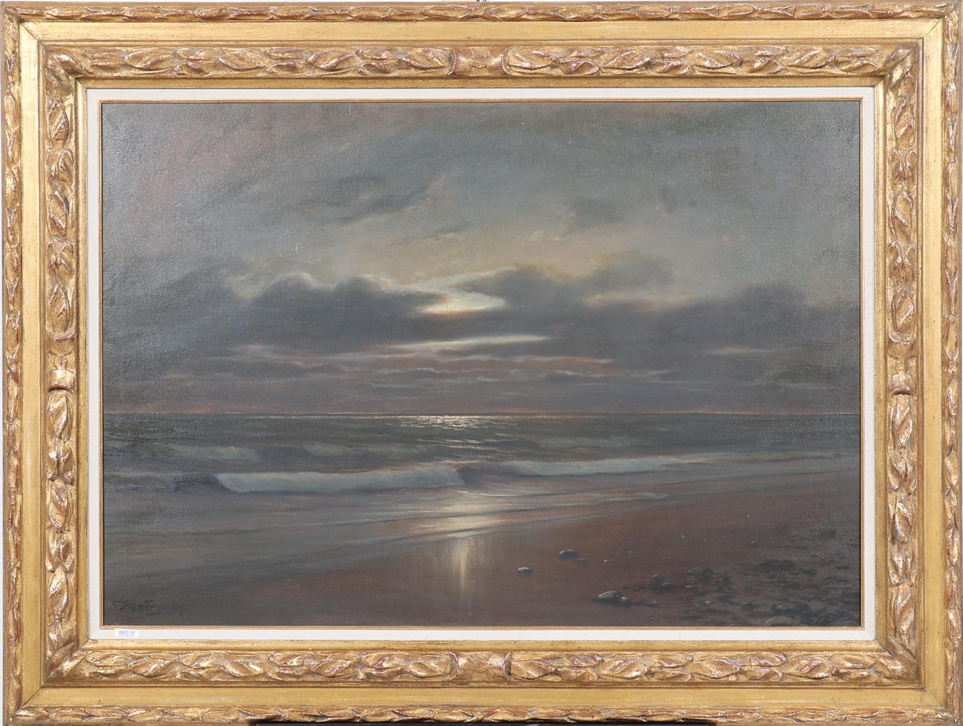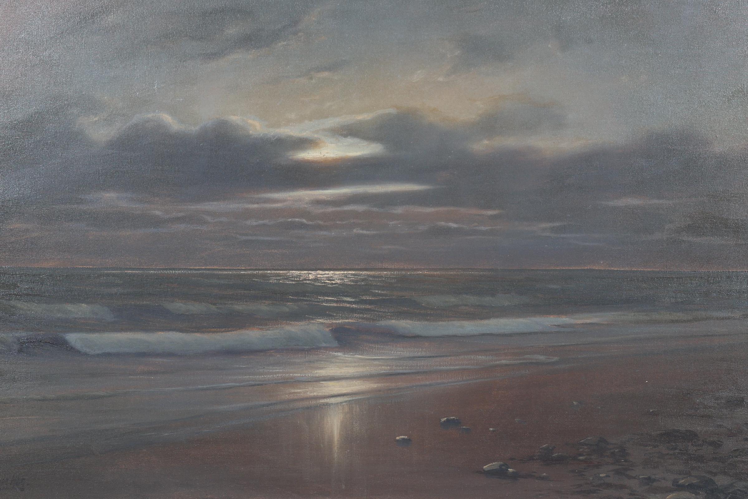 Franz Schaffner (1876-1951), Strandgezicht bij maanlicht, olieverf op doek, 98 x 67 cm.
