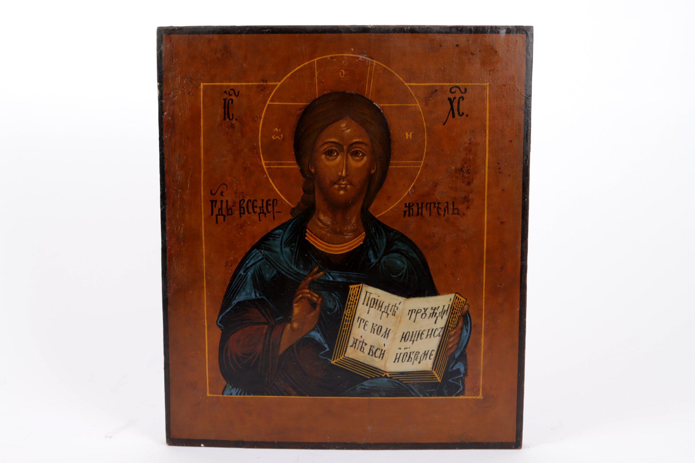 Russisch ikoon, De Goddelijke wetgever, tempra op paneel, 31 x 27 cm., 19e eeuw